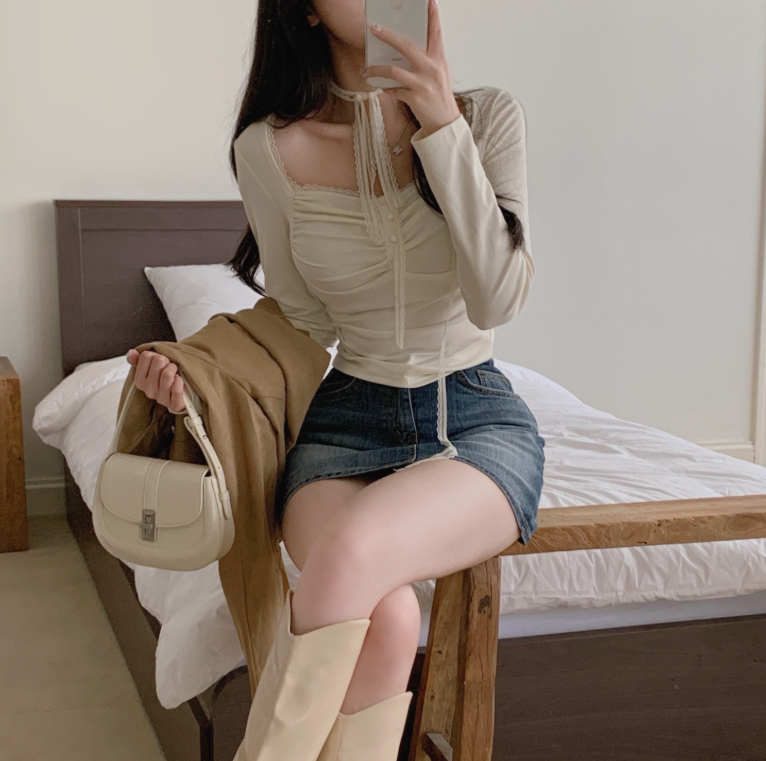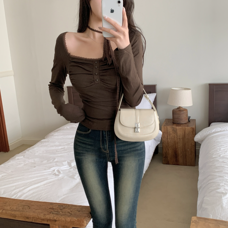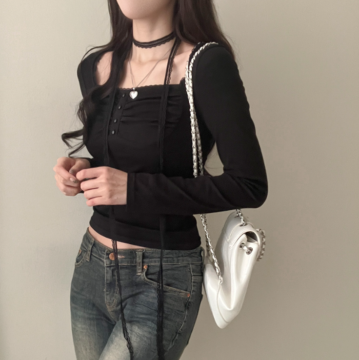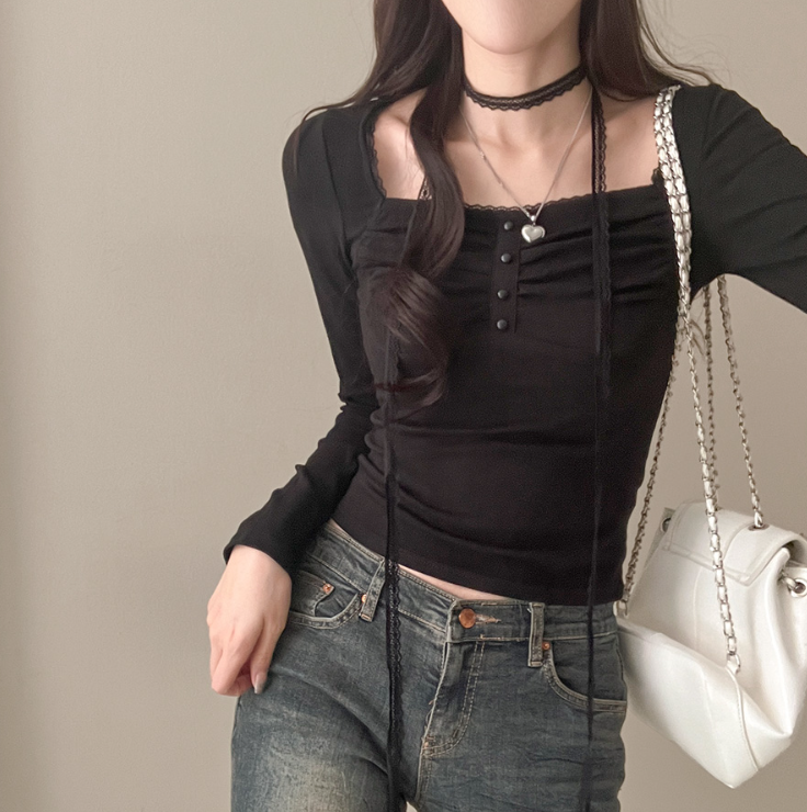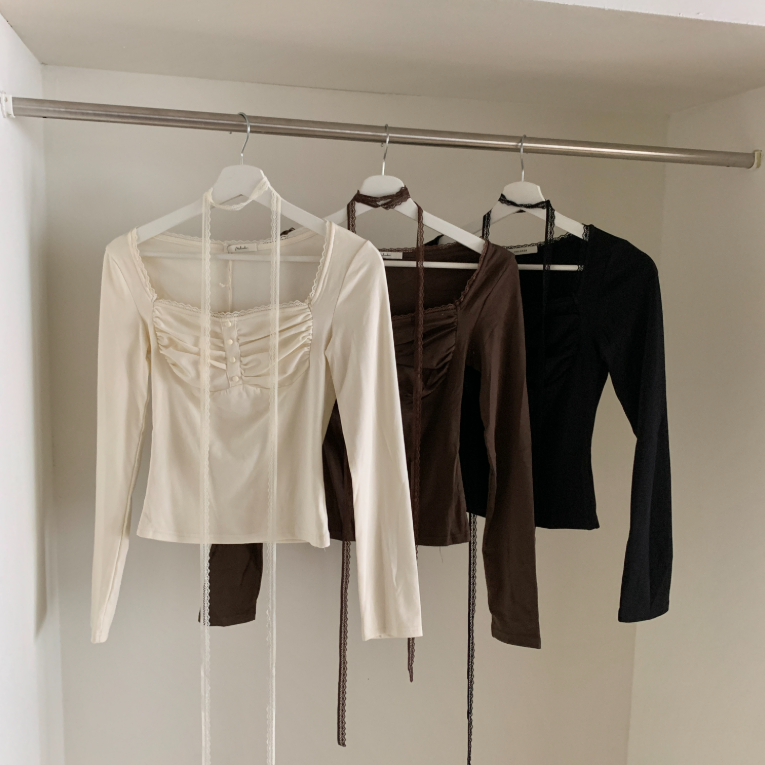 (●ˇ∀ˇ●)有設計感既方領長袖可以凸顯鎖骨位💕蕾絲邊增添少許淑女氣質❤️