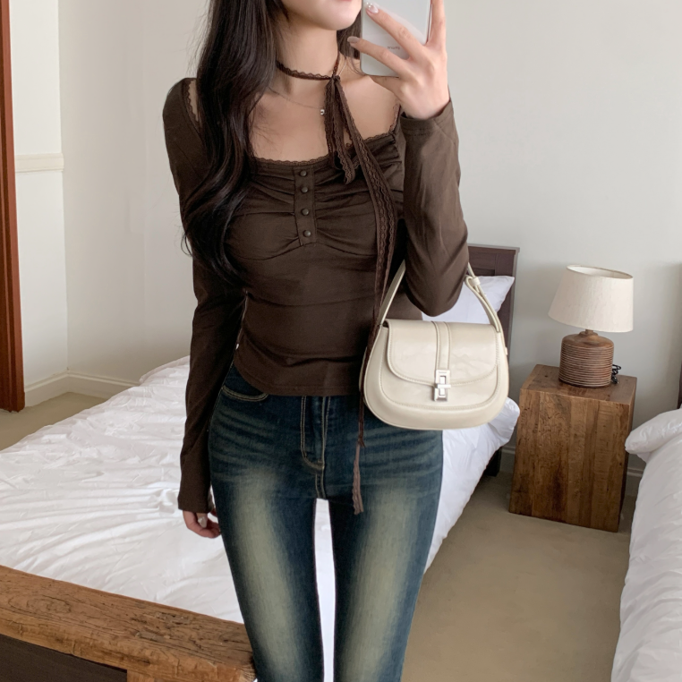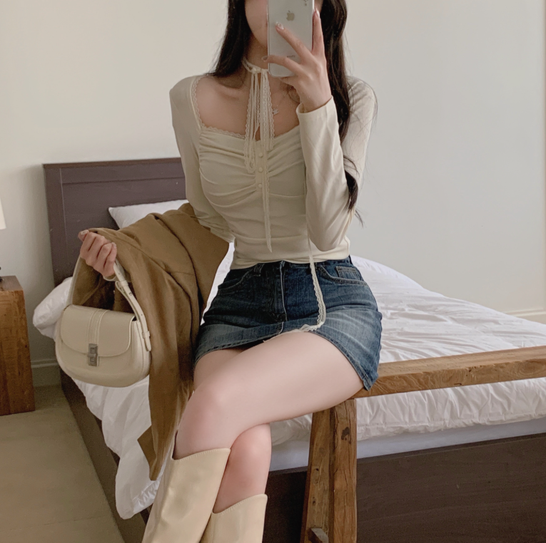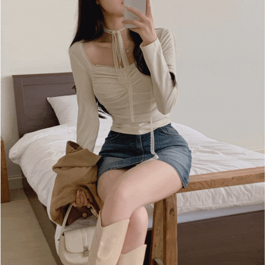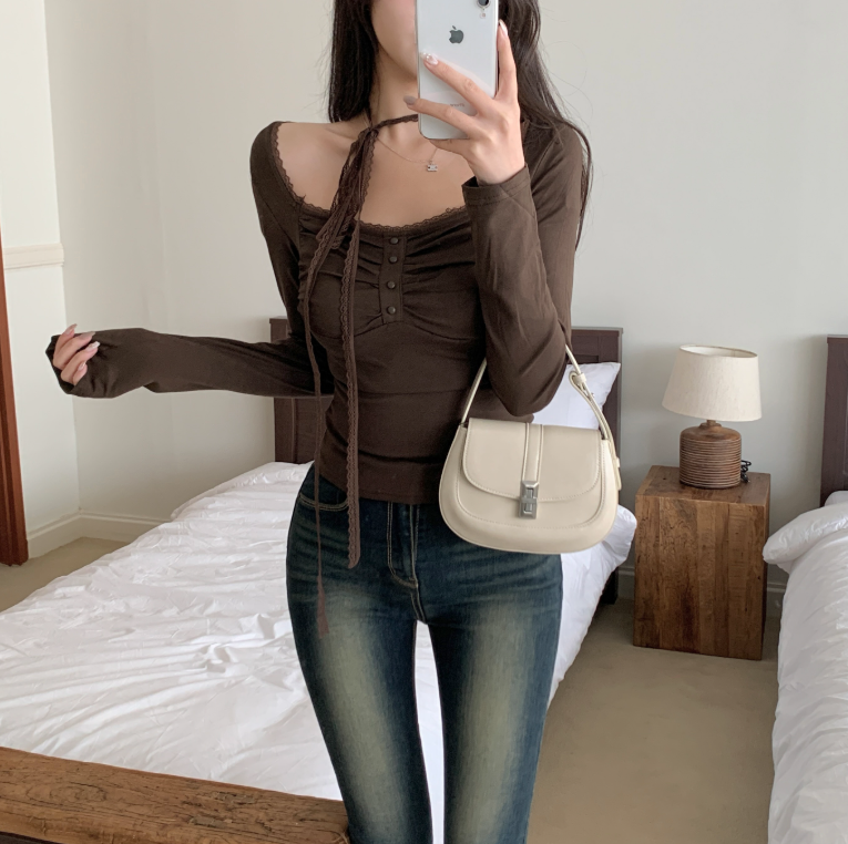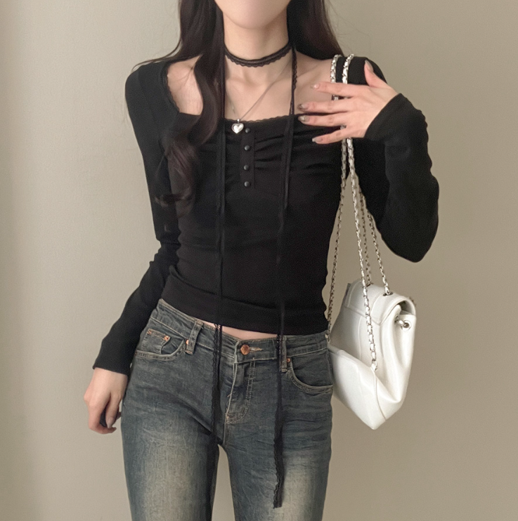(●ˇ∀ˇ●)有設計感既方領長袖可以凸顯鎖骨位💕蕾絲邊增添少許淑女氣質❤️