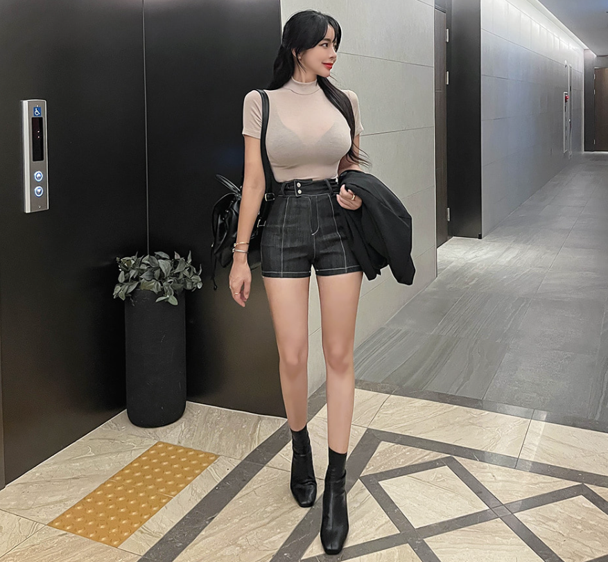 (•‾⌣‾•)雙扣高腰短褲💕修腰又可以拉高身體比例❤️夏天必備