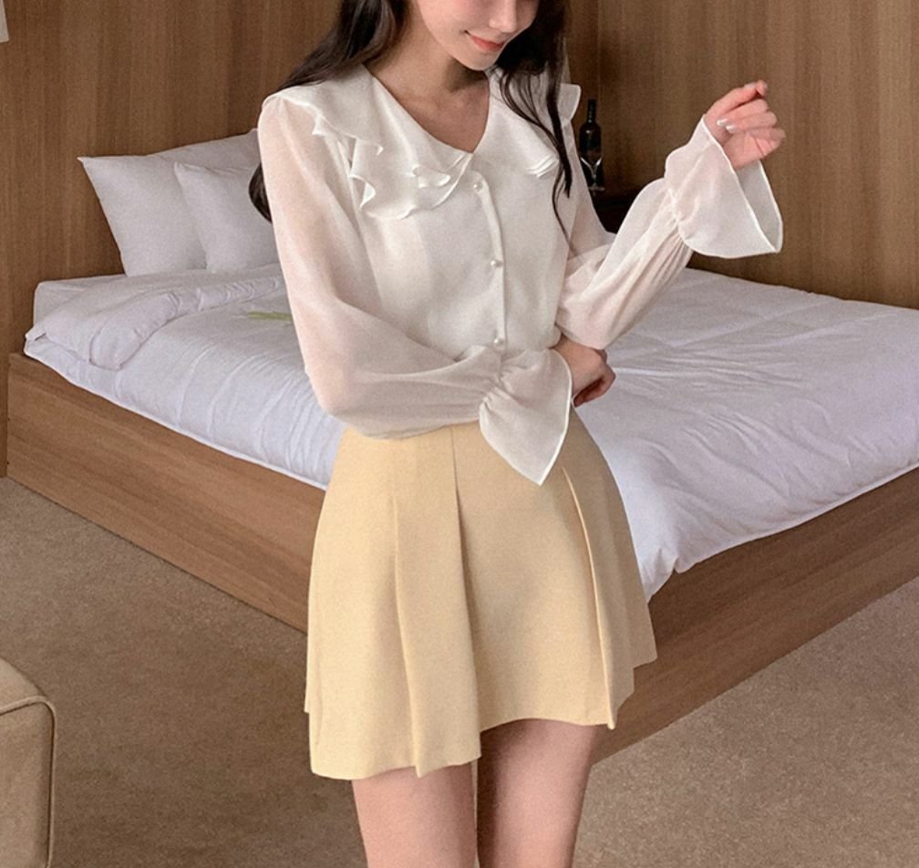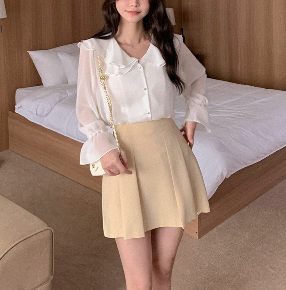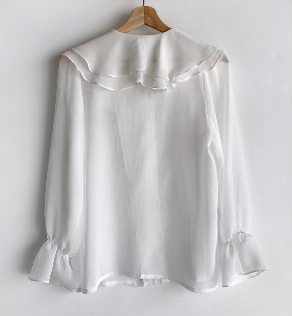 波浪反領雪紡長袖