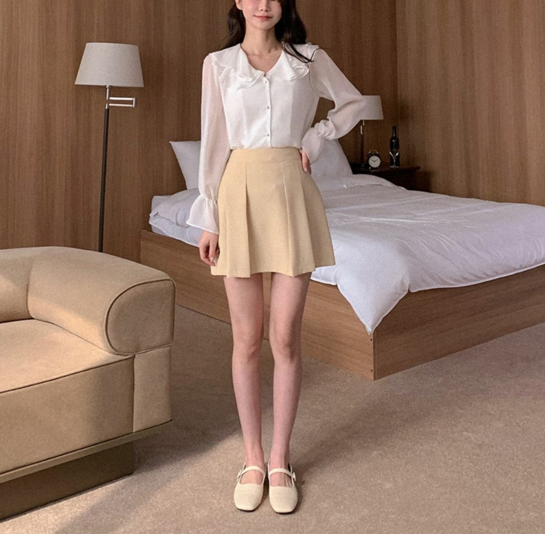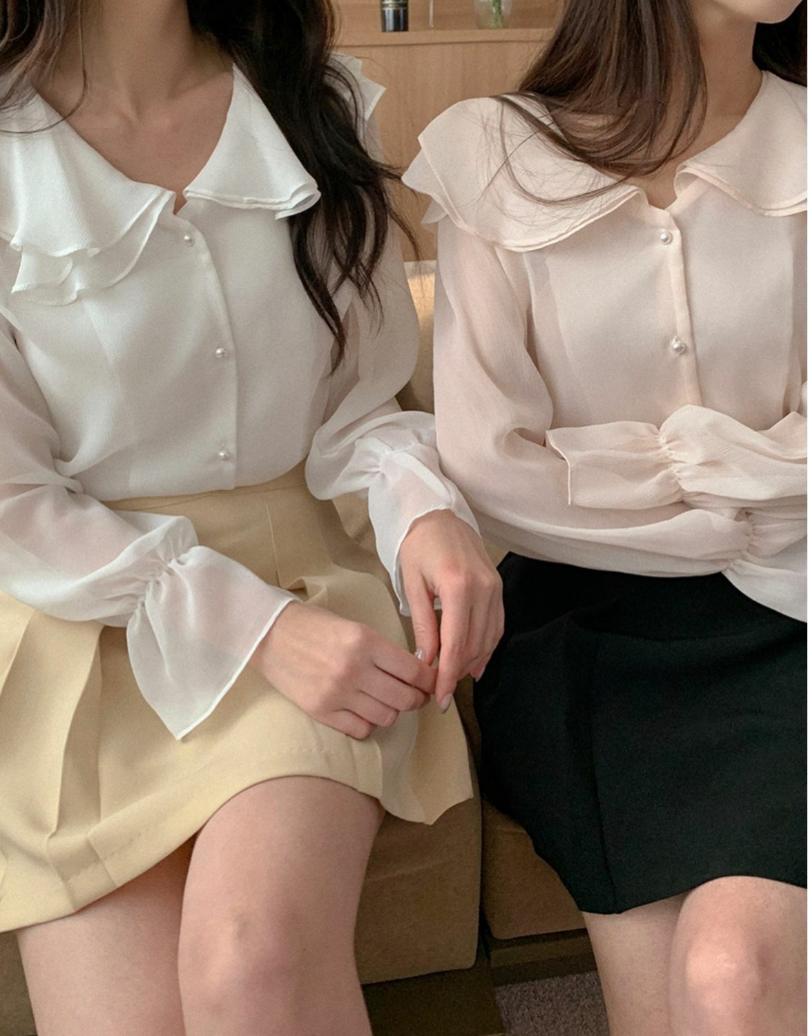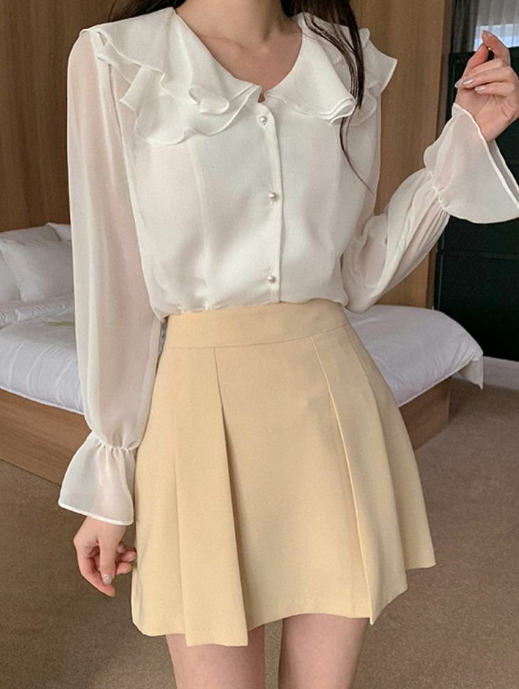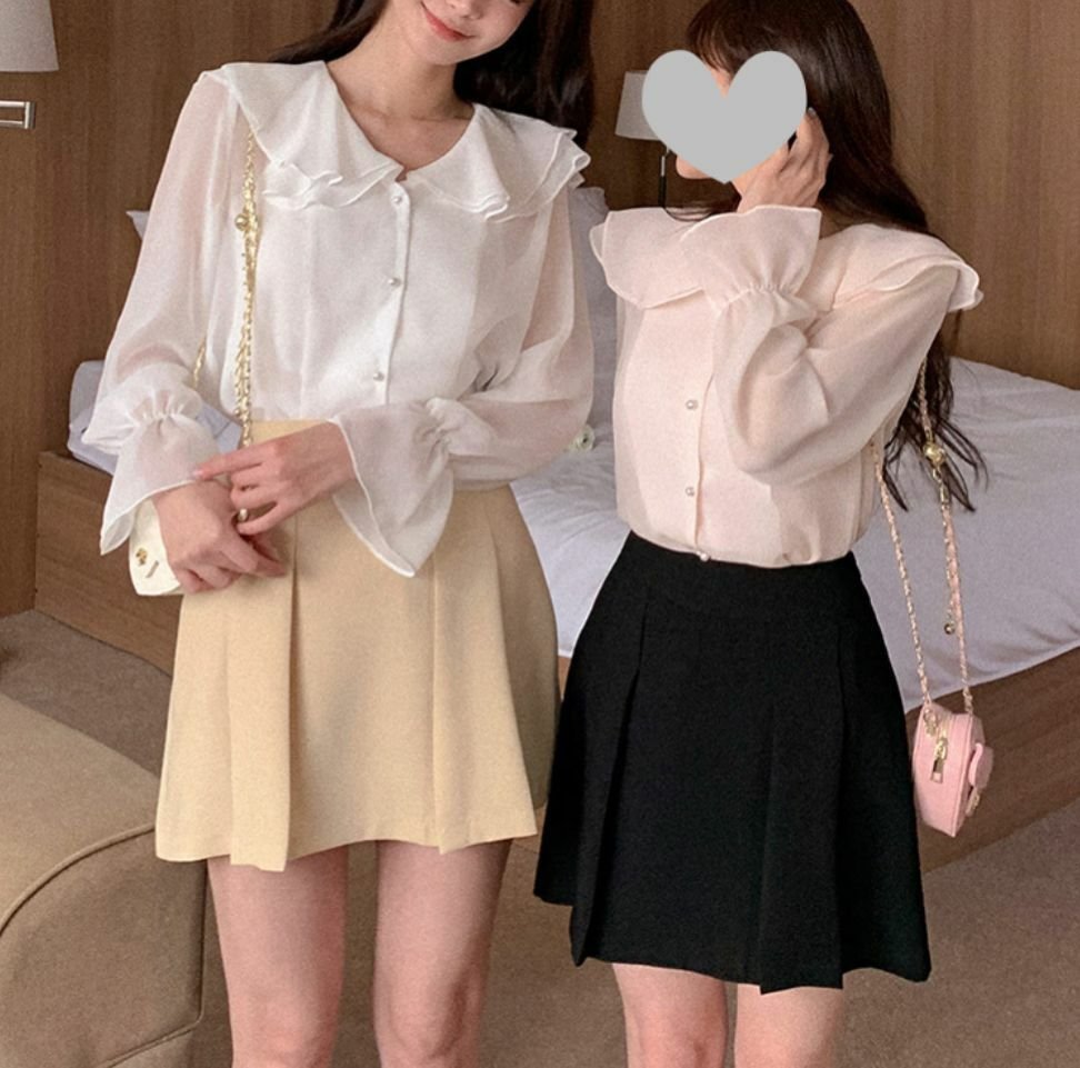 波浪反領雪紡長袖