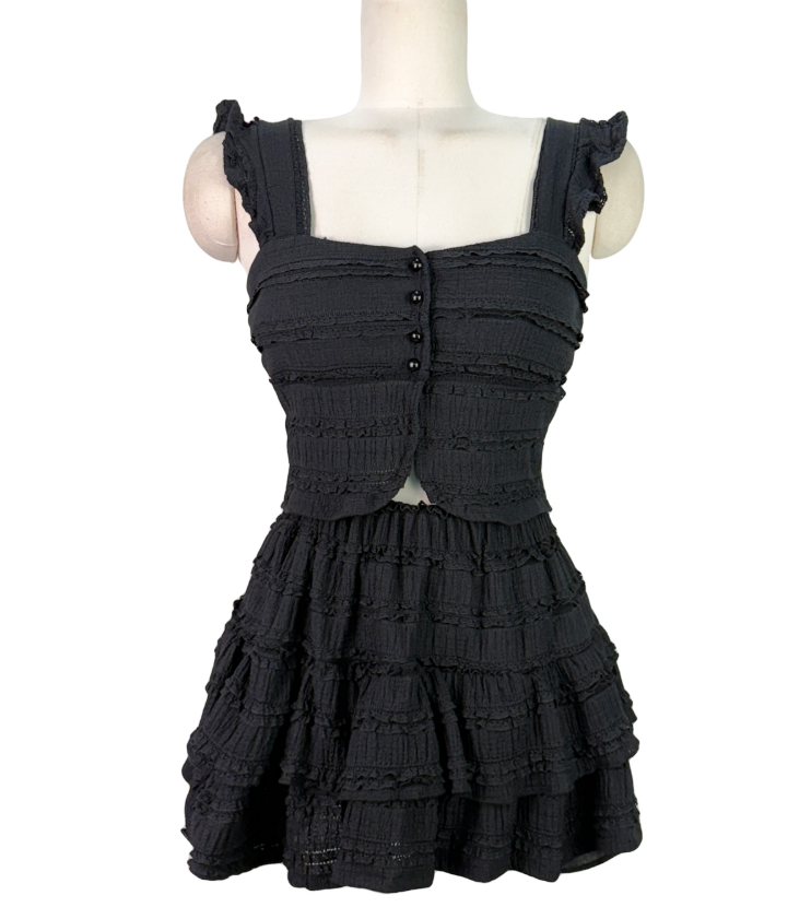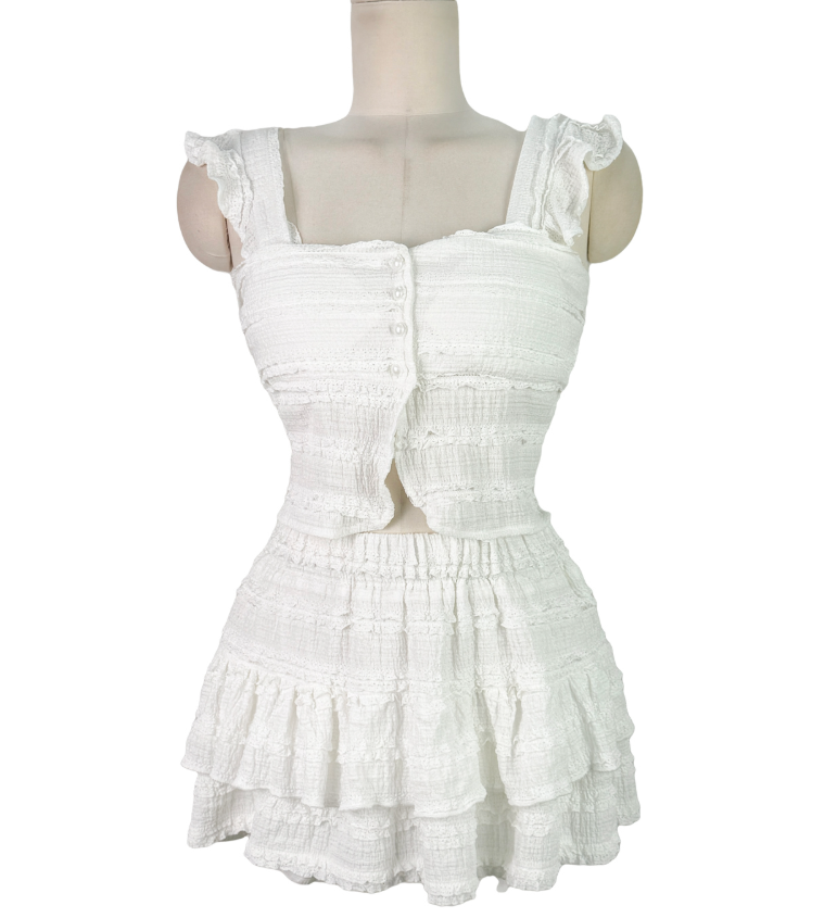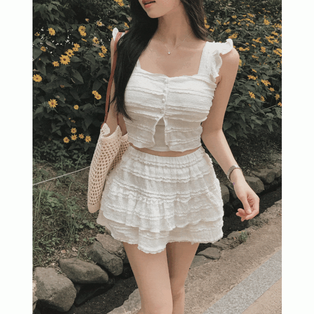 方領蕾絲無袖上衣配半身裙套裝【3色入】