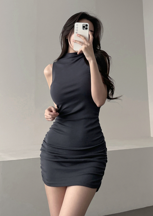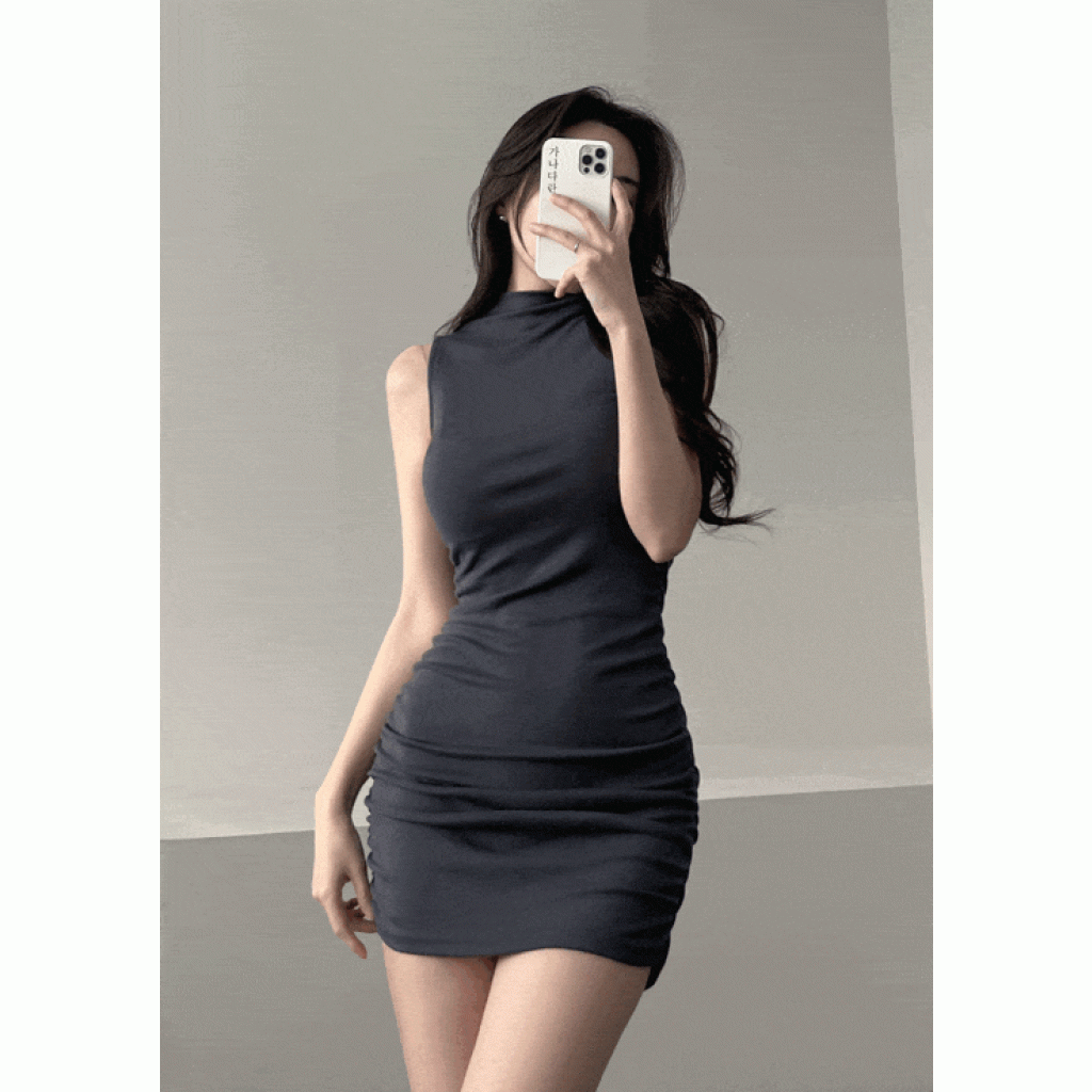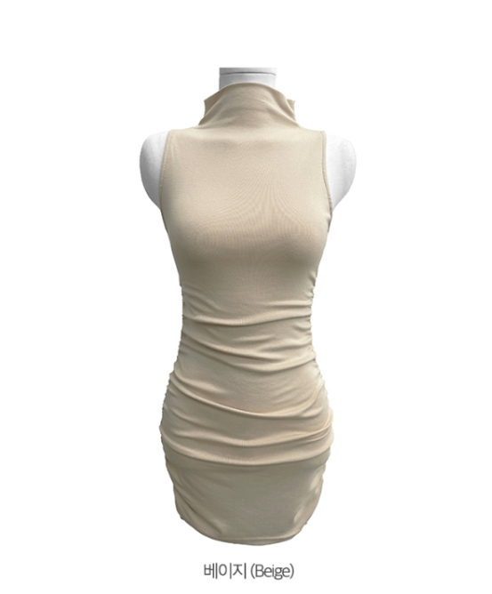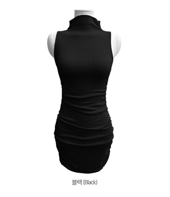 褶皺無袖迷你連身裙【3色入】