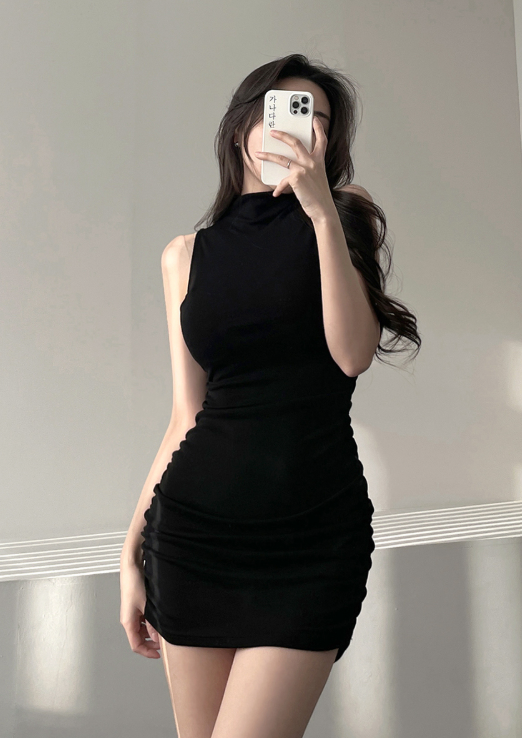 ₍˄·͈༝·͈˄₎◞︎ ̑̑簡約高領褶皺貼身連身裙💕大方優雅約會返工都可以著❤️