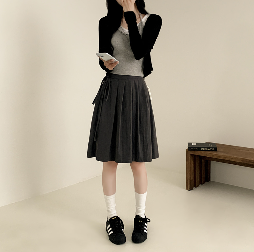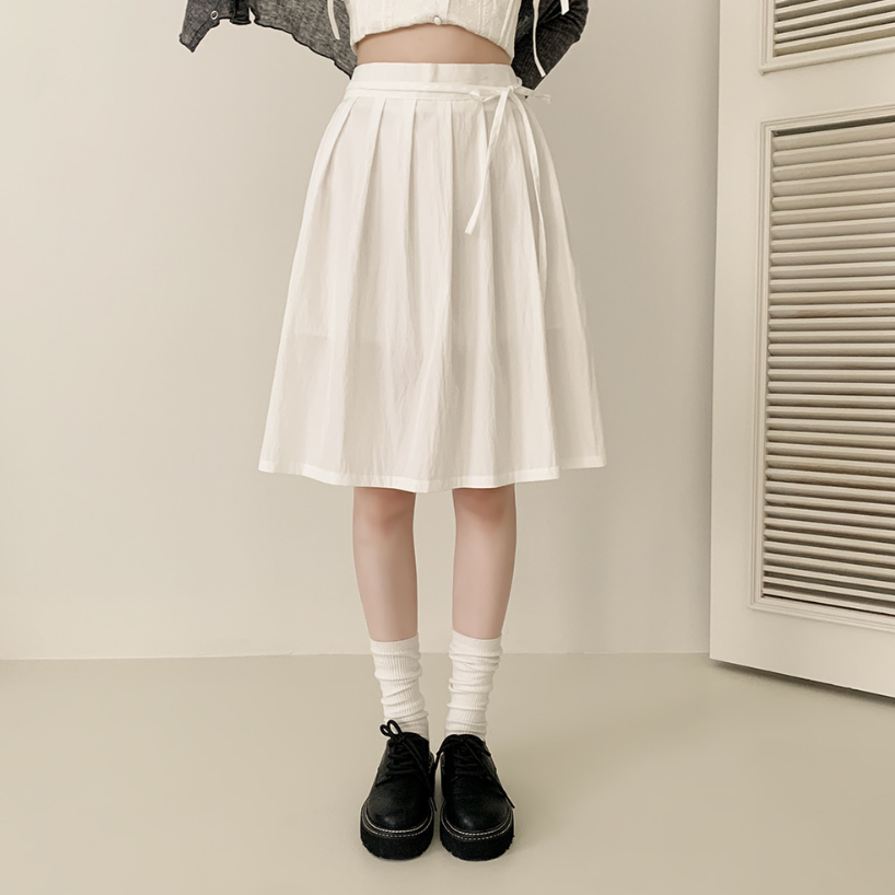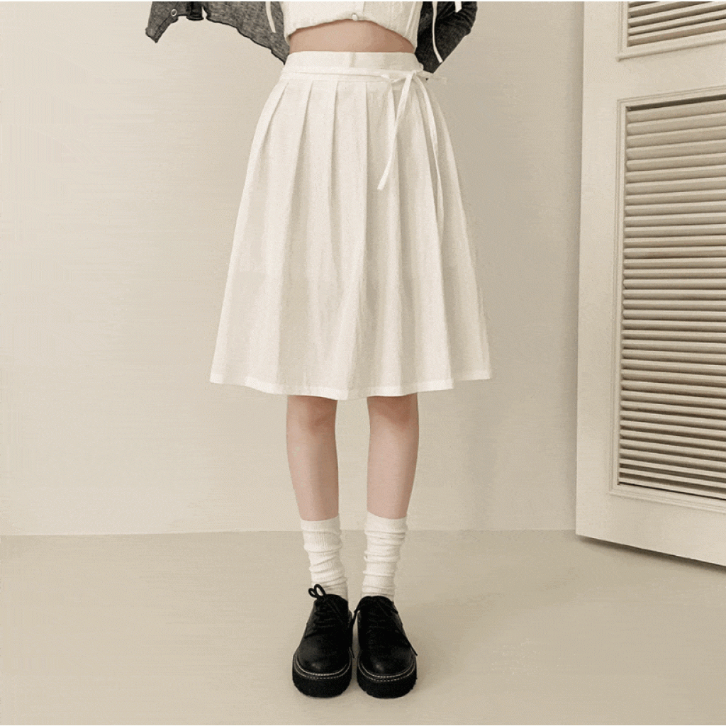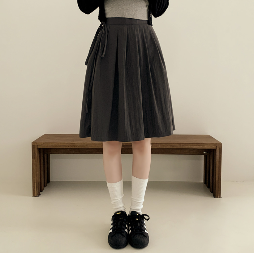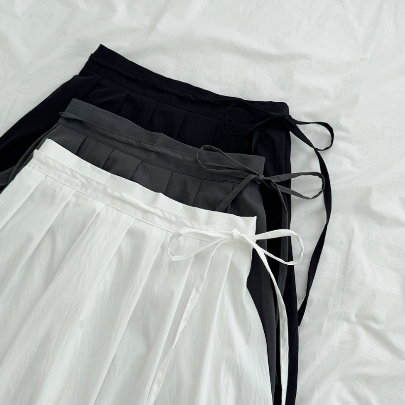 綁帶百褶中長裙【3色入】