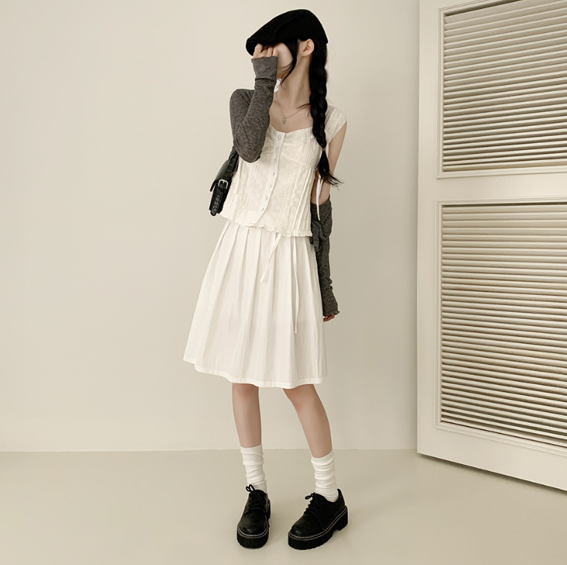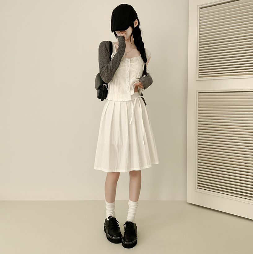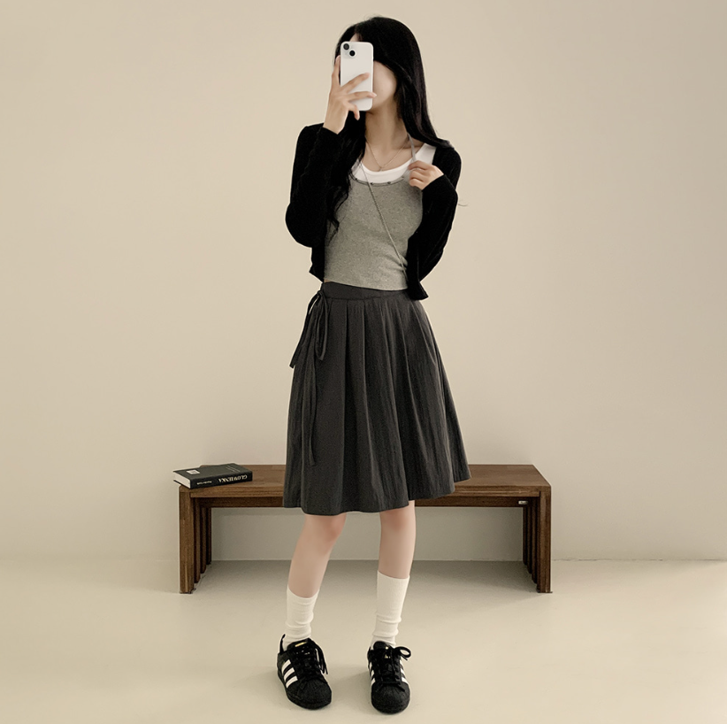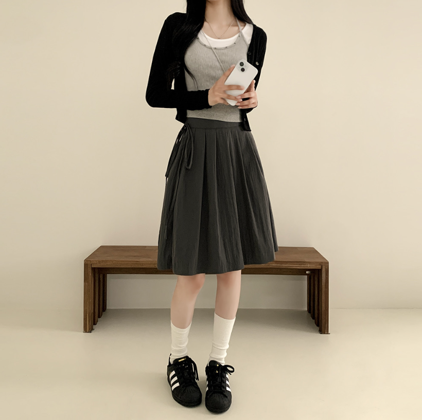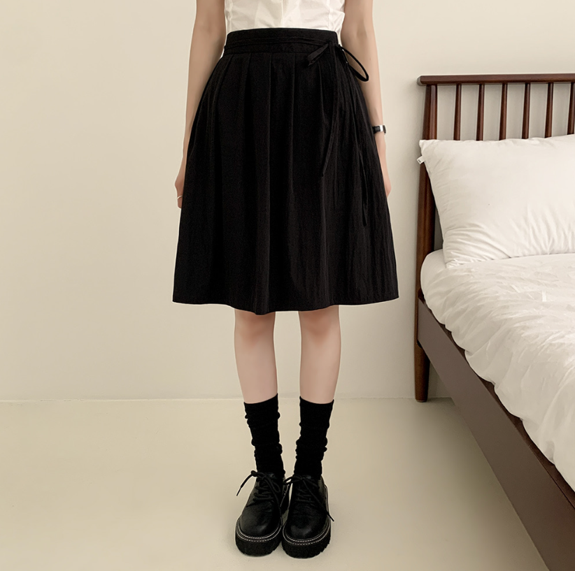 綁帶百褶中長裙【3色入】