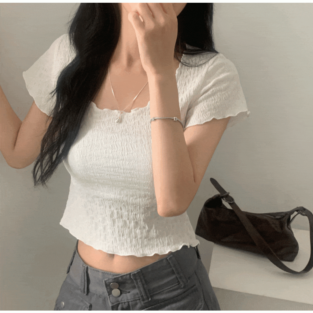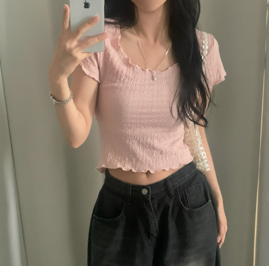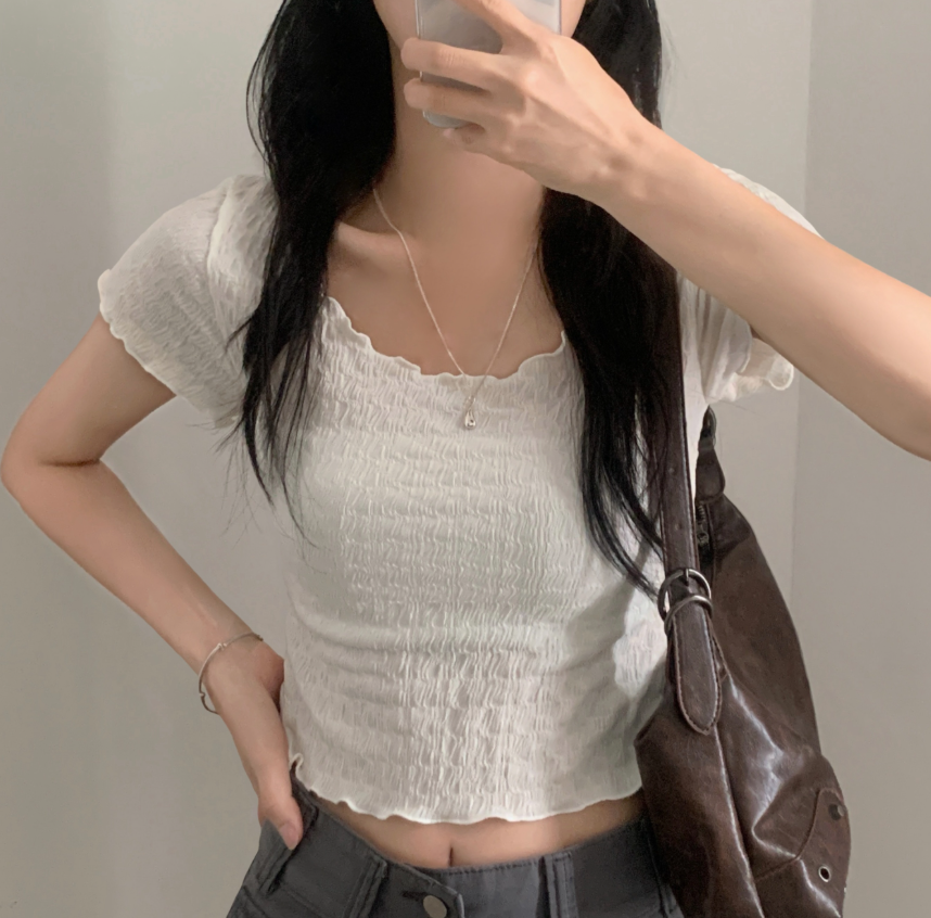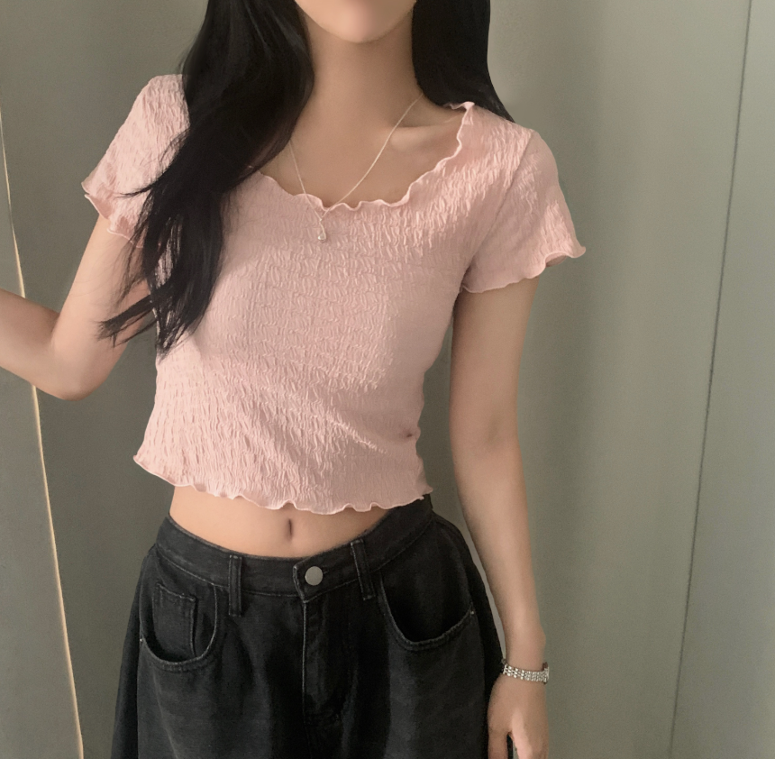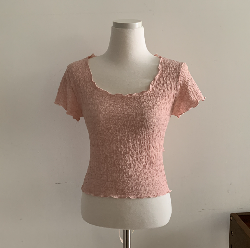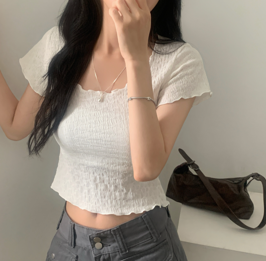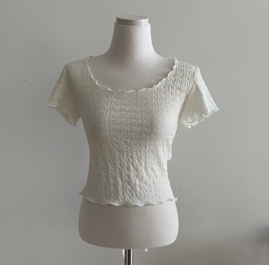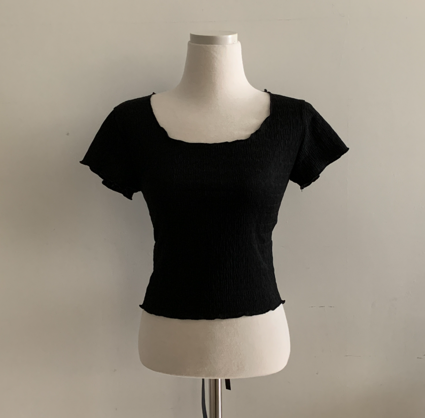 綁帶皺皺短袖T恤【3色入】