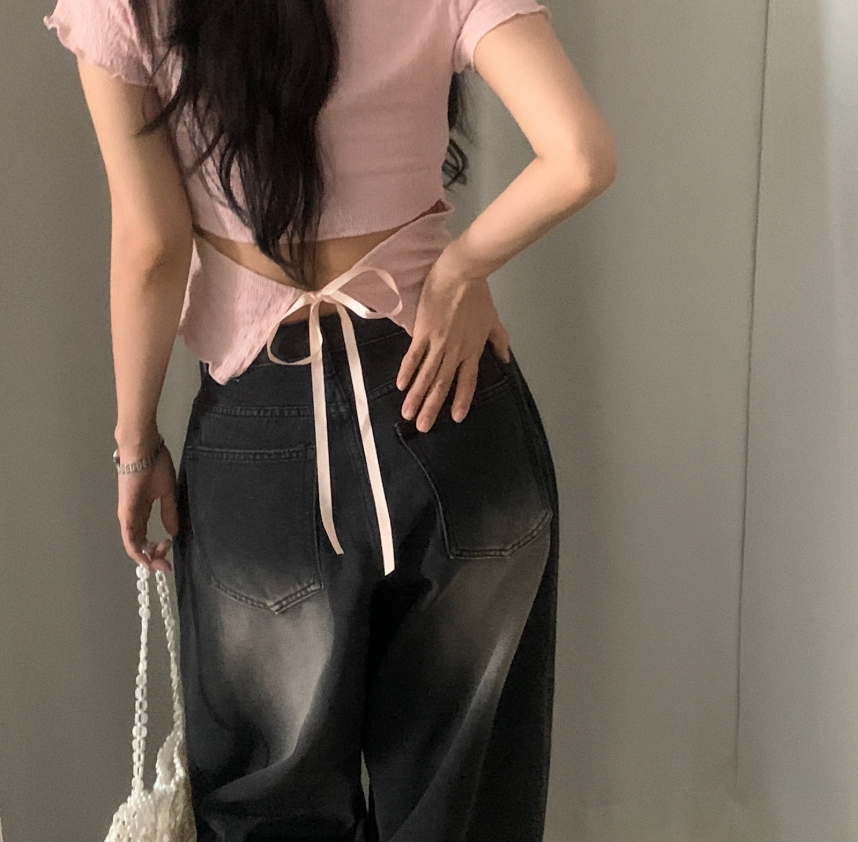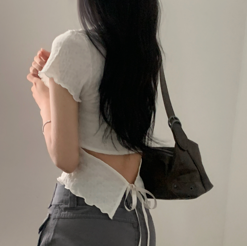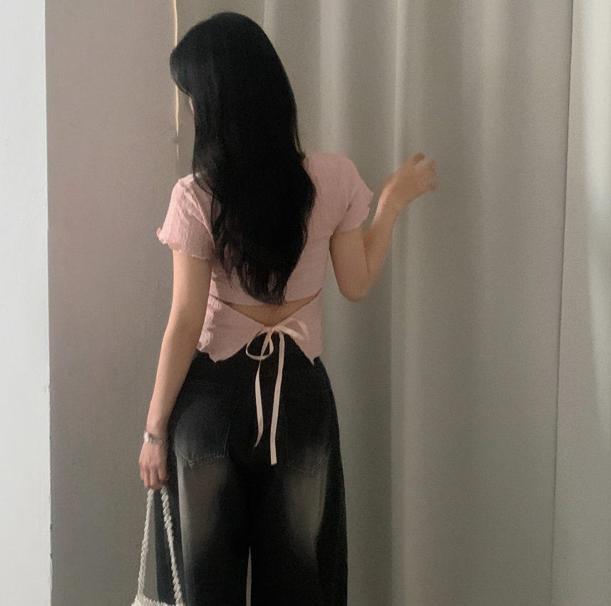 (•‾⌣‾•)後綁帶T恤有點小心思❤️後面露出小蠻腰若隱若現既性感💕