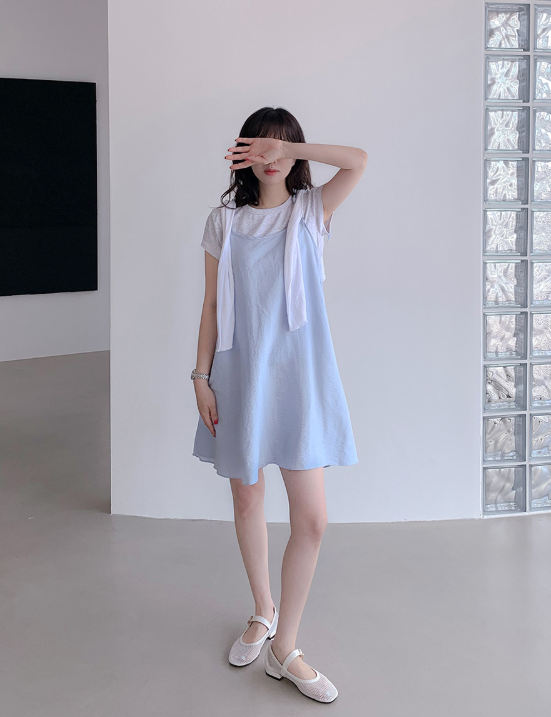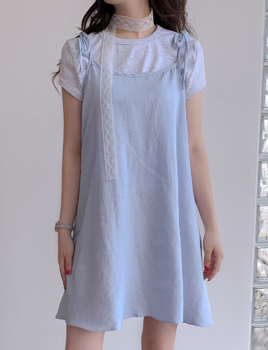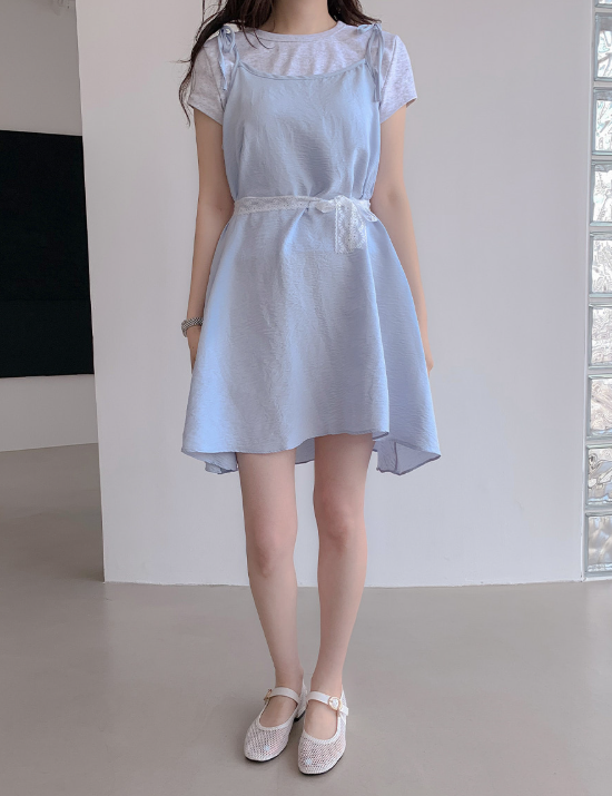 ₍˄·͈༝·͈˄₎◞︎ ̑̑綁帶喇叭連身裙配上蕾絲帶❤️絲帶可以當腰帶或者頭飾都無問題💕