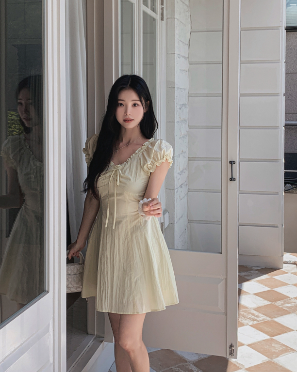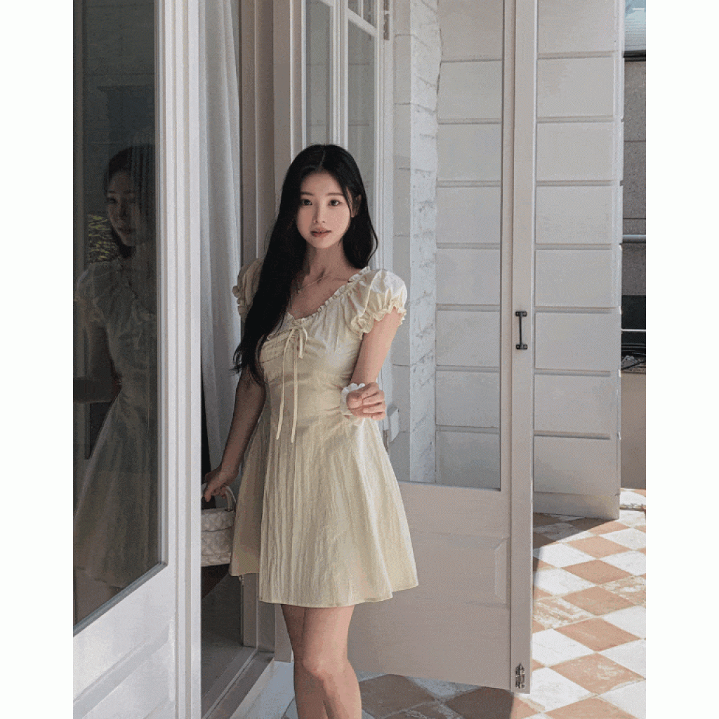 V領蝴蝶結泡泡袖連身裙【3色入】