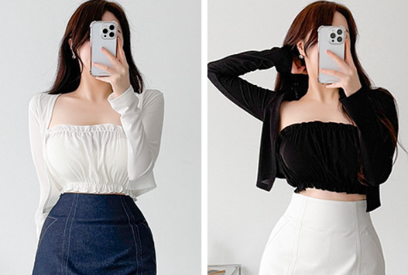(•‾⌣‾•)抹胸搭小外套套裝❤️好適合夏天炎熱既天氣著有點小性感💕