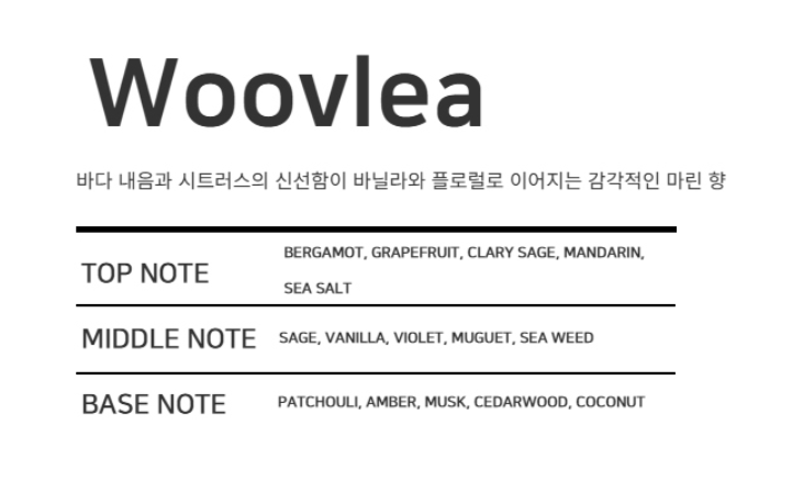 前調:佛手柑,葡萄柚,麝香鼠尾草,柑橘,海鹽
