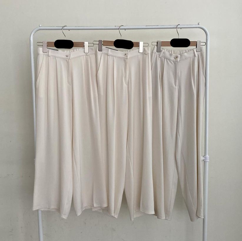 L:腰圍:66cm(後橡筋腰) 臀圍:96cm 褲襠:38cm 大腿:70cm 全長(Short):92cm 全長(Basic):97cm 全長(Long):102cm