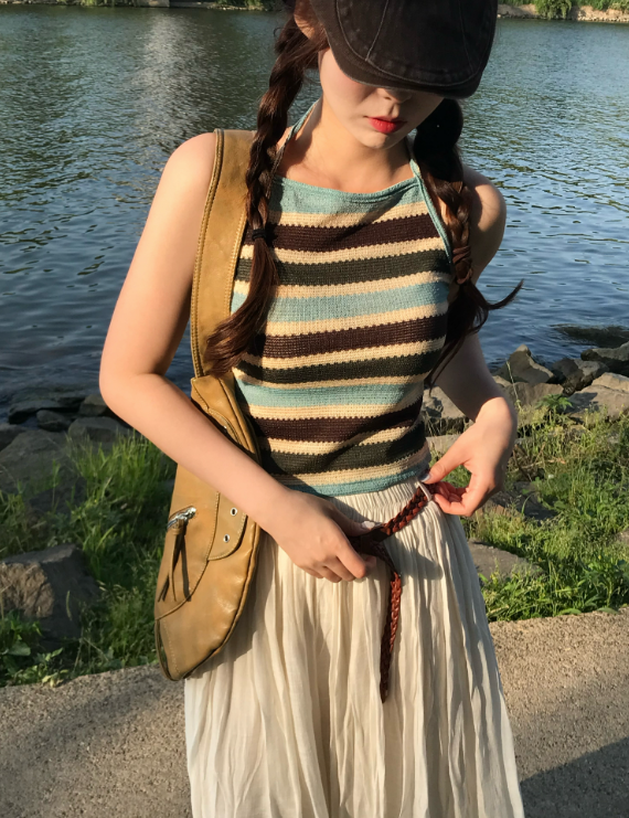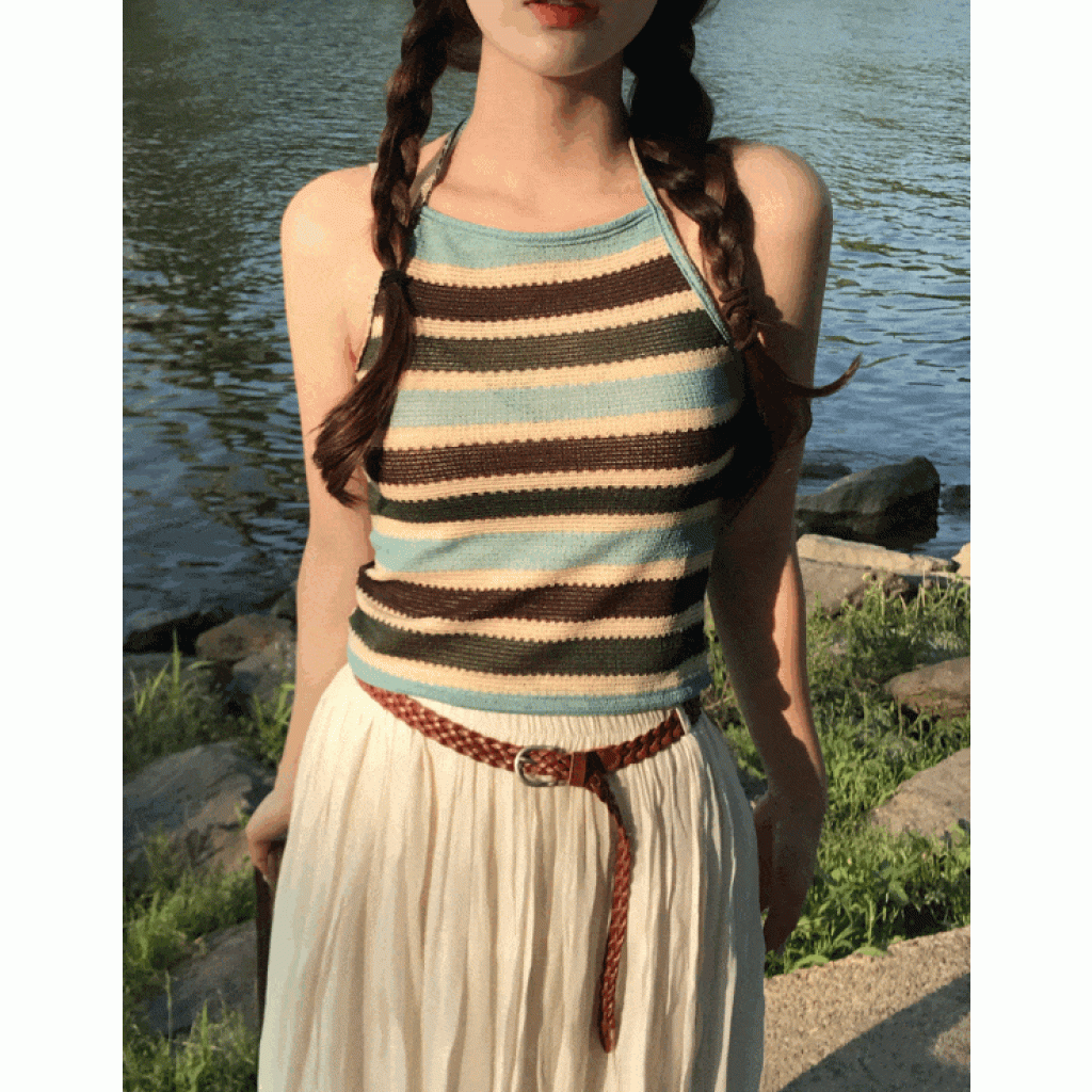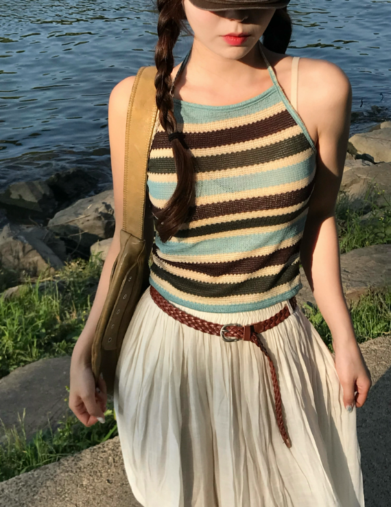 (•‾⌣‾•)民族風掛頸上衣💕條紋設計更顯瘦唔容易撞款❤️