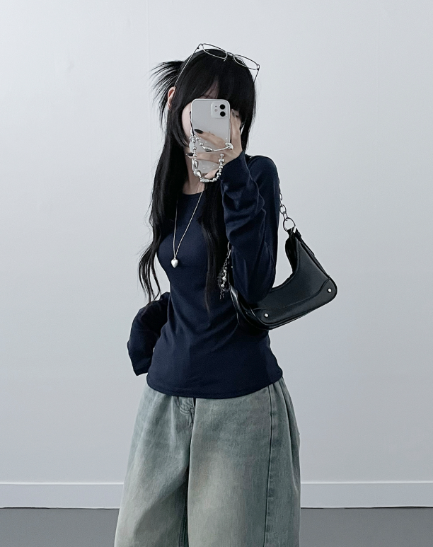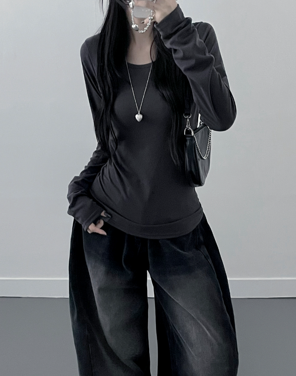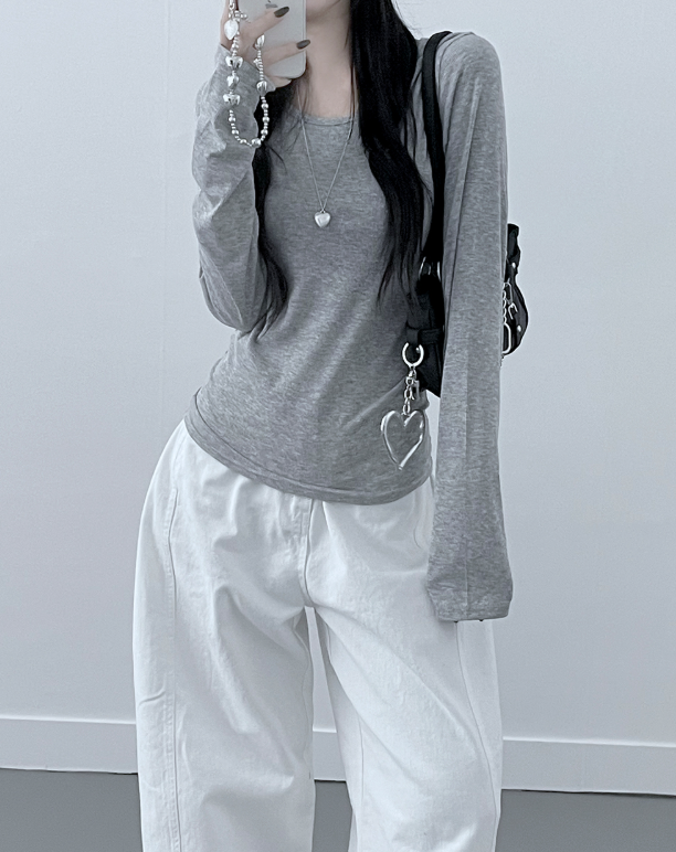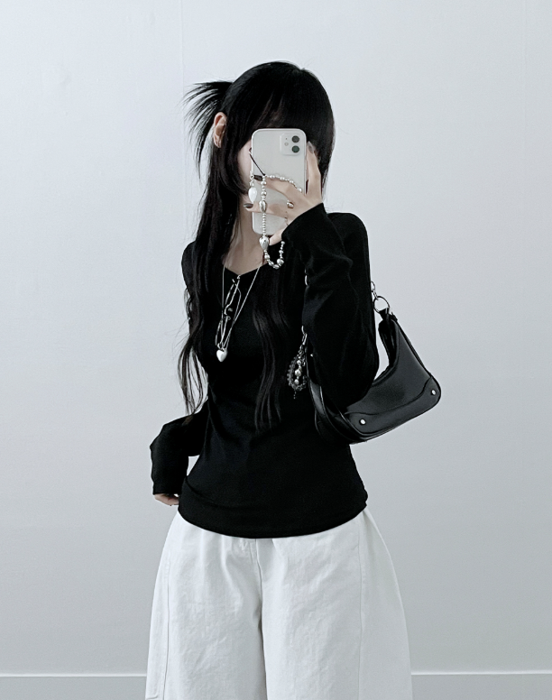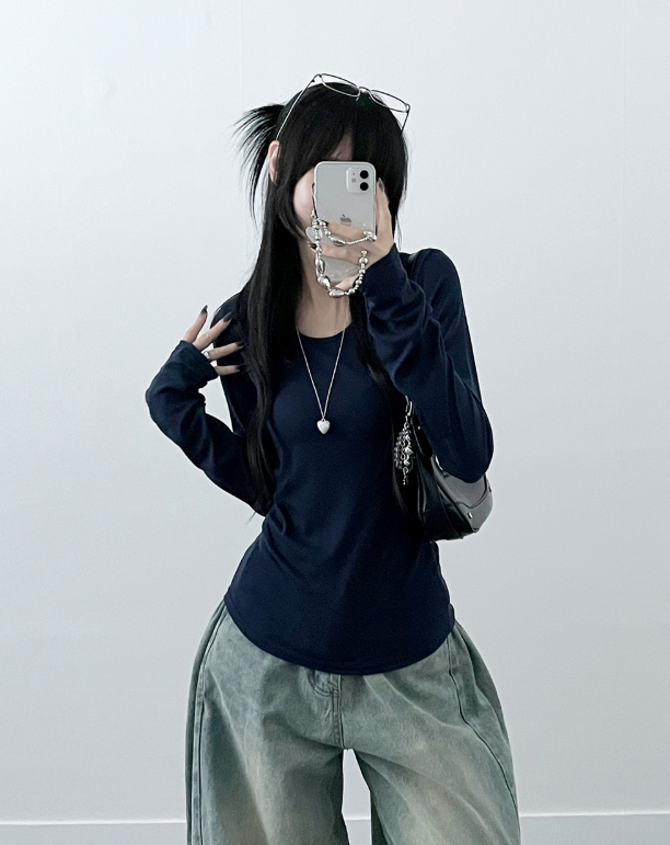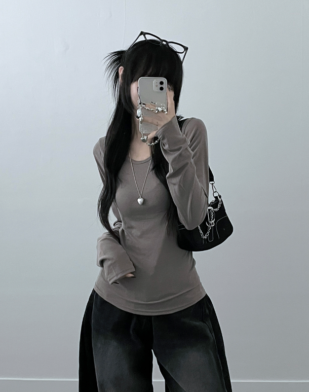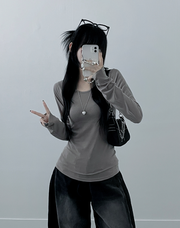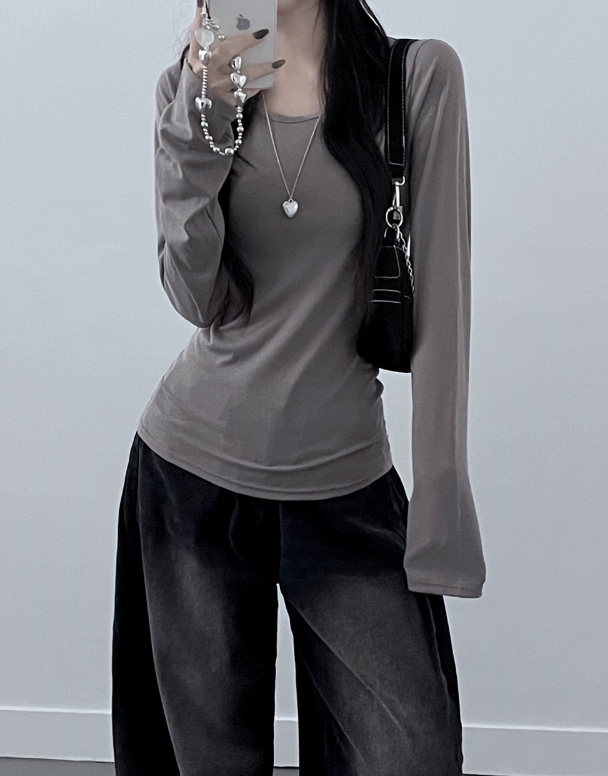 (•‾⌣‾•)簡約素色長袖衫百搭又修飾身形❤️又可以做內搭💕