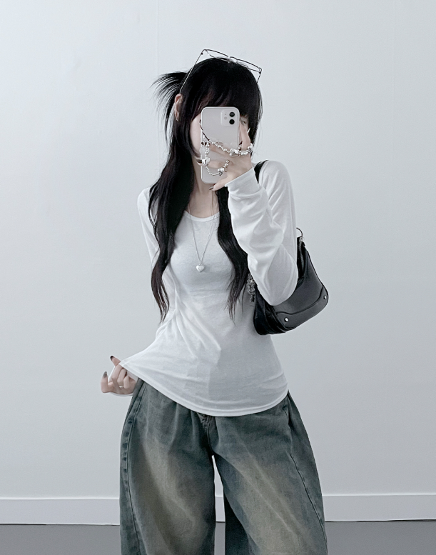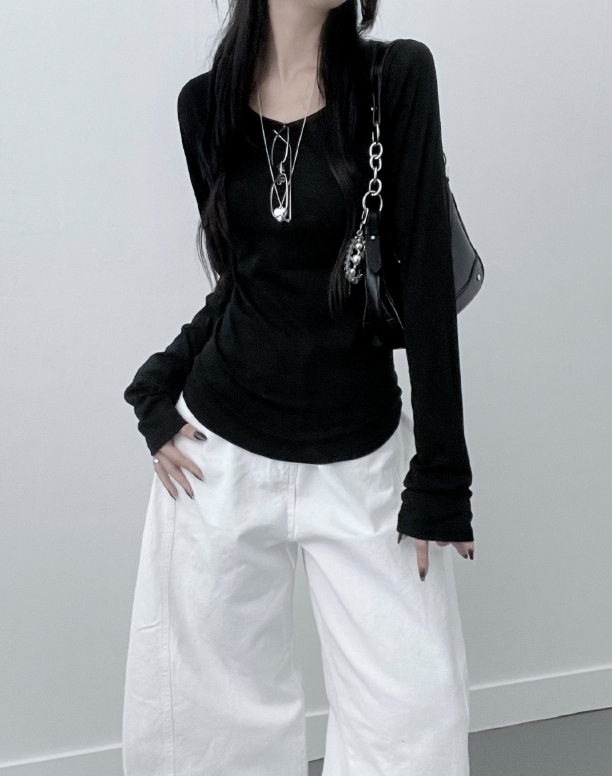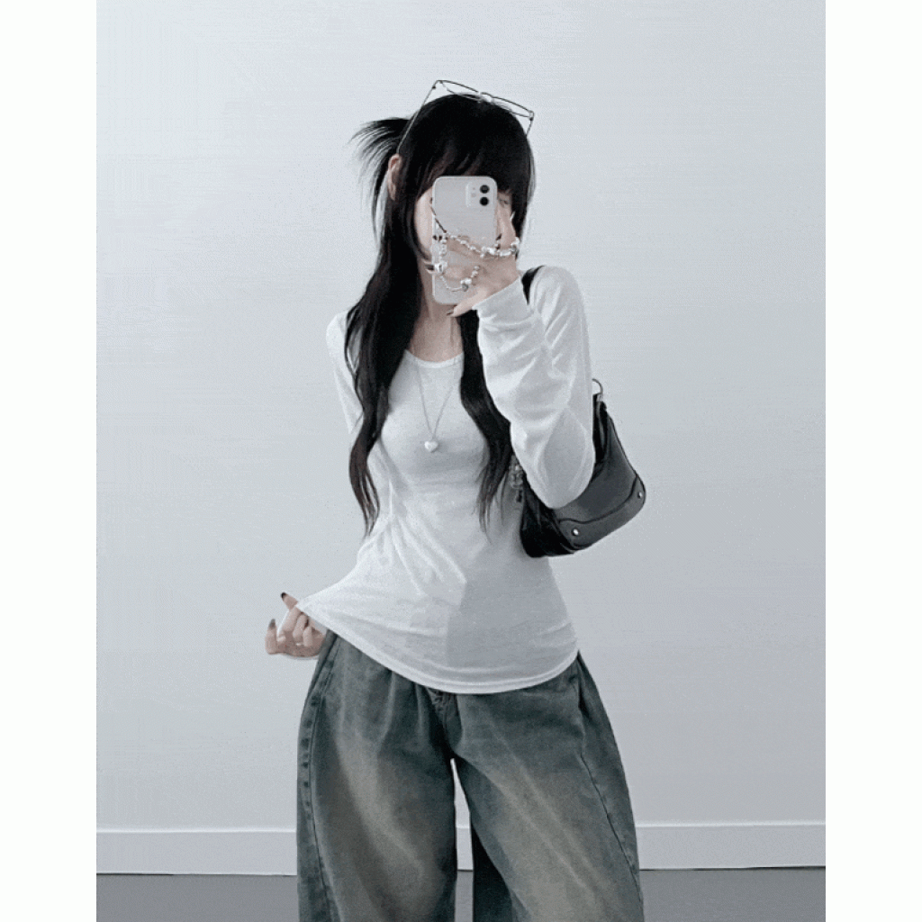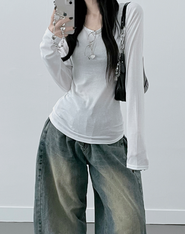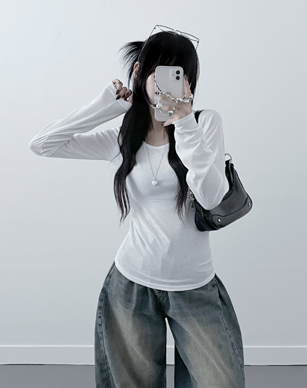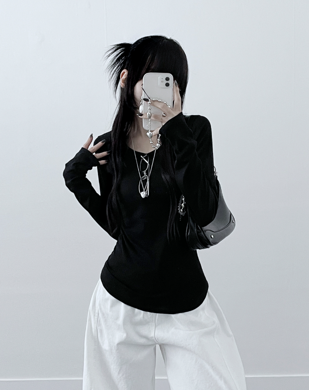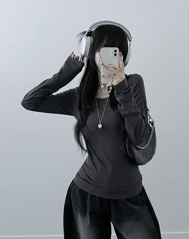 (•‾⌣‾•)簡約素色長袖衫百搭又修飾身形❤️又可以做內搭💕