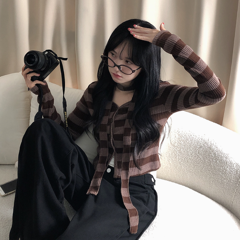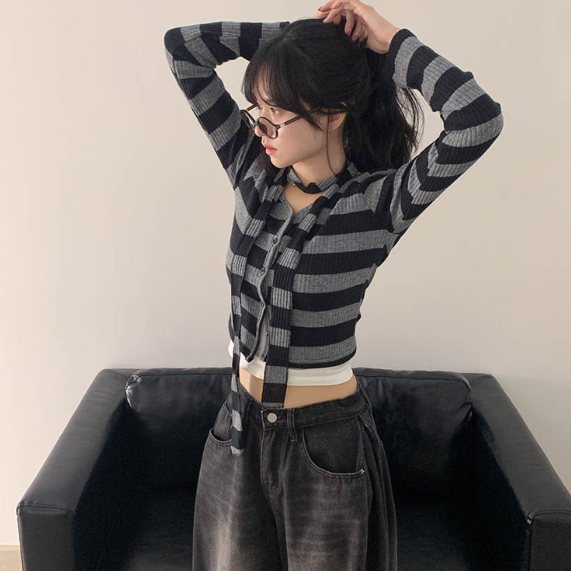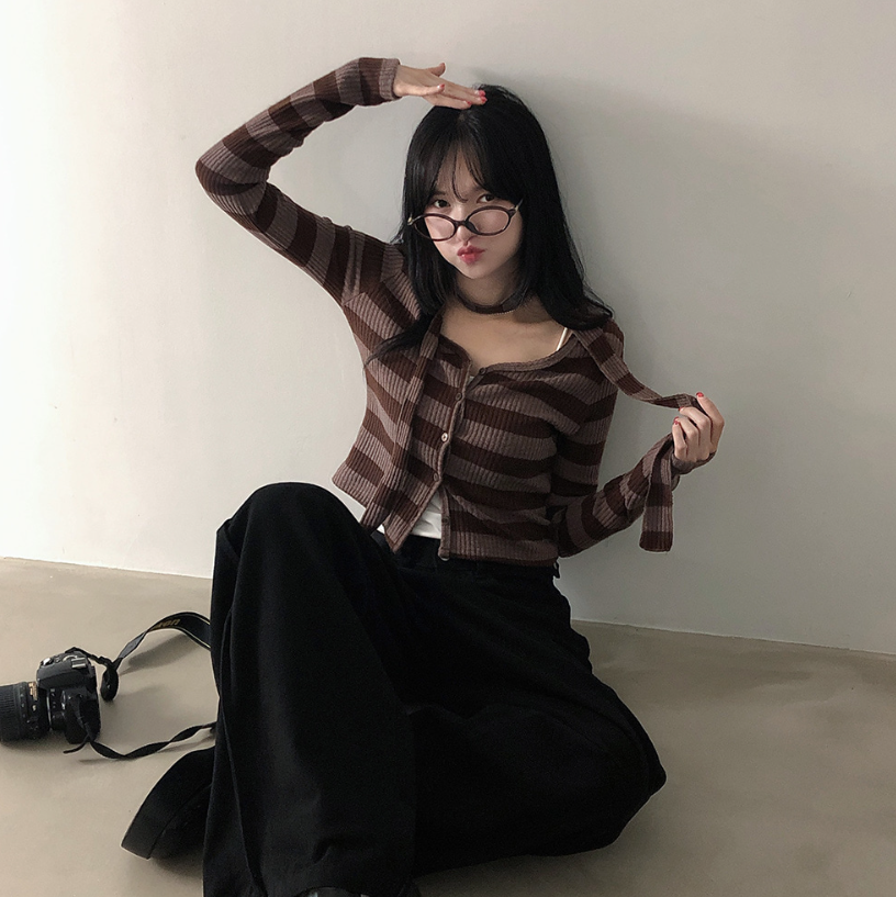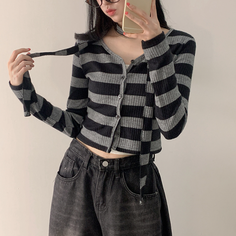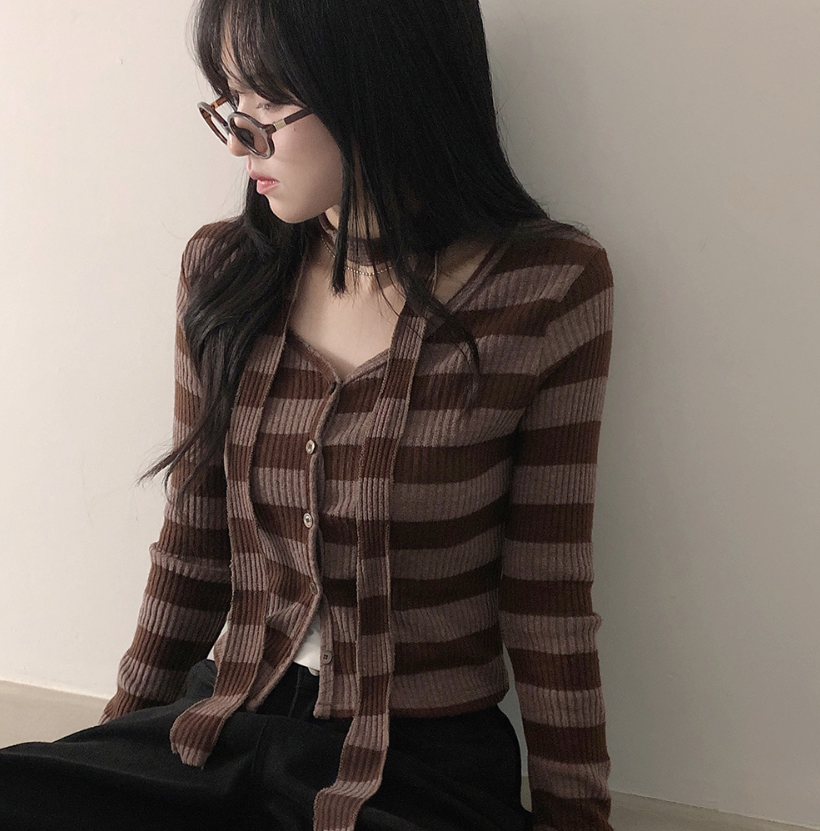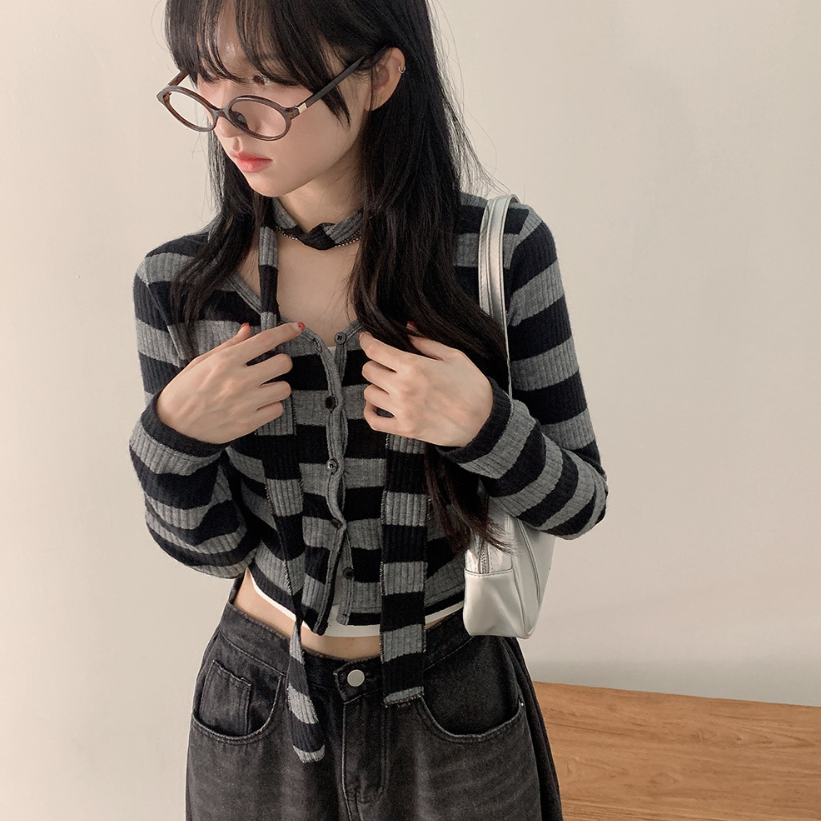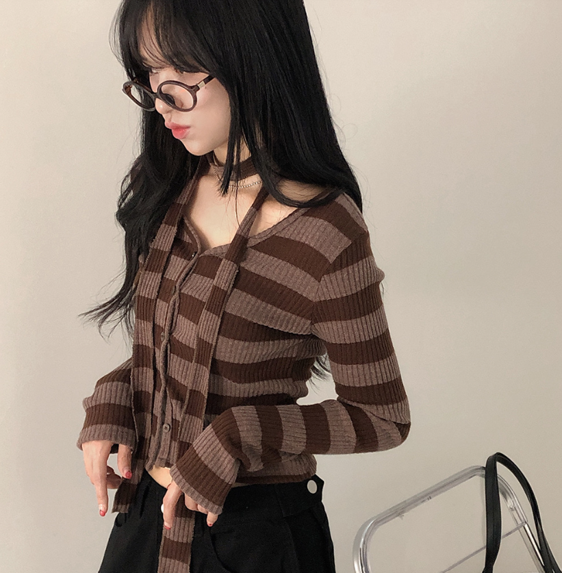 間條短版外套配圍巾套裝【3色入】 - 現貨