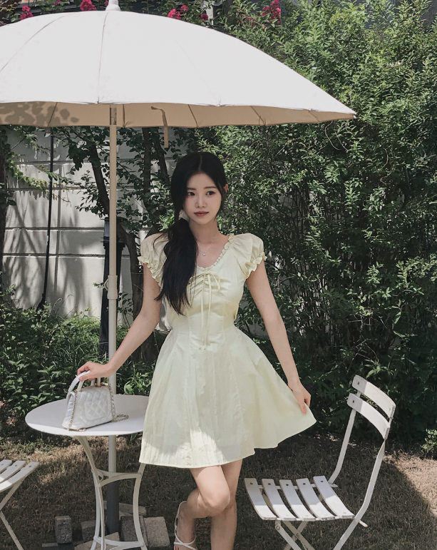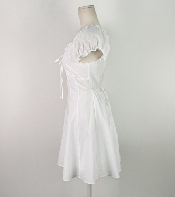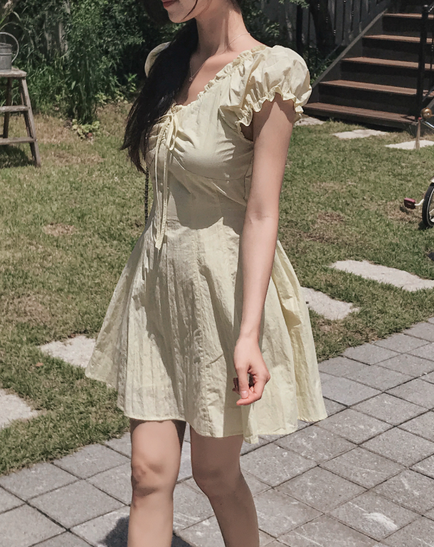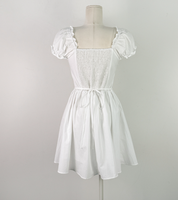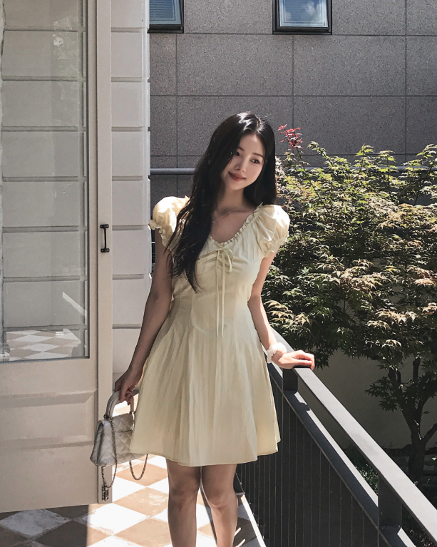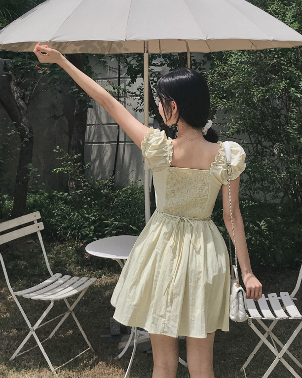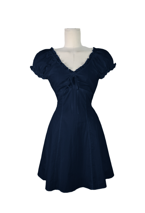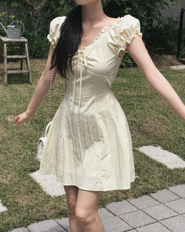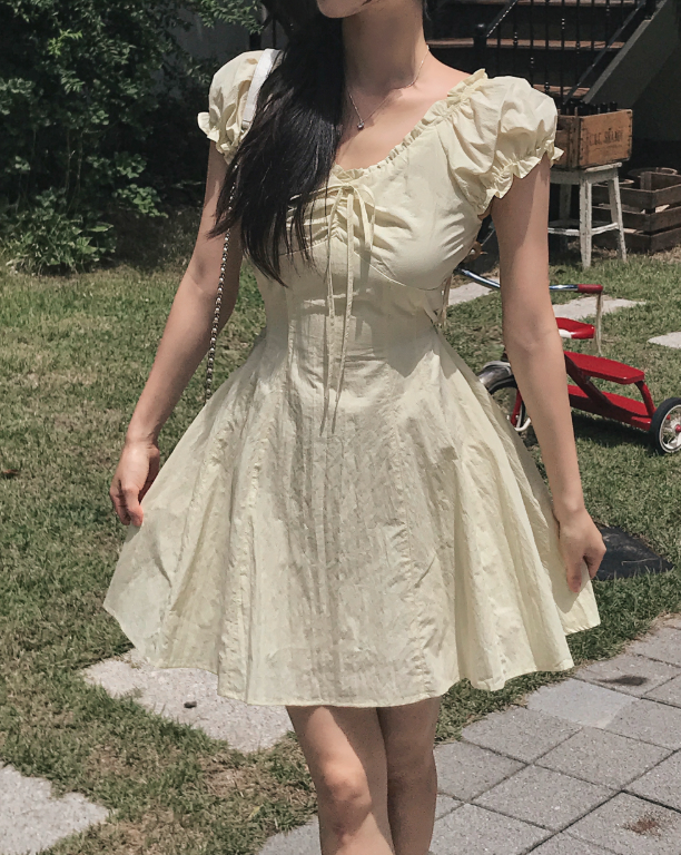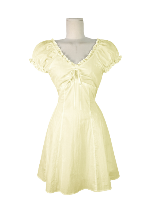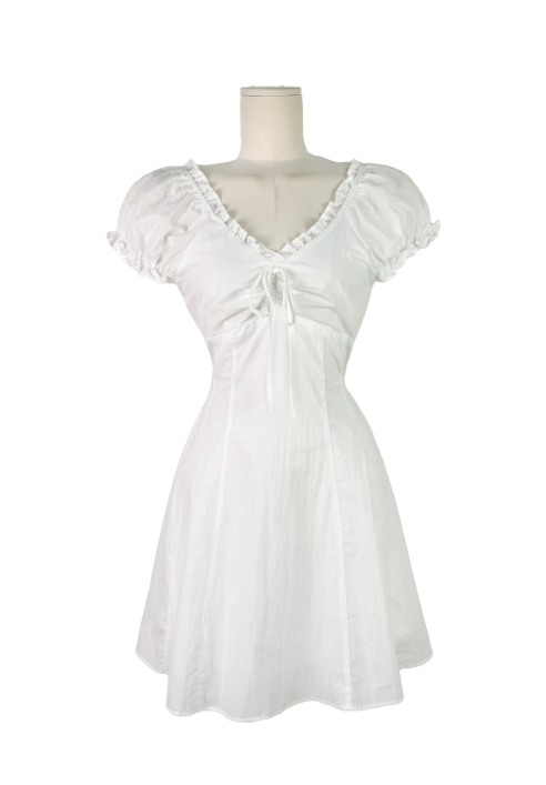V領蝴蝶結泡泡袖連身裙【3色入】 - 現貨