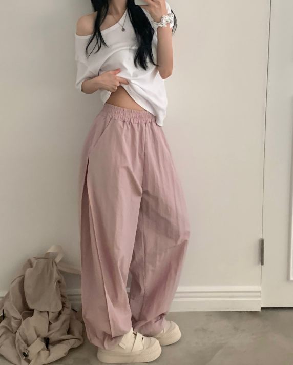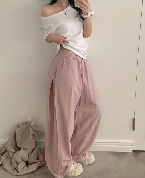 尼龍橡筋腰寬褲【4色入】 - 現貨