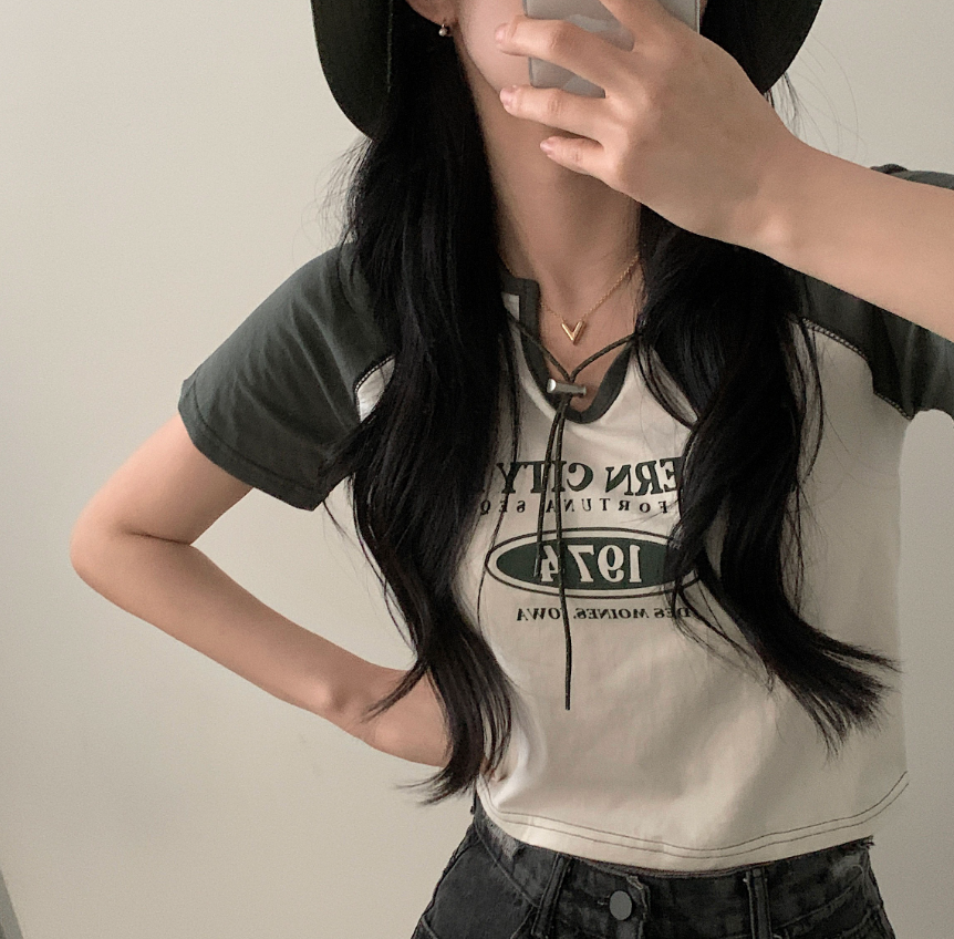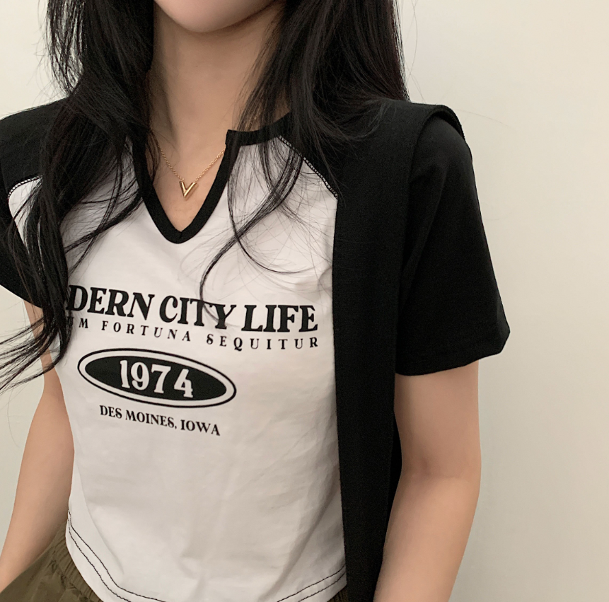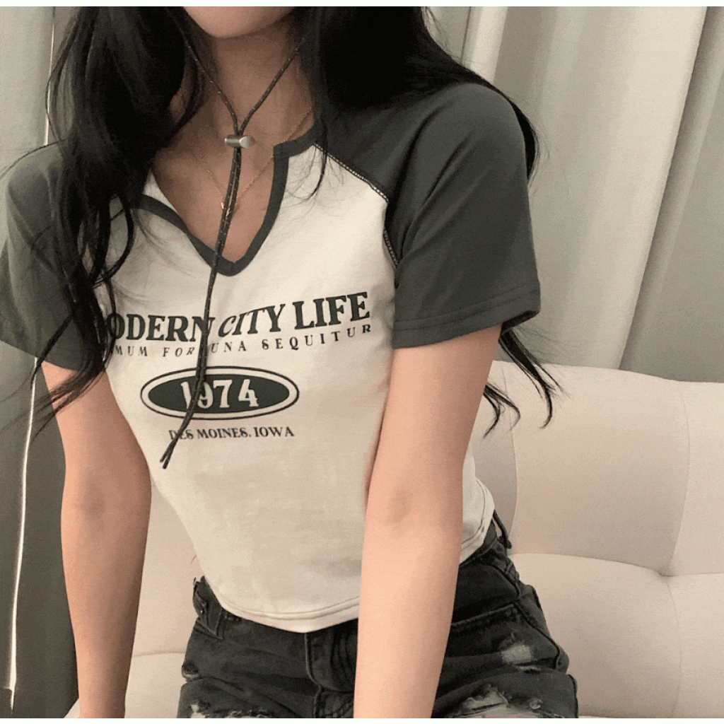 (•‾⌣‾•)小V領設計可以修飾上身整體更顯瘦❤️拼色唔會太單調簡單襯裙或褲都好睇💕