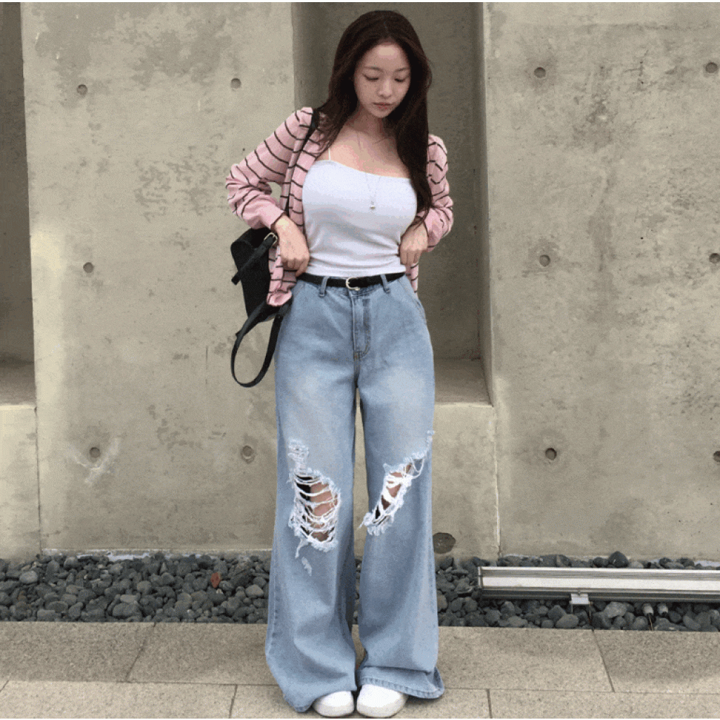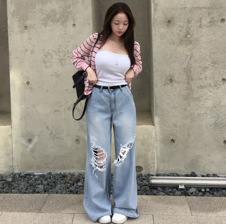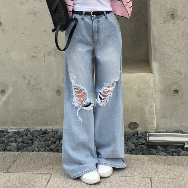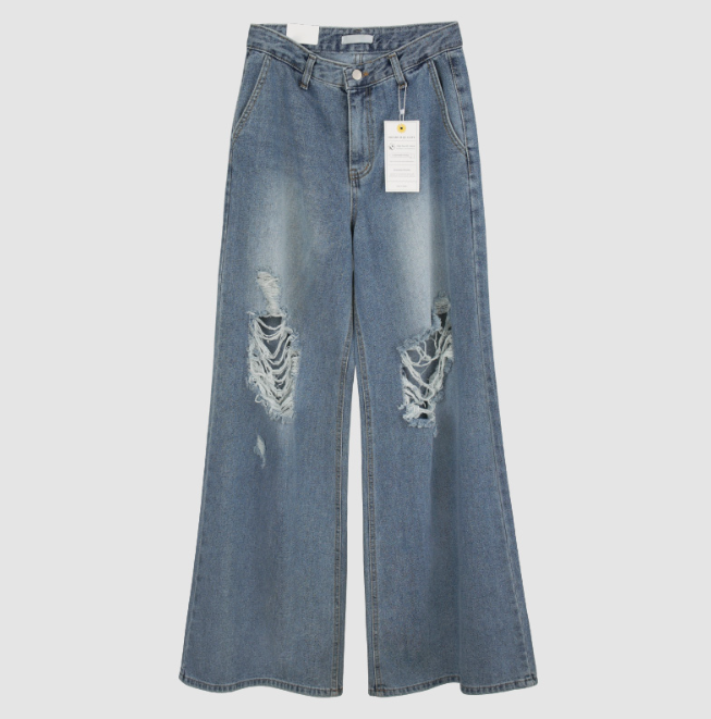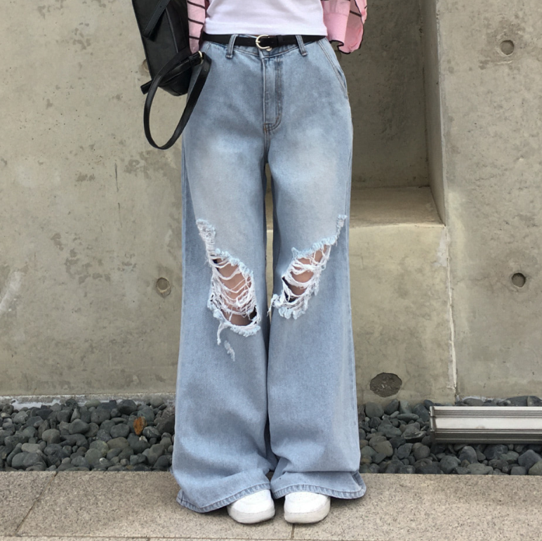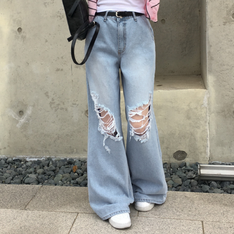ヽ( ^ω^ ゞ )寬鬆破洞牛仔長褲💕平日百搭下身款式❤️