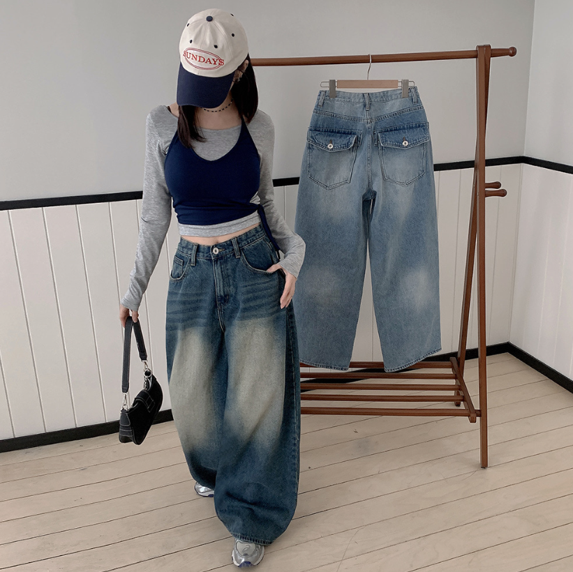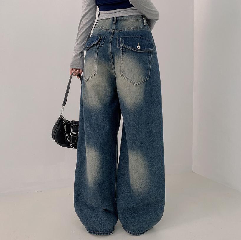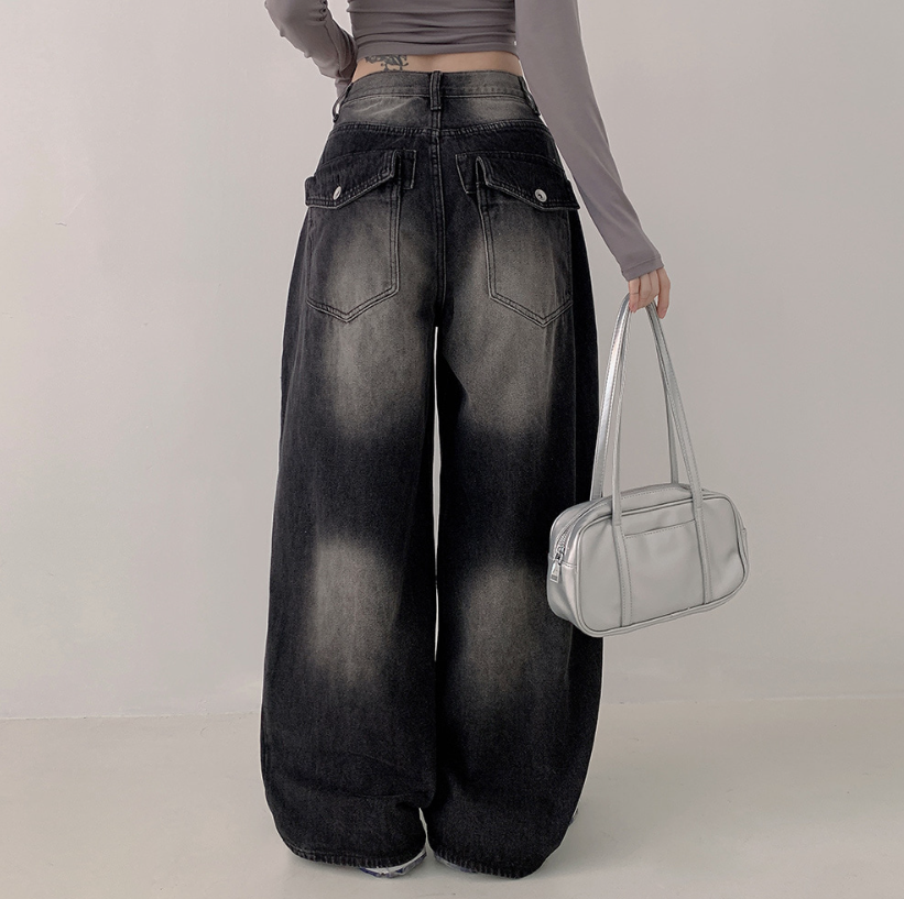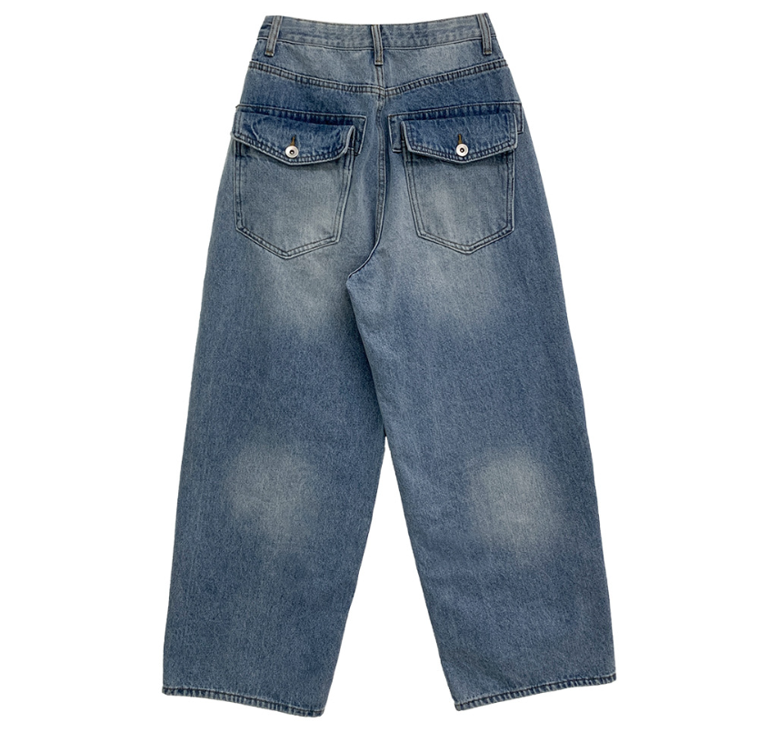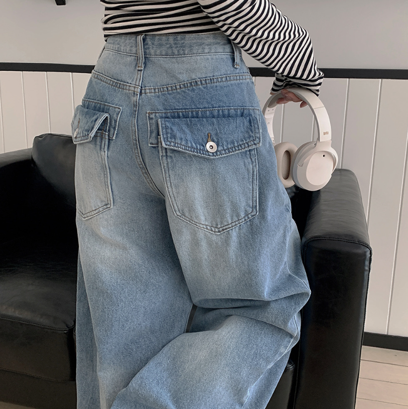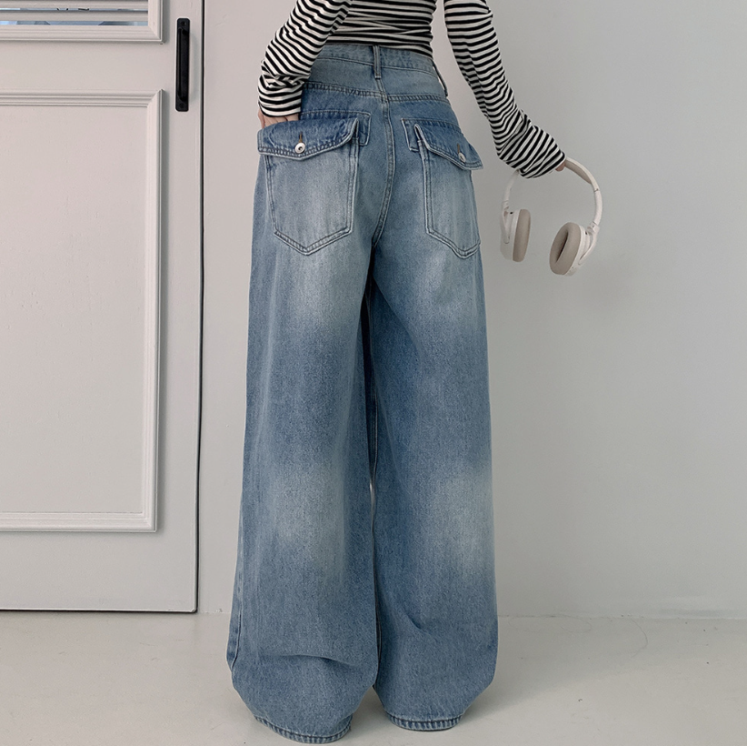 ヽ( ^ω^ ゞ )寬鬆後口袋水洗牛仔長褲💕平日百搭下身款式❤️