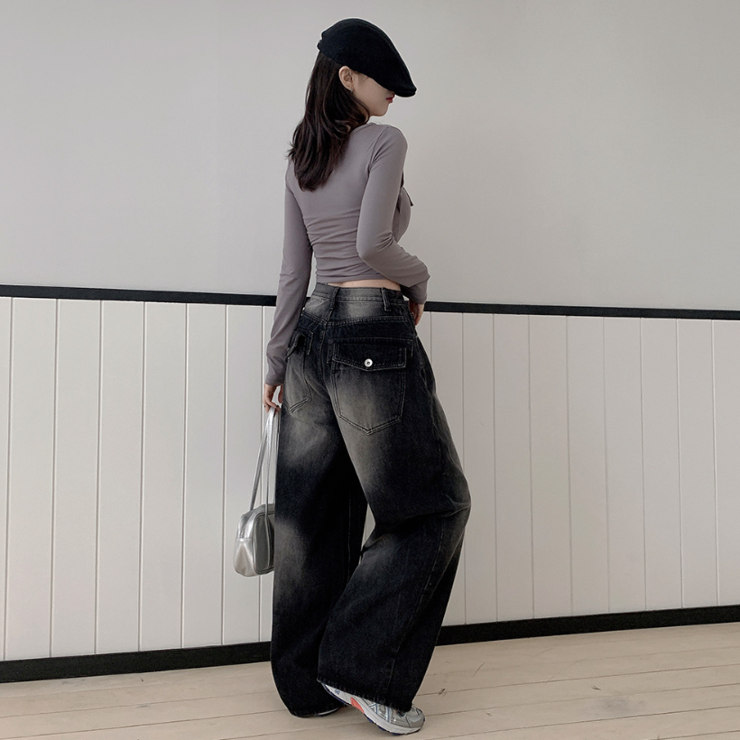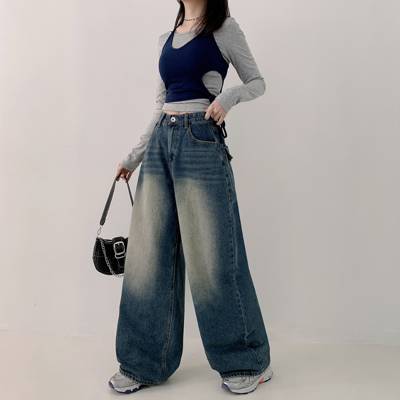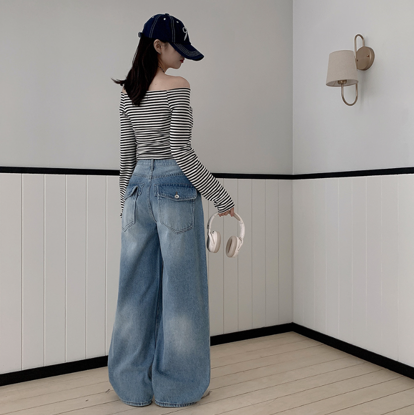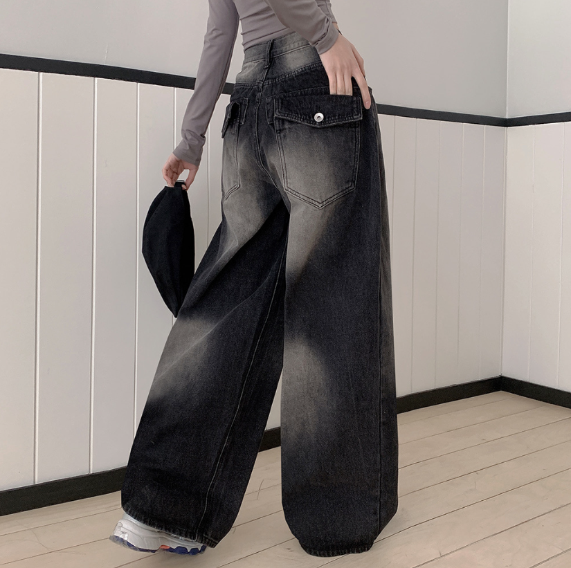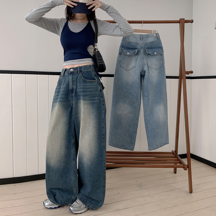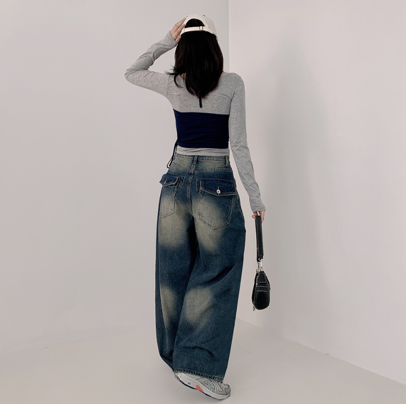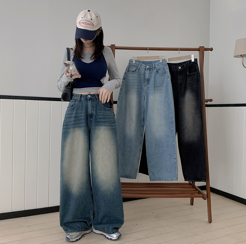 ヽ( ^ω^ ゞ )寬鬆後口袋水洗牛仔長褲💕平日百搭下身款式❤️