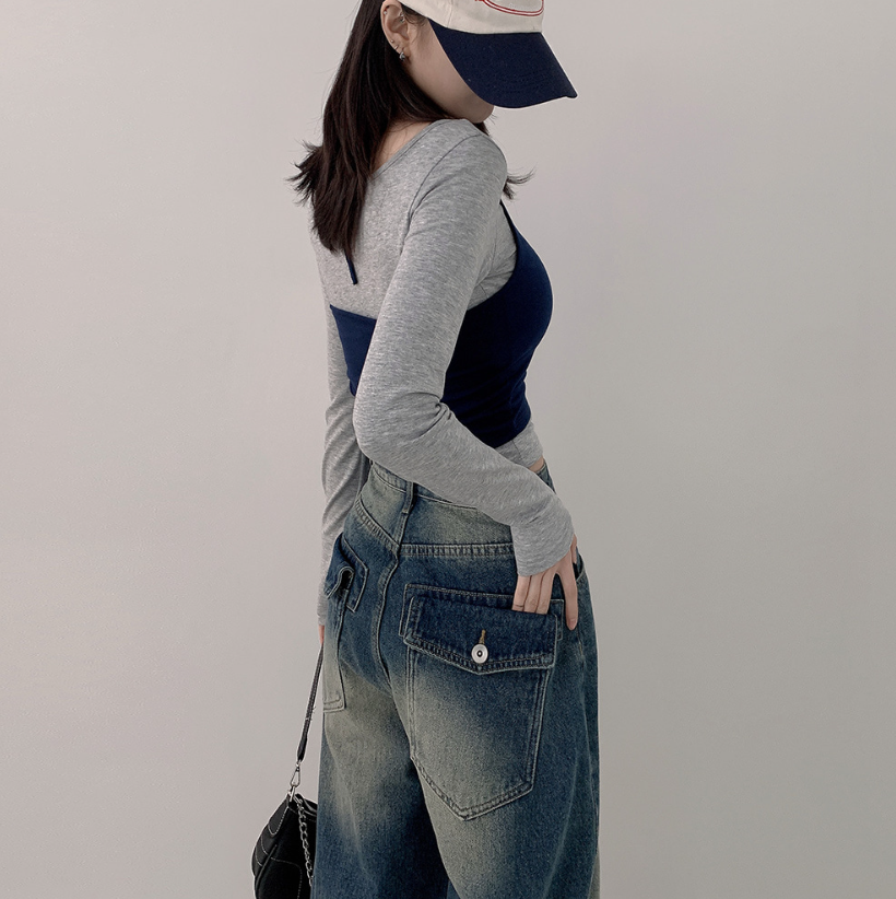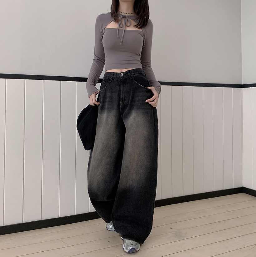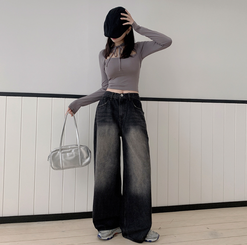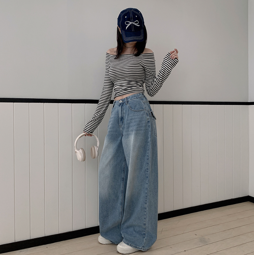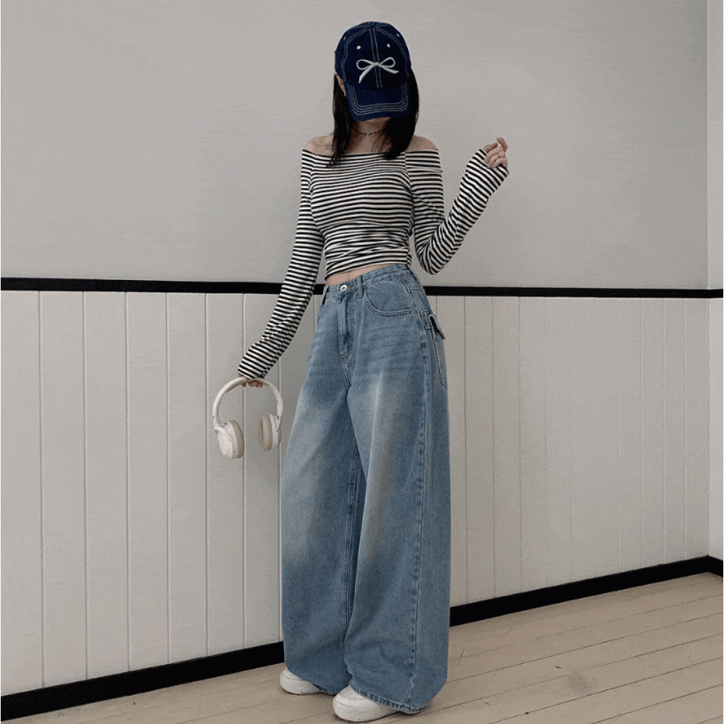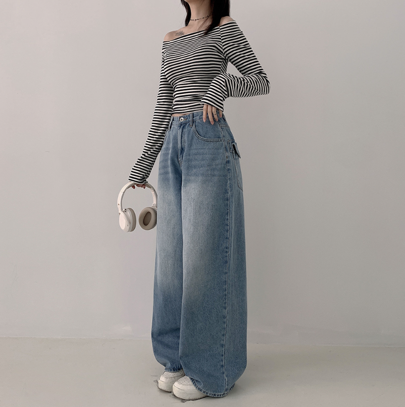 ヽ( ^ω^ ゞ )寬鬆後口袋水洗牛仔長褲💕平日百搭下身款式❤️
