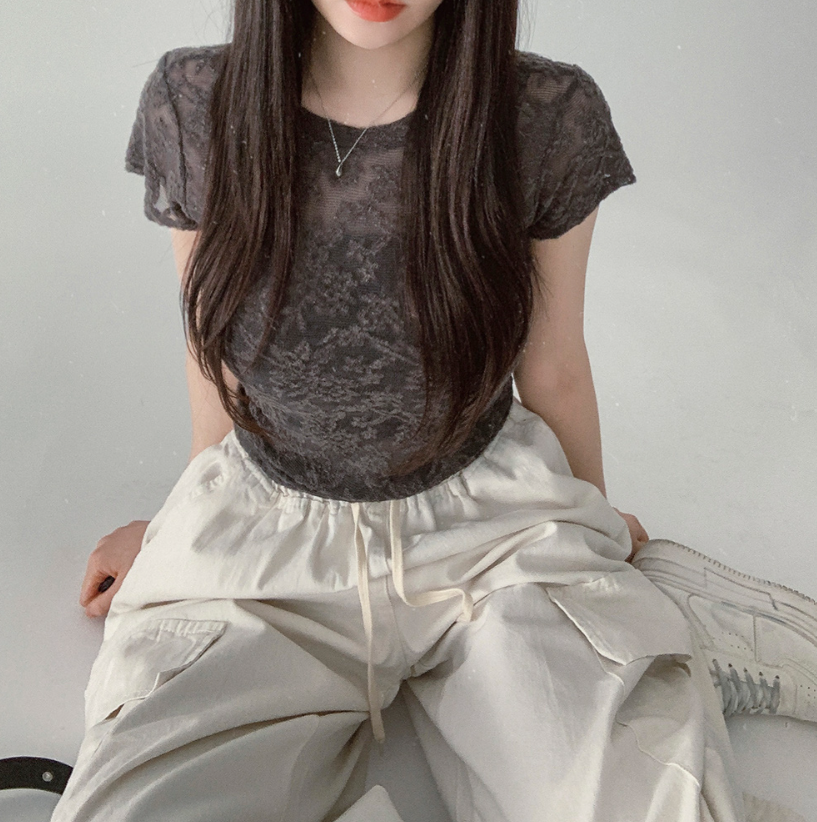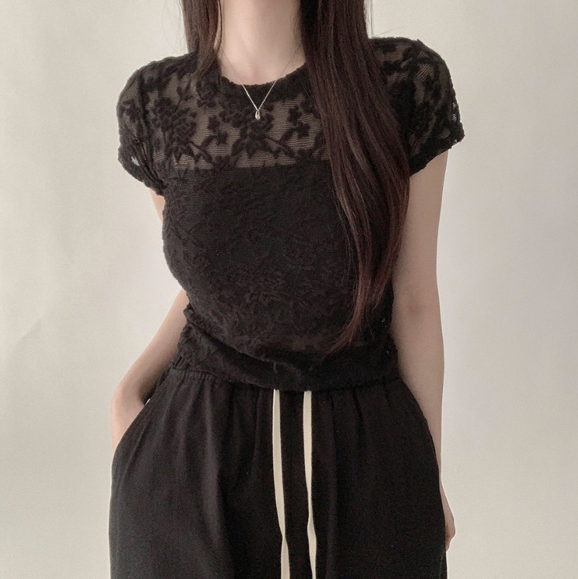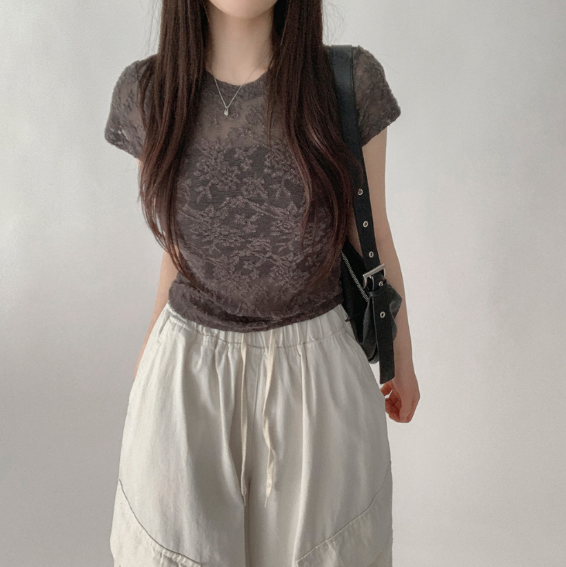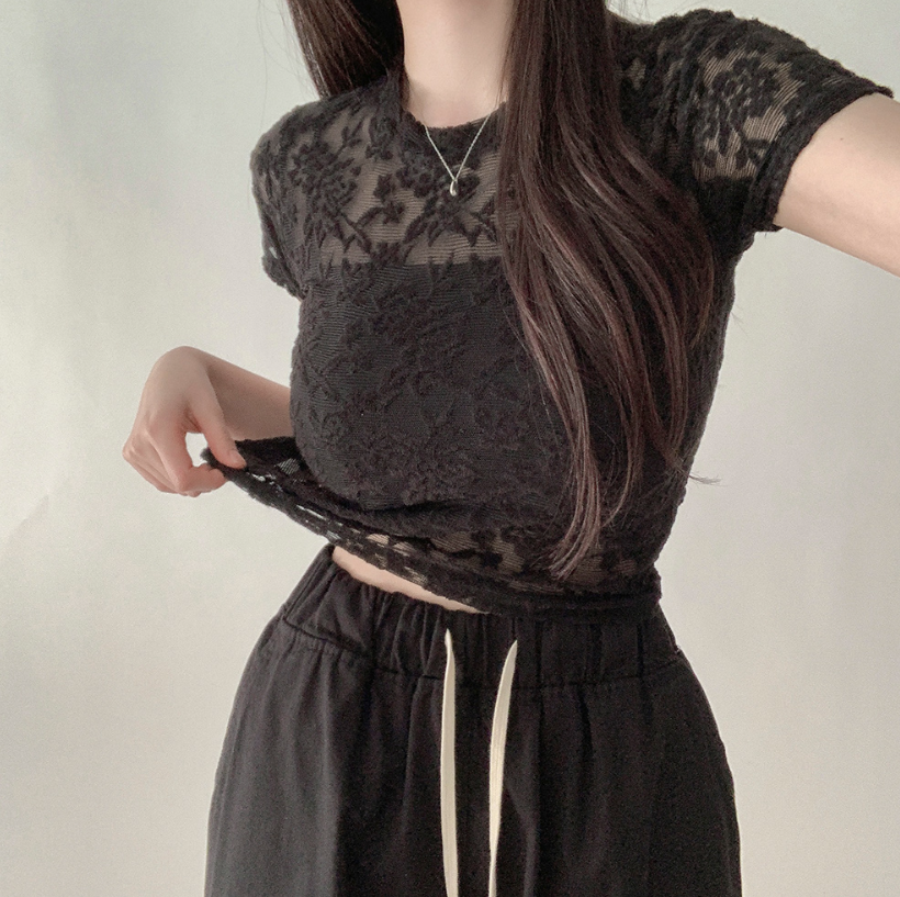 透視蕾絲短袖T恤【3色入】
