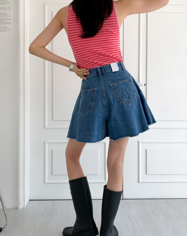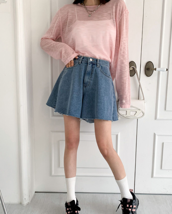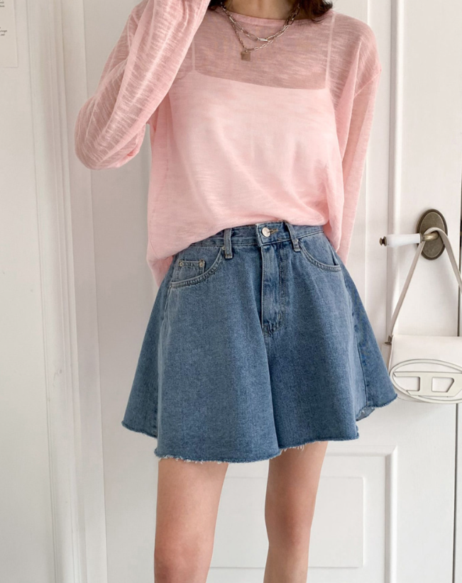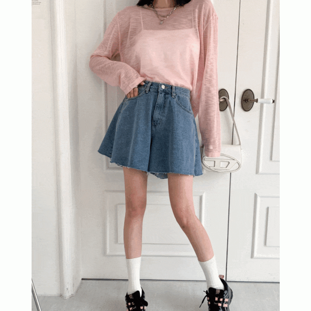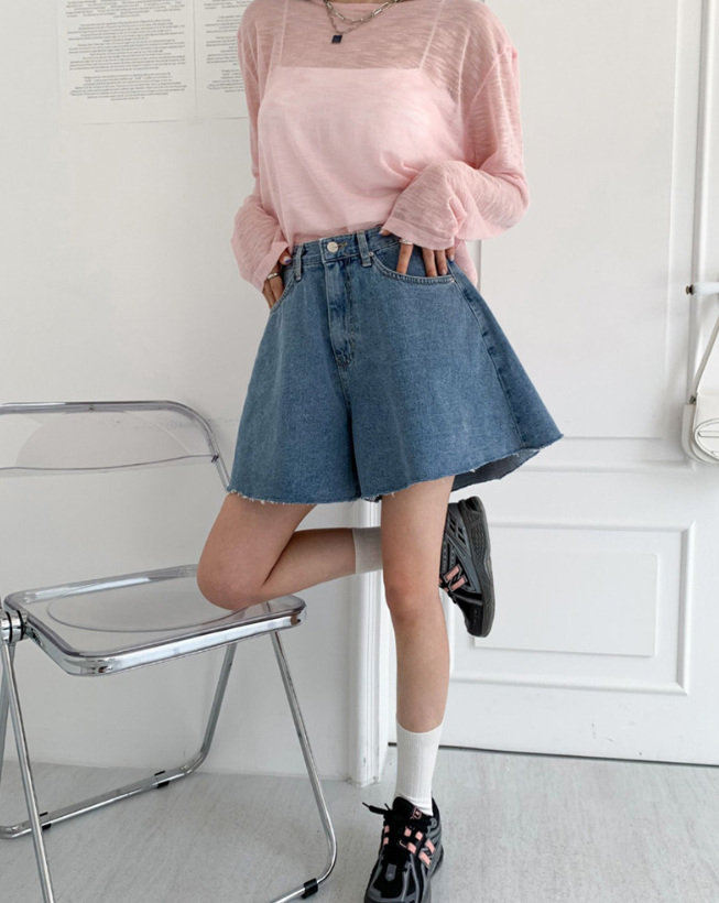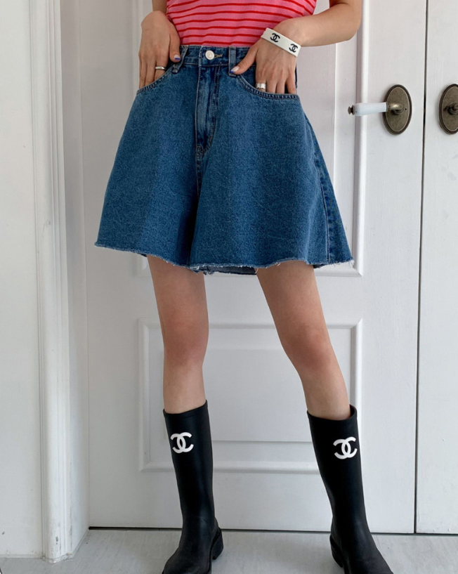 (•‾⌣‾•)扇形牛仔短褲❤️寬鬆設計好似喇叭裙唔容易撞款💕