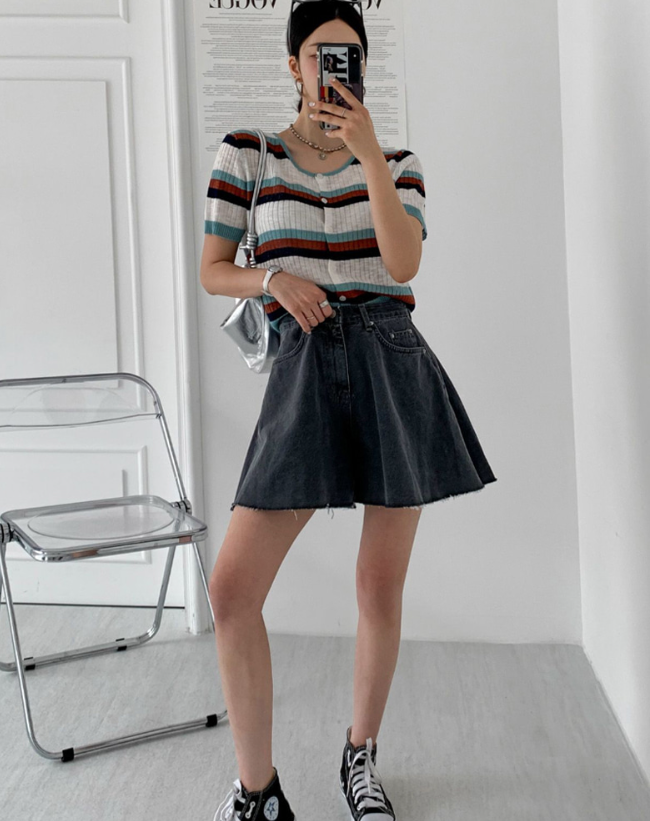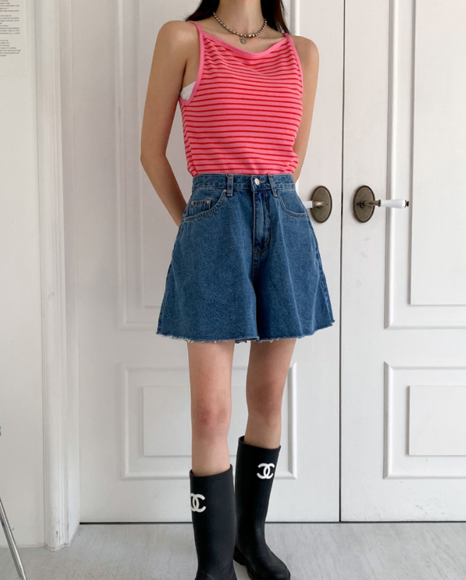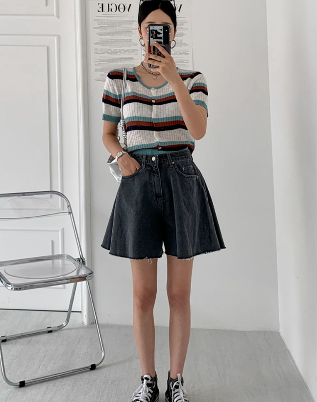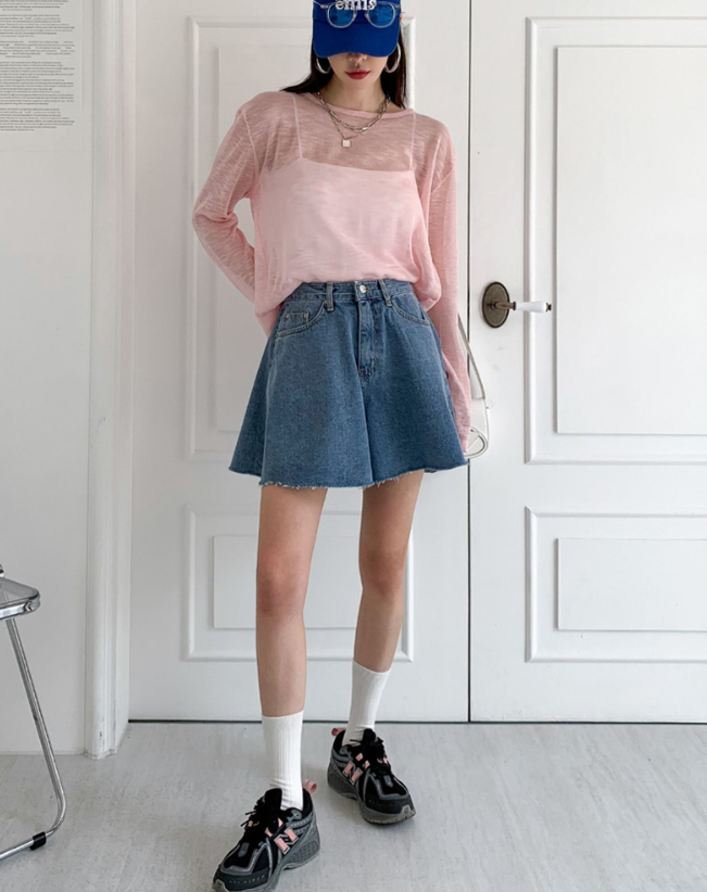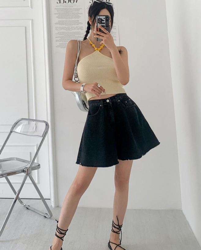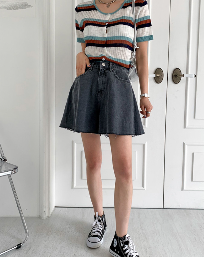 (•‾⌣‾•)扇形牛仔短褲❤️寬鬆設計好似喇叭裙唔容易撞款💕