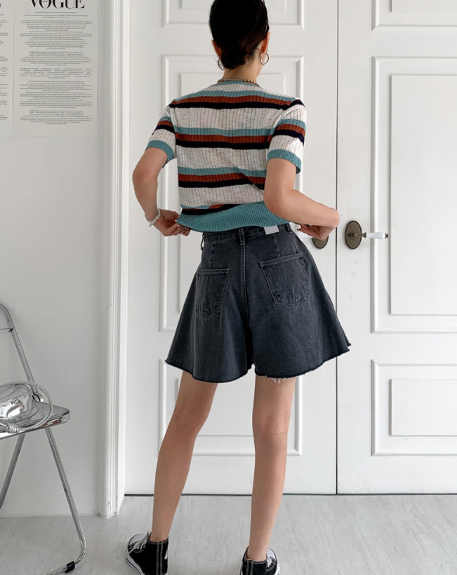 扇形寬鬆牛仔短褲【4色入】【S-L】