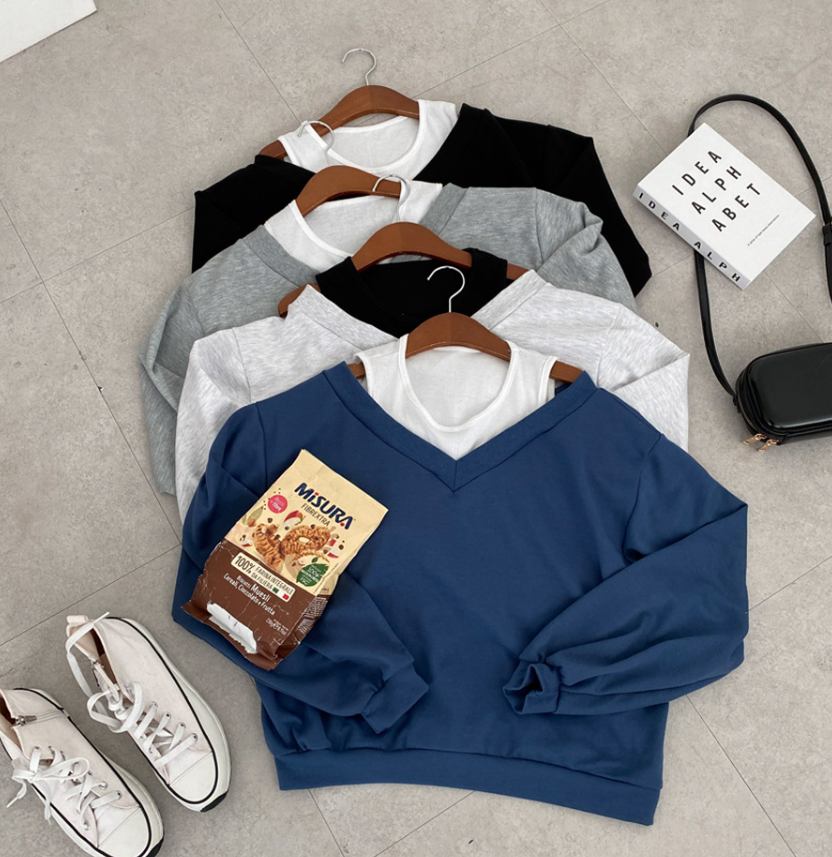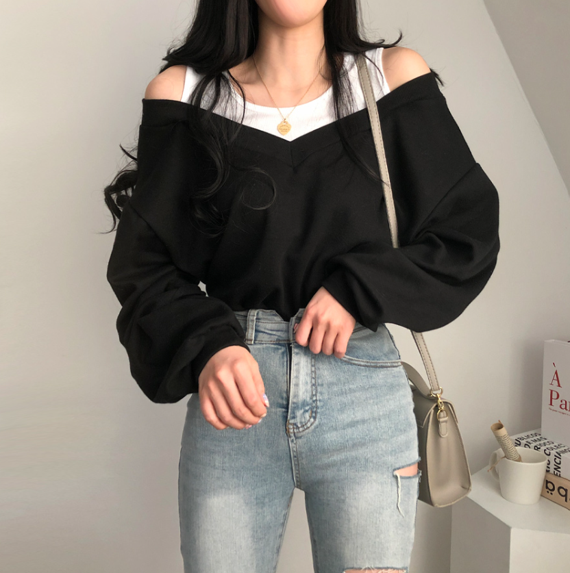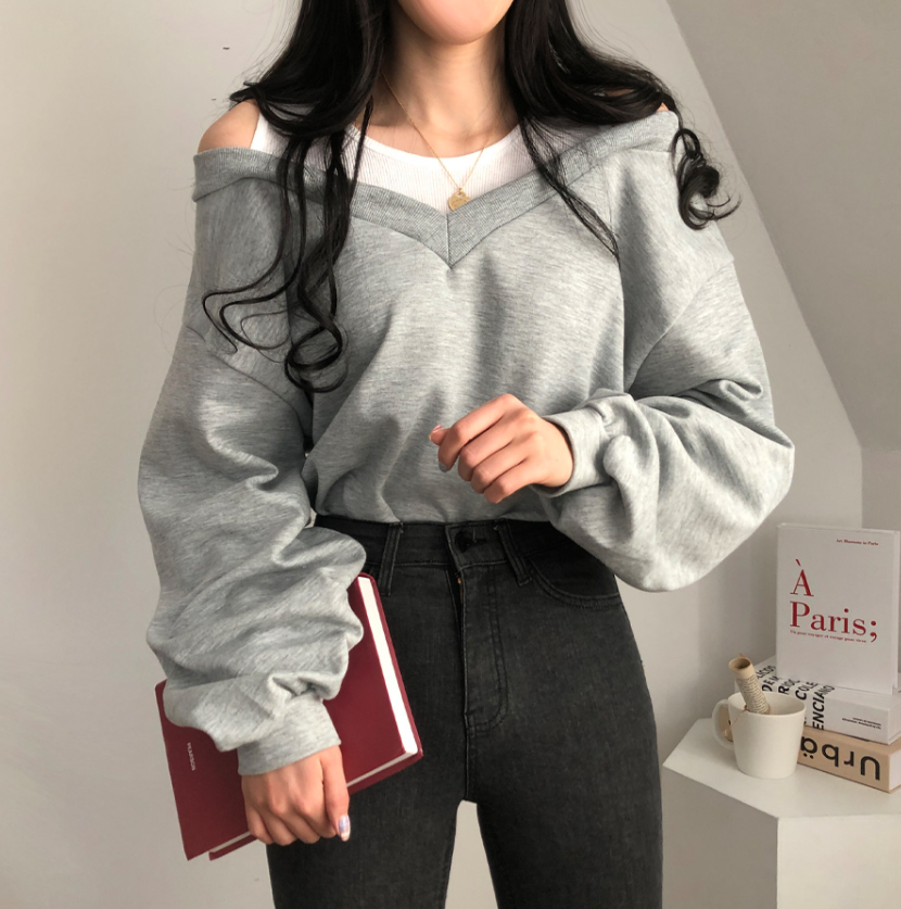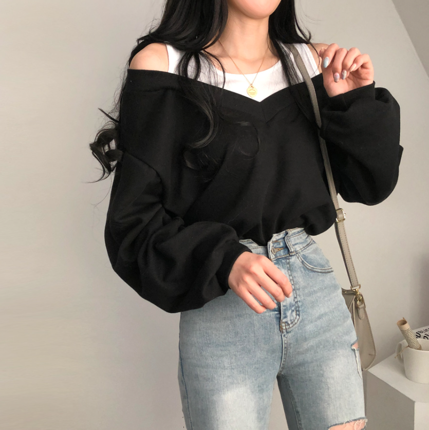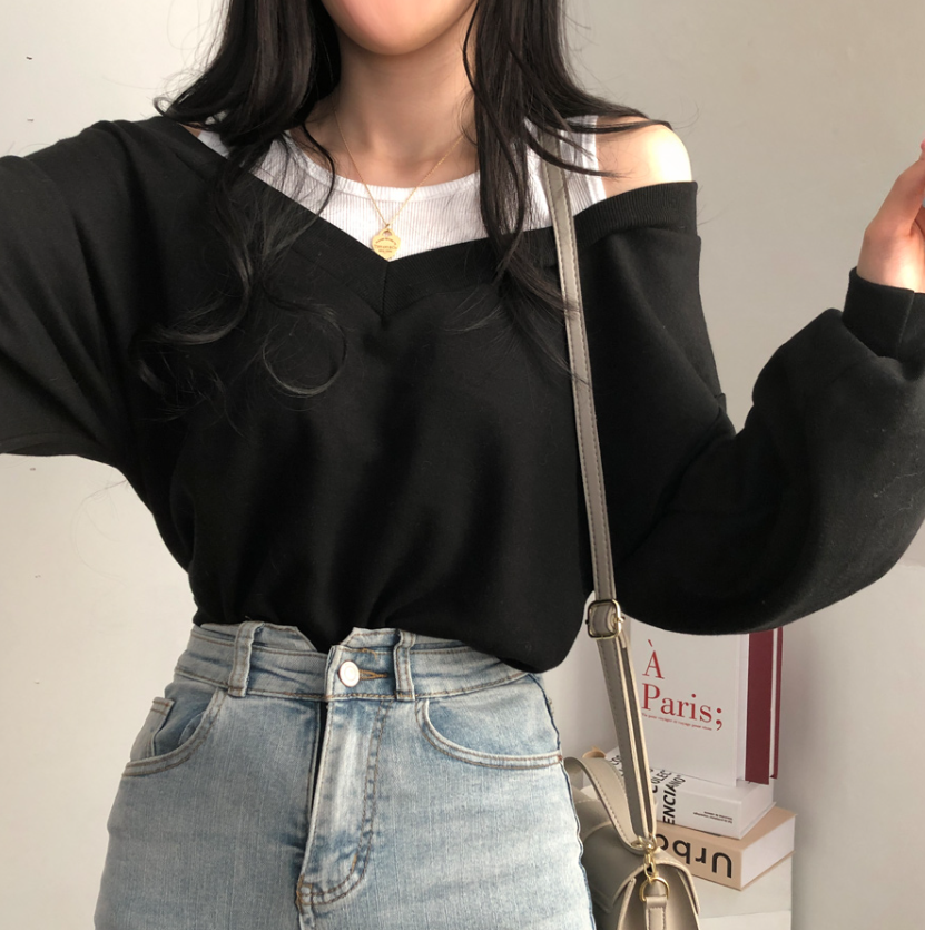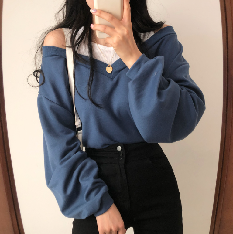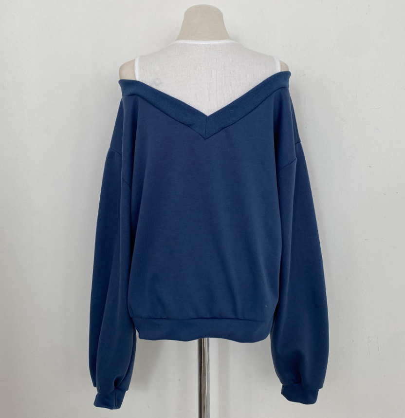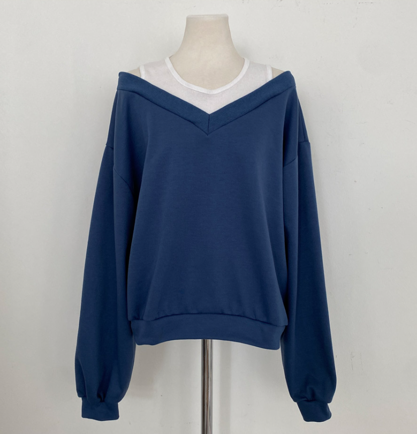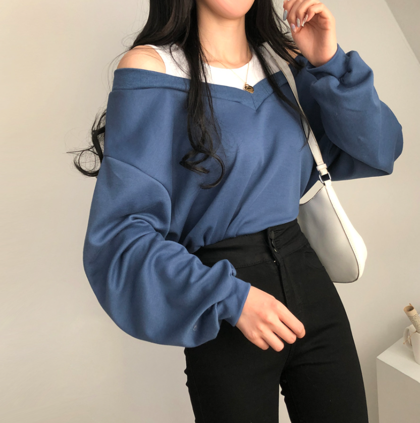 假兩件露肩長袖衛衣