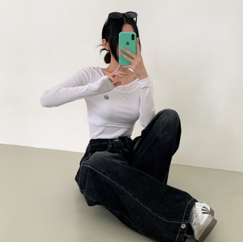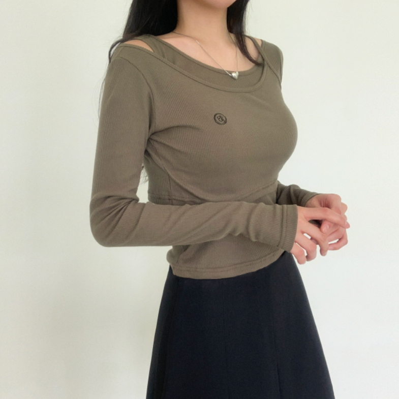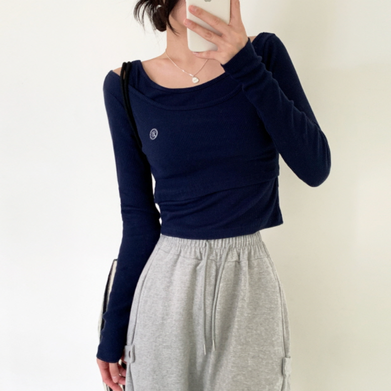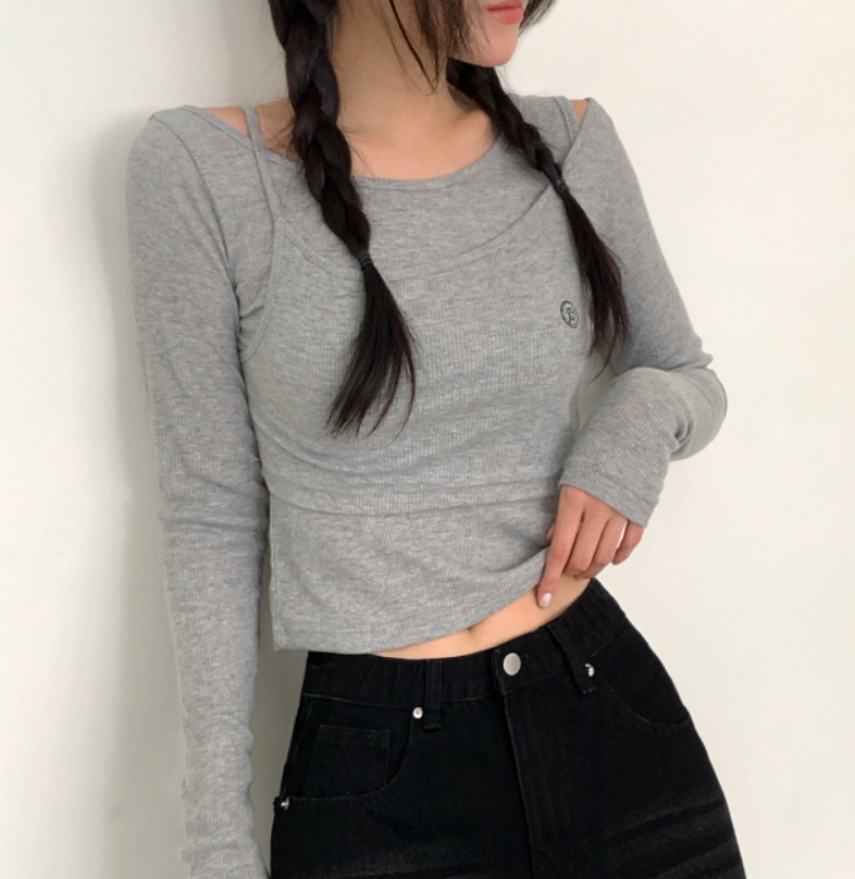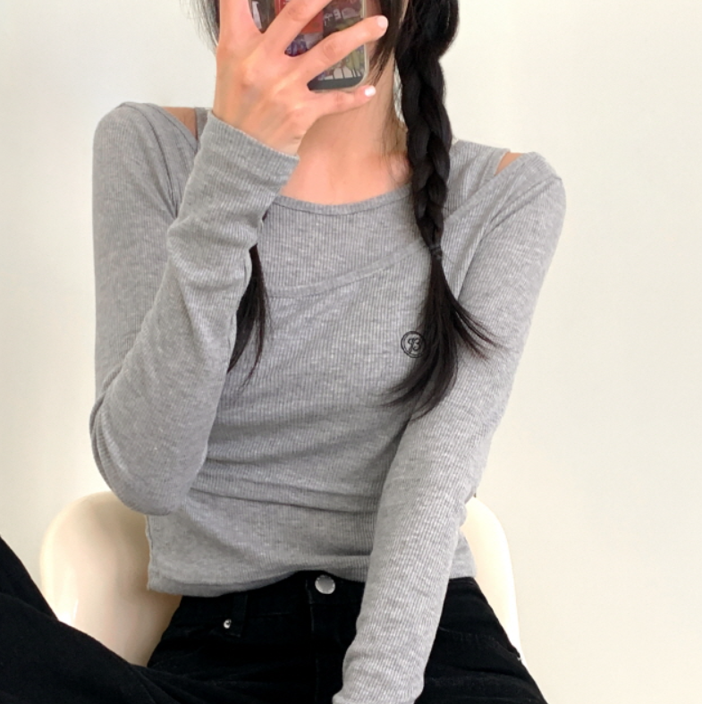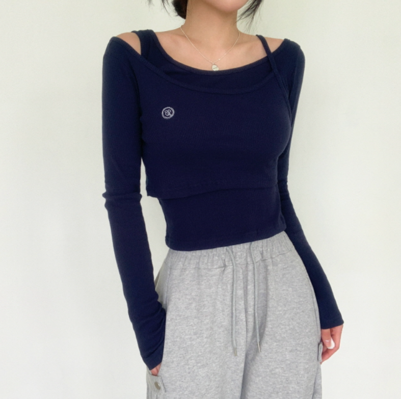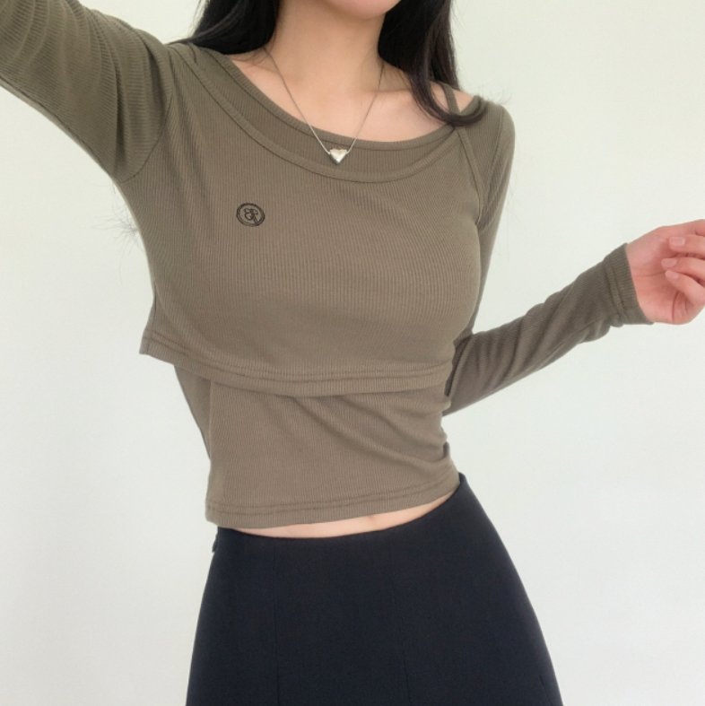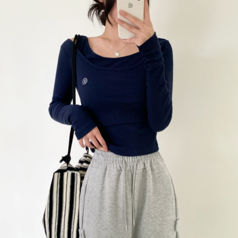 兩件套刺繡長袖T恤【5色入】
