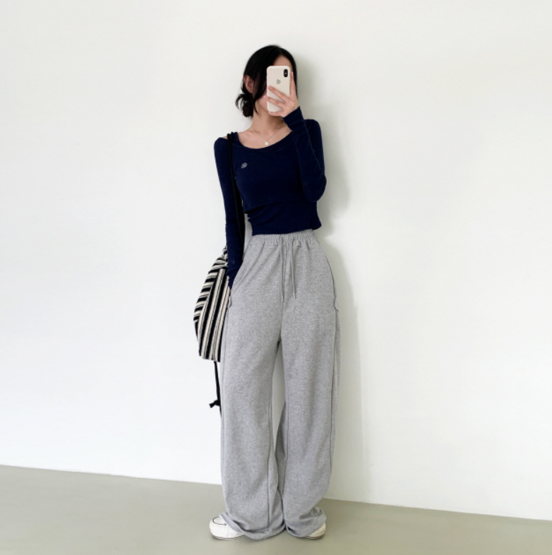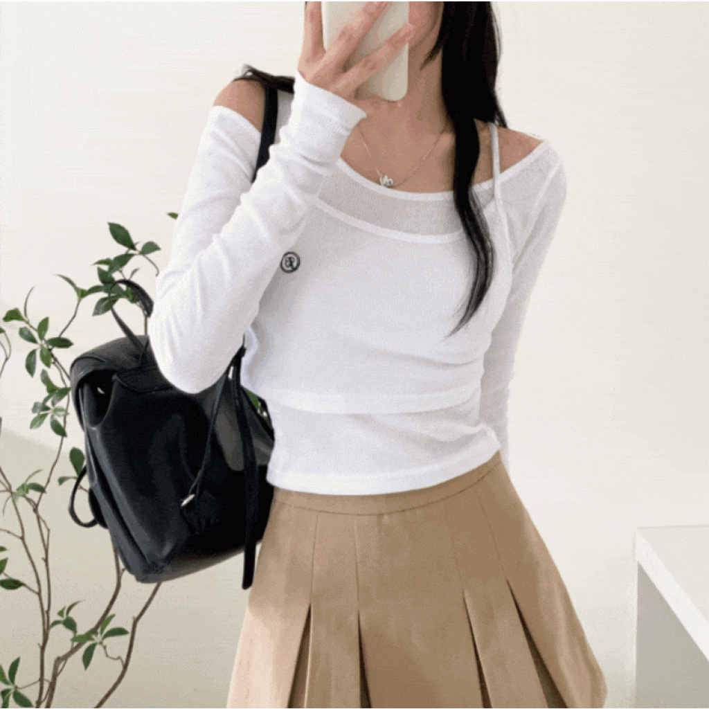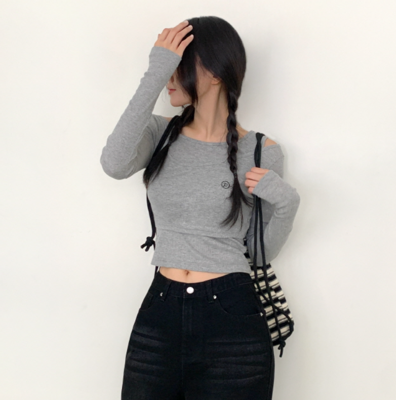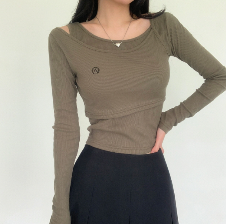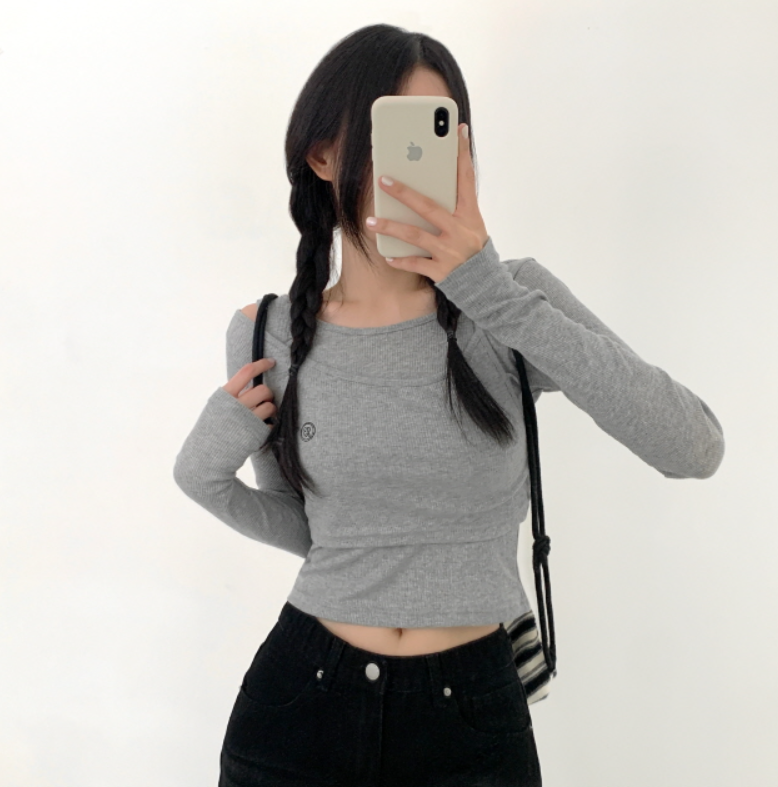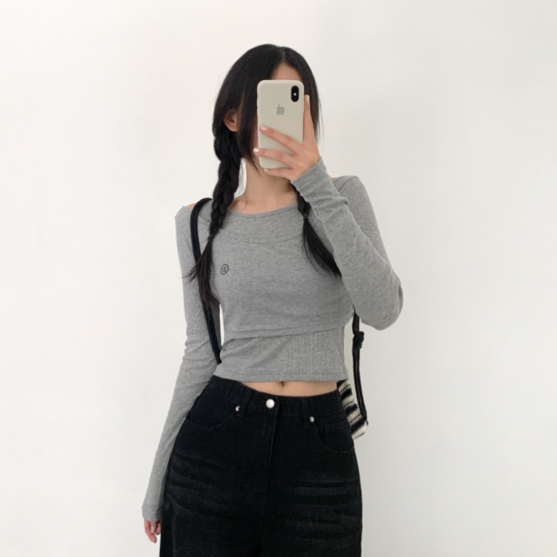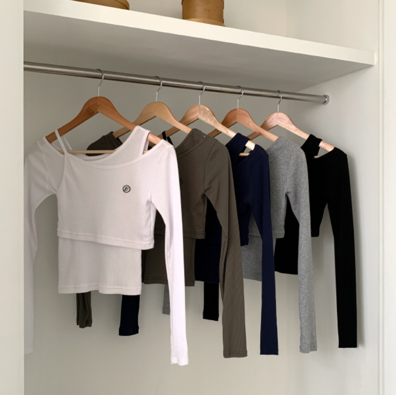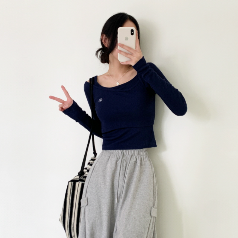 兩件套刺繡長袖T恤【5色入】