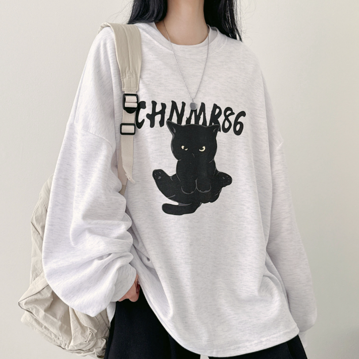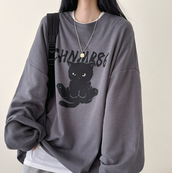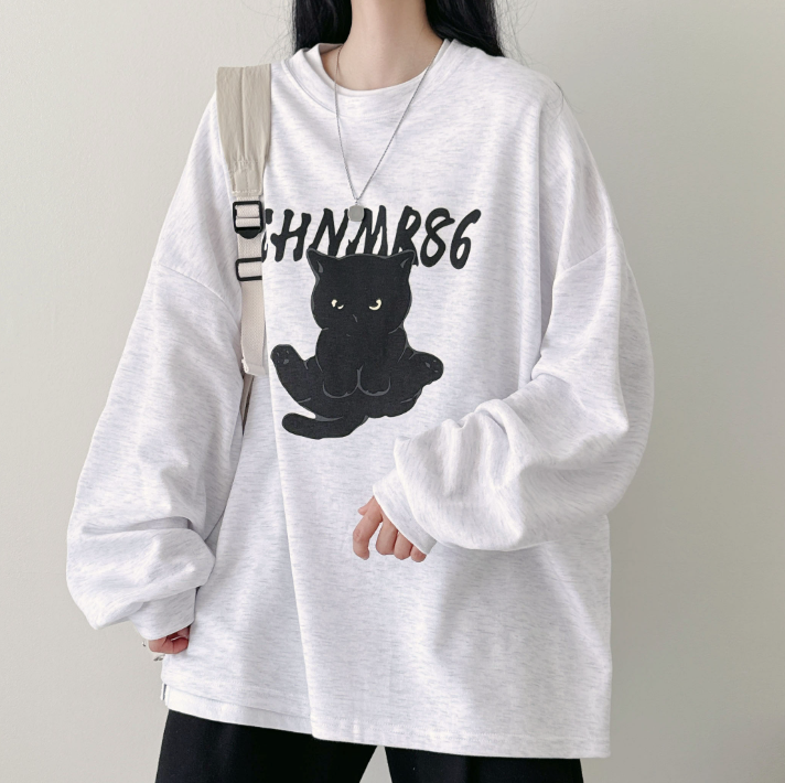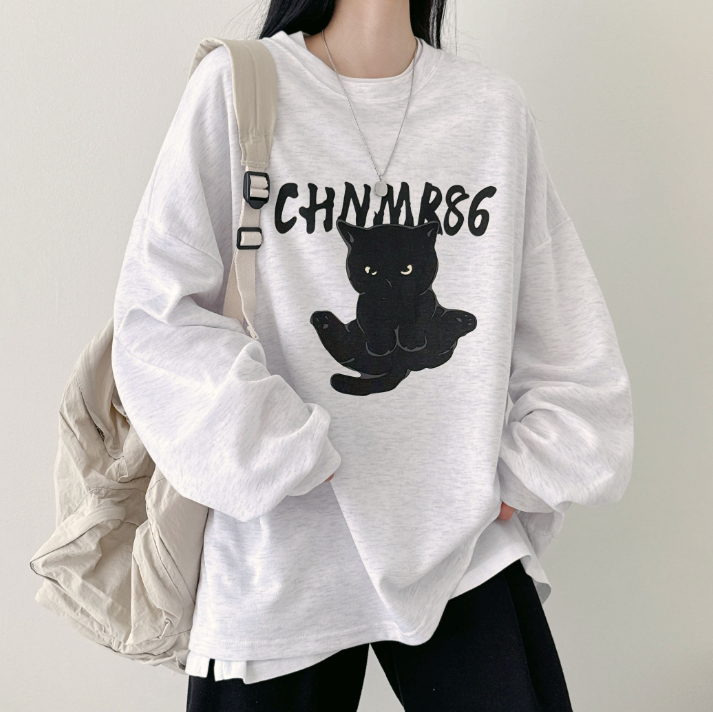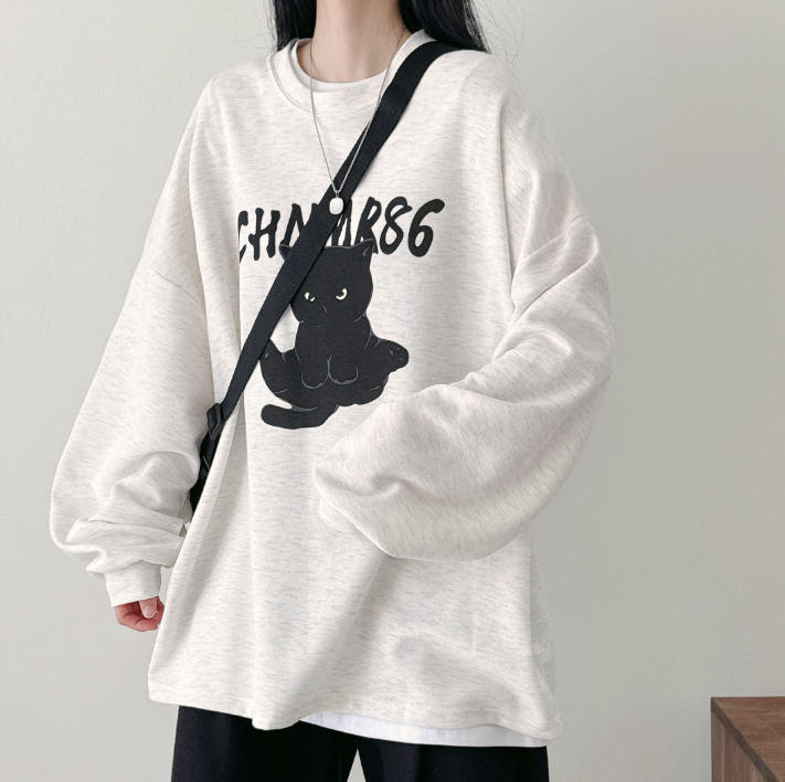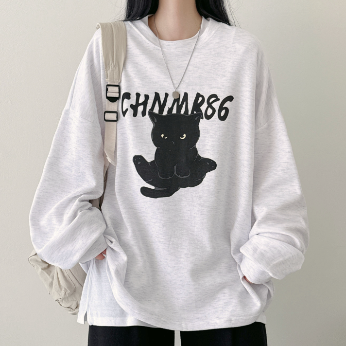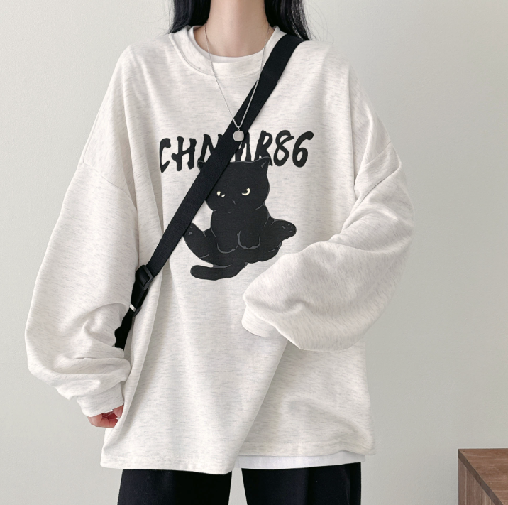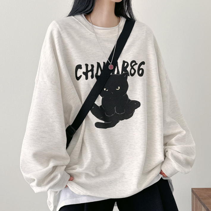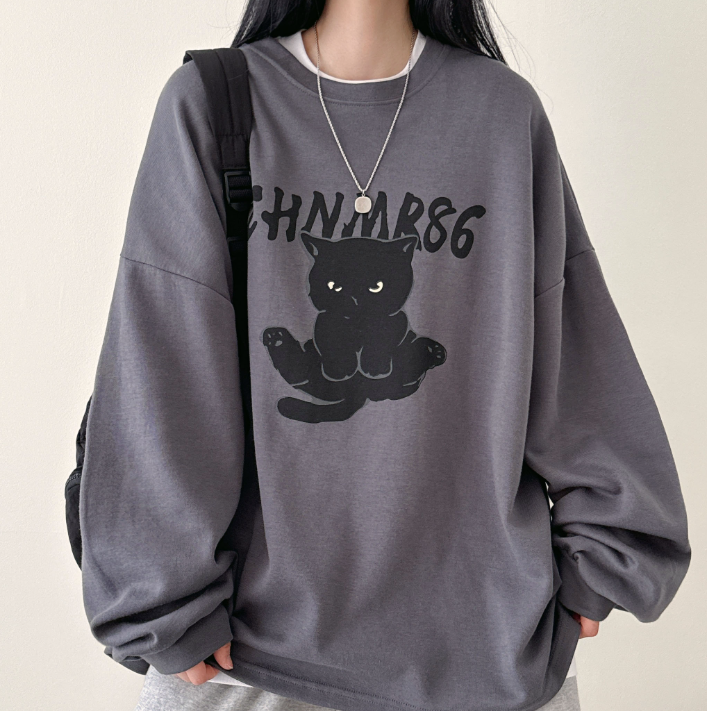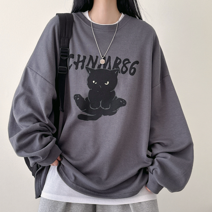 Overfit貓貓長袖T恤【3色入】【情侶裝】【男女可穿】