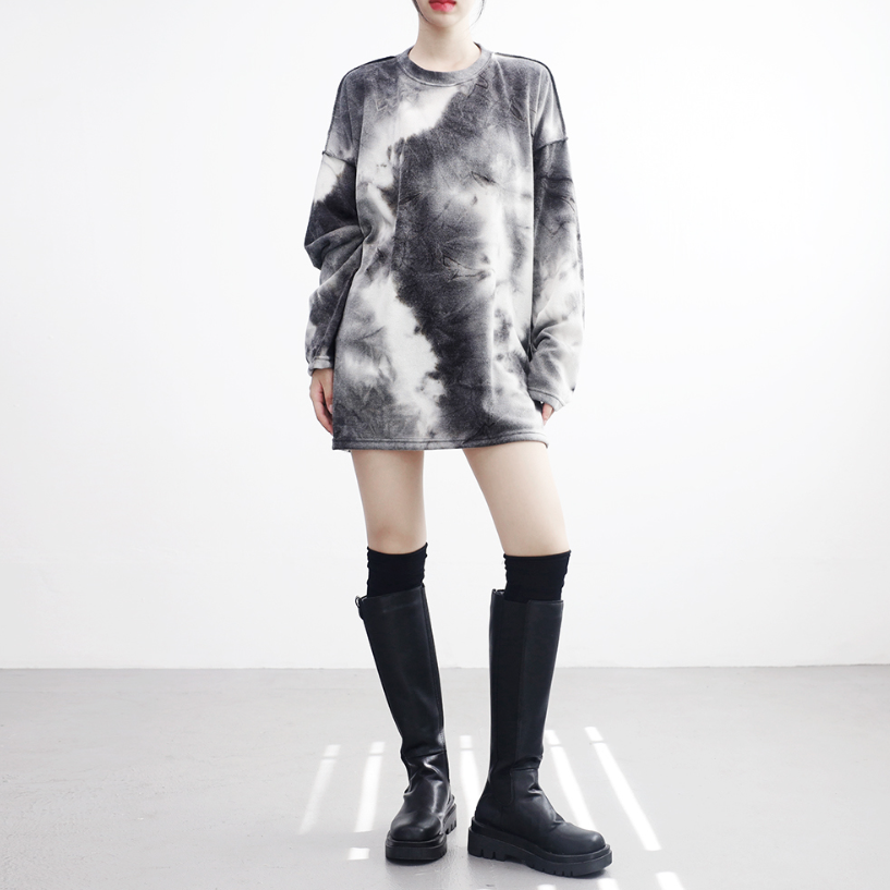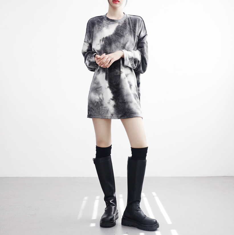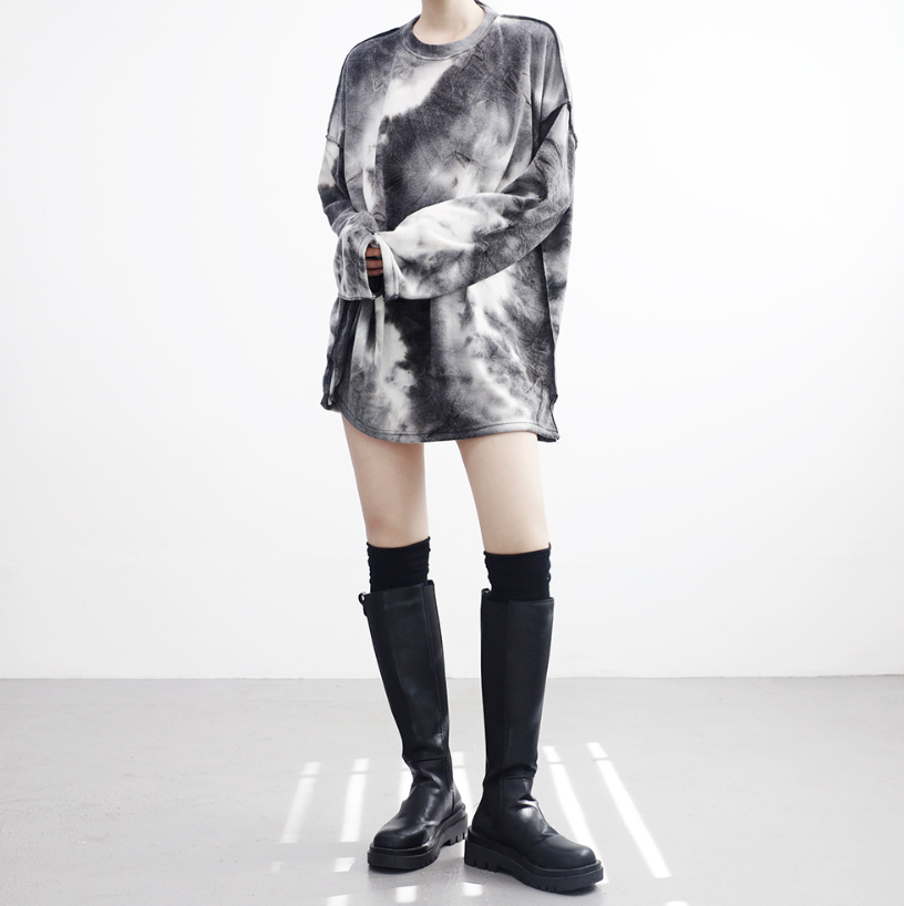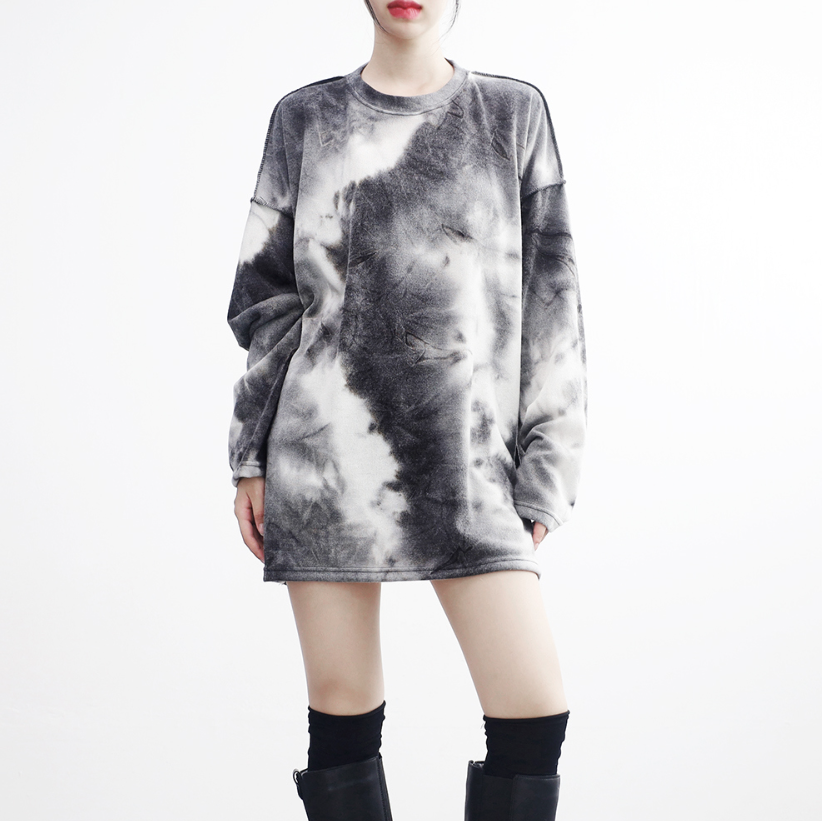扎染寬鬆長袖T恤【男女可穿】【情侶裝】【2色入】