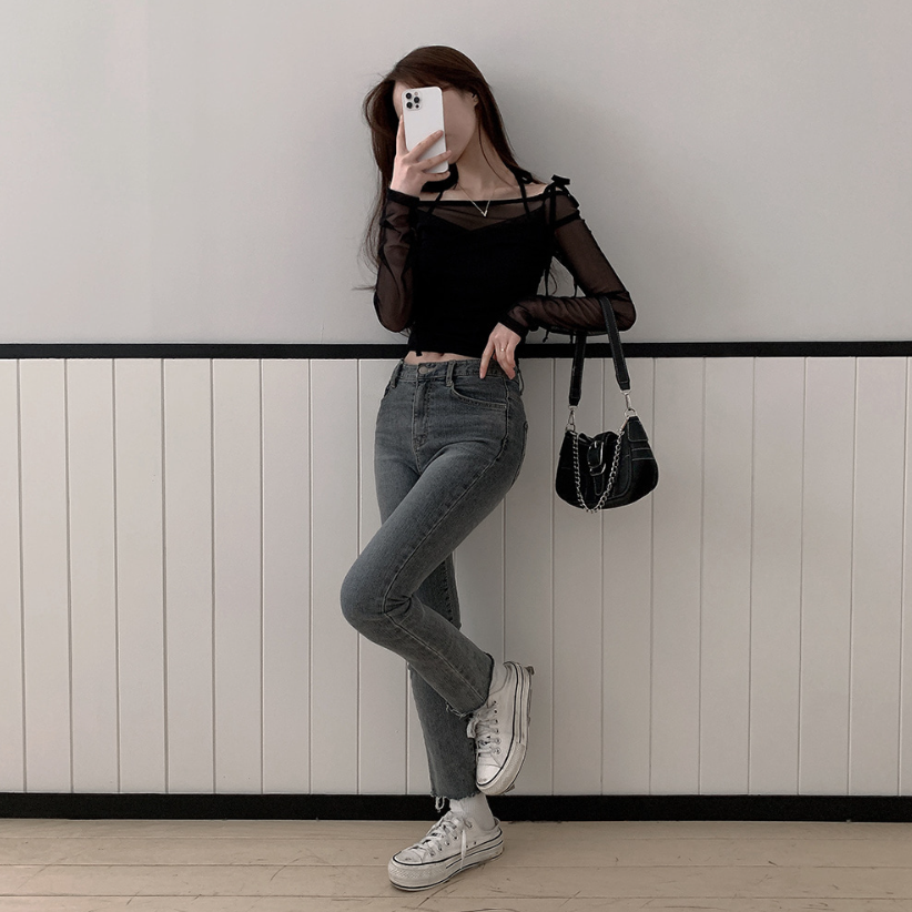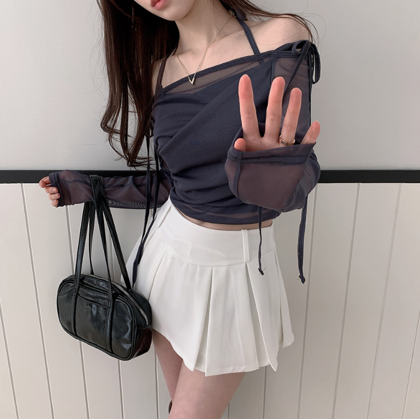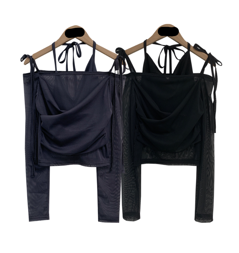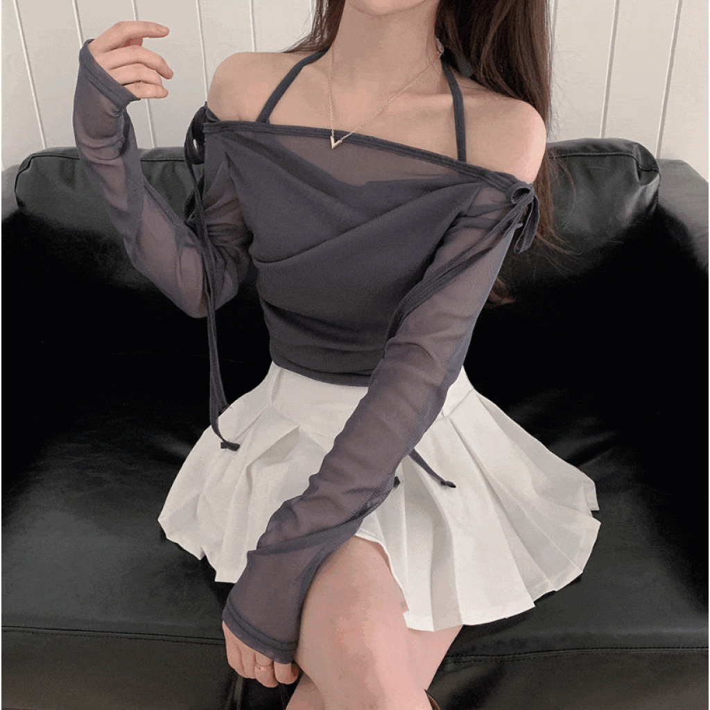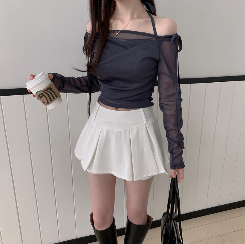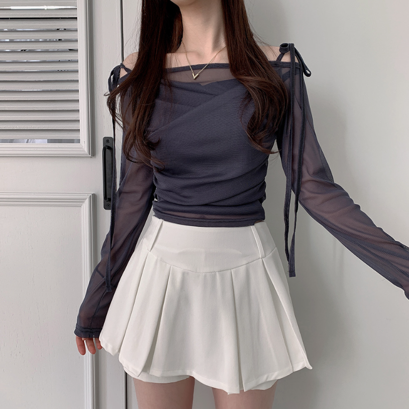 (•‾⌣‾•)一字肩透視T恤配小背心有點神秘小性感💕好適合入秋既天氣穿著❤️