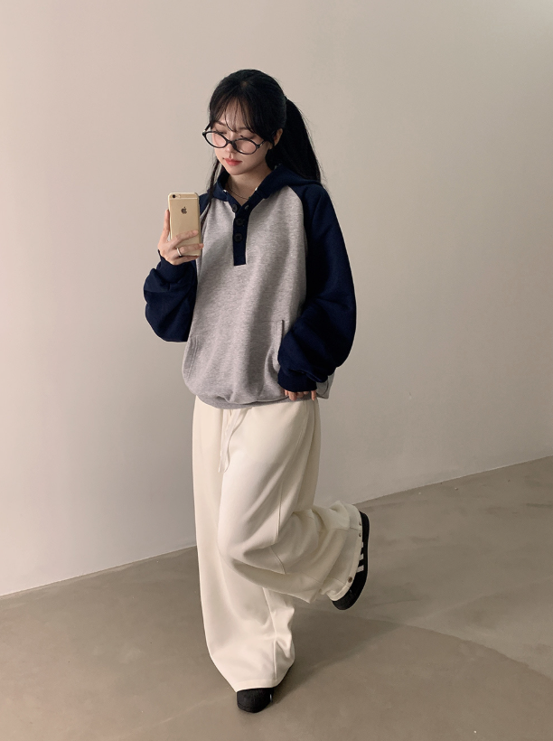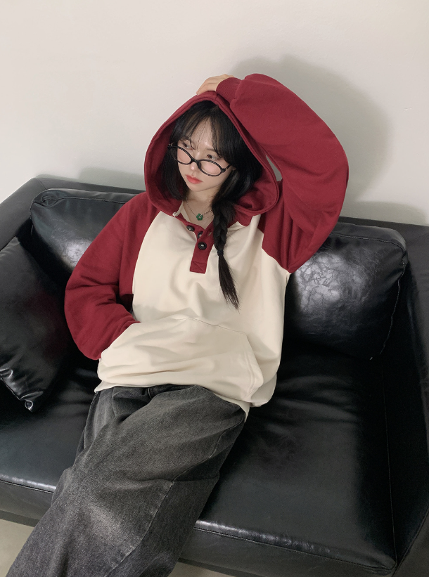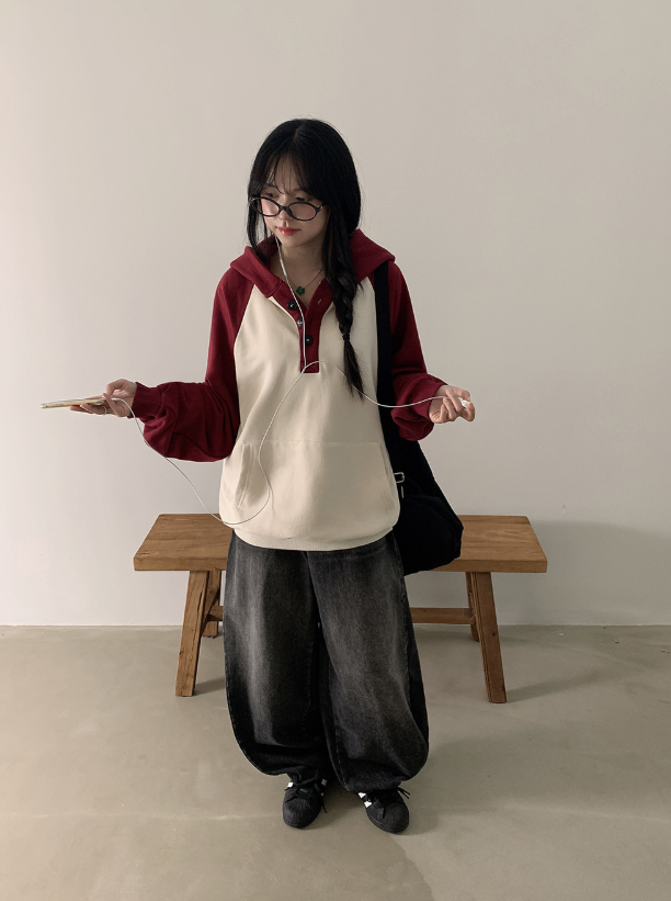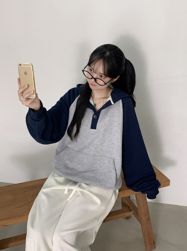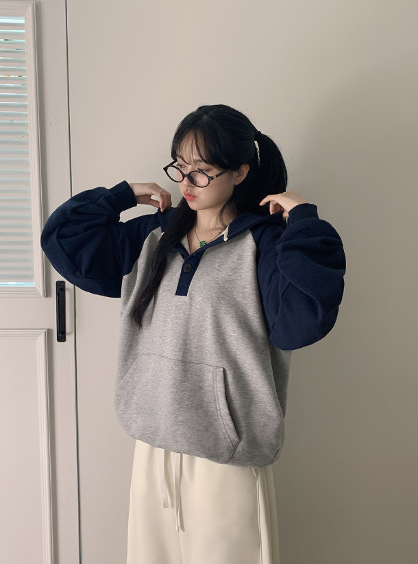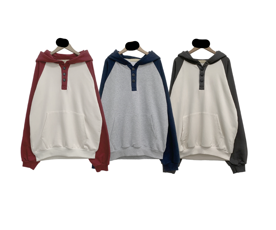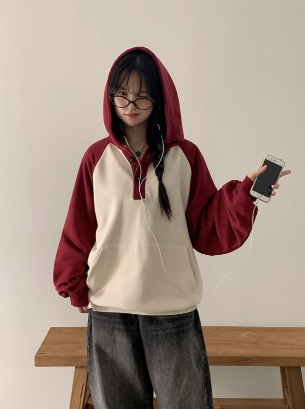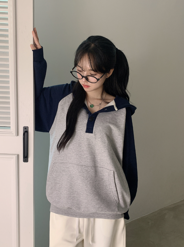 Overfit拼色口袋連帽衫【男女可穿】【情侶裝】【3色入】