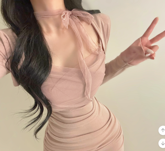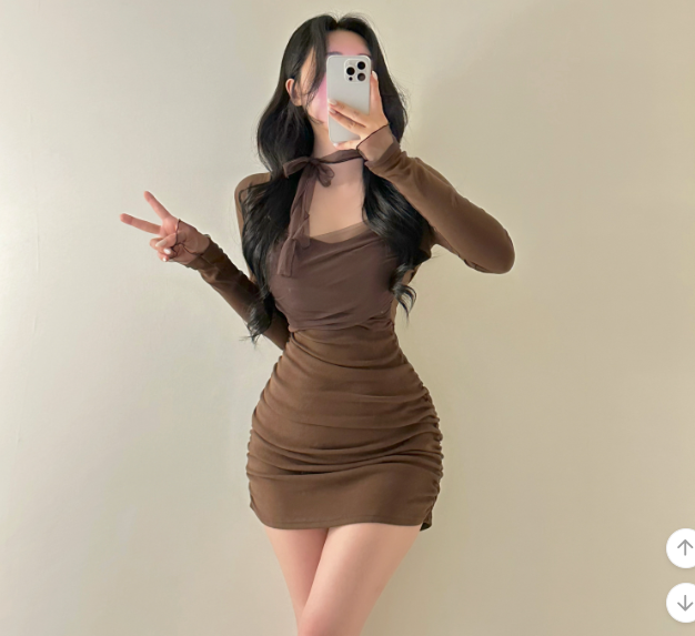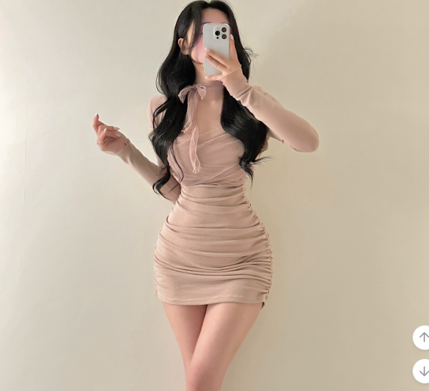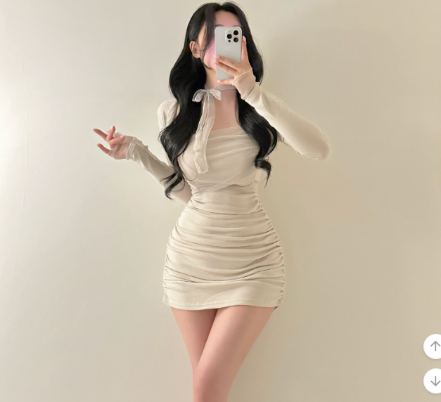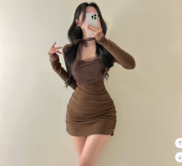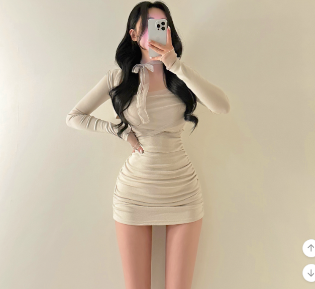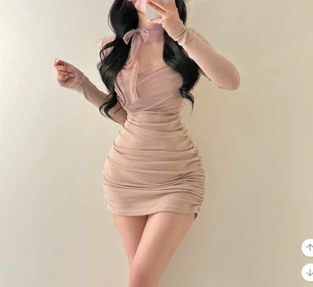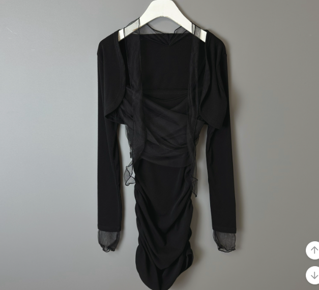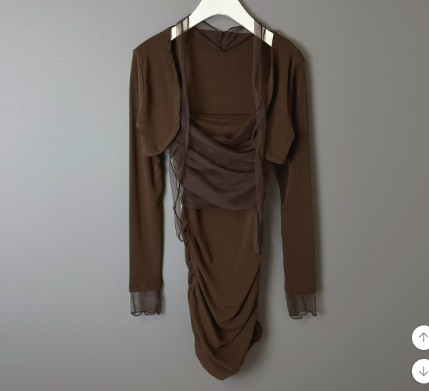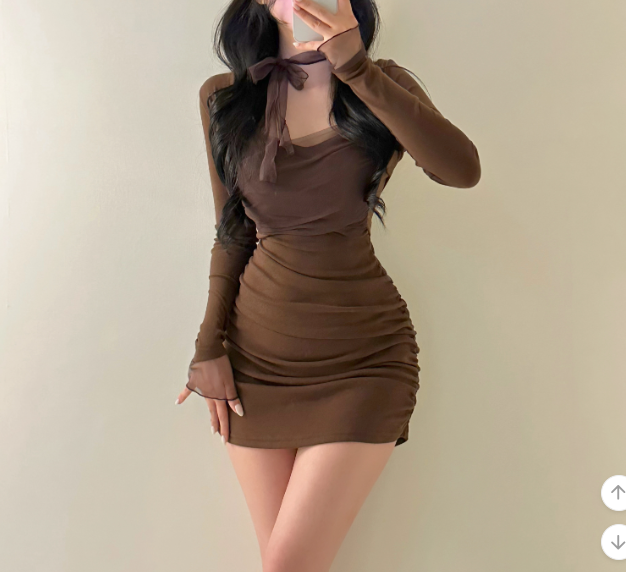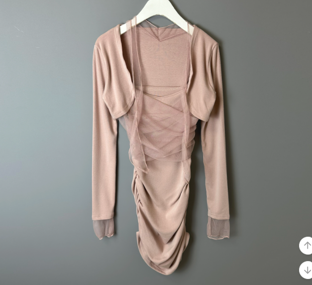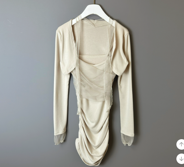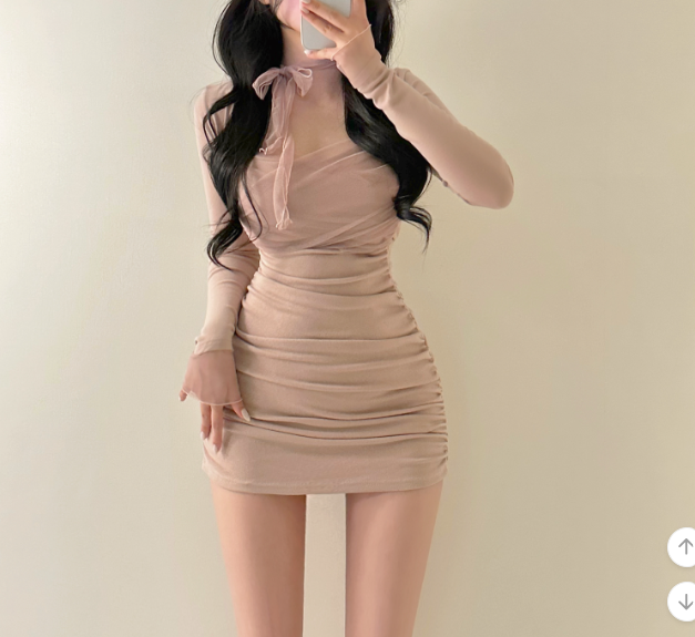 薄紗長袖皺皺連身裙【4色入】