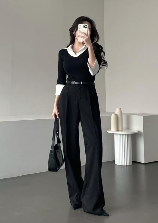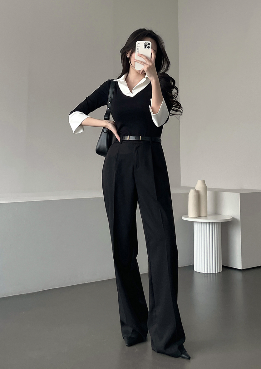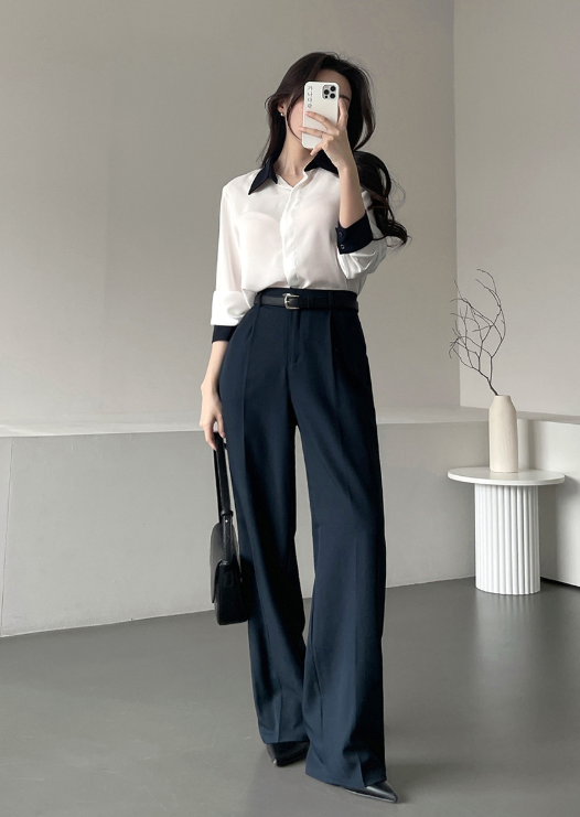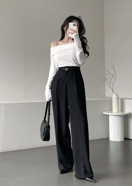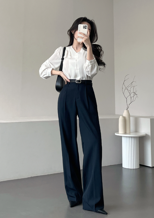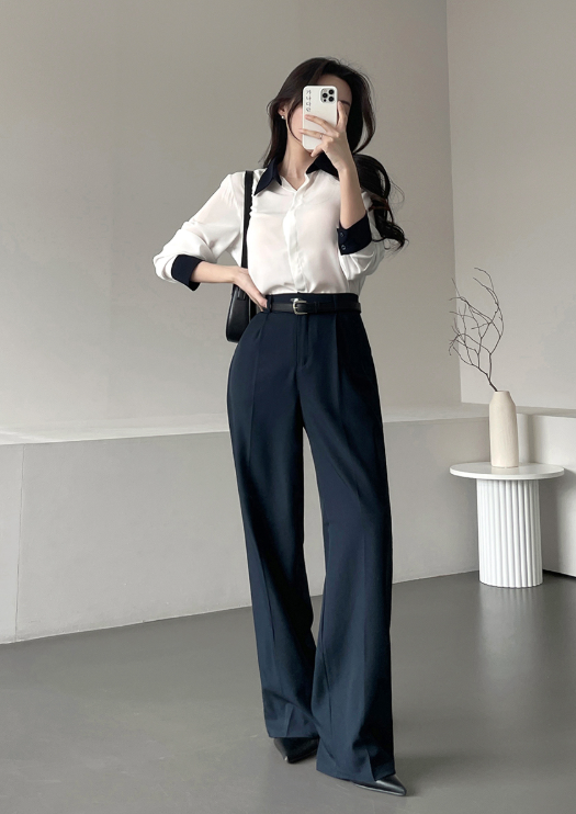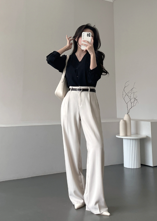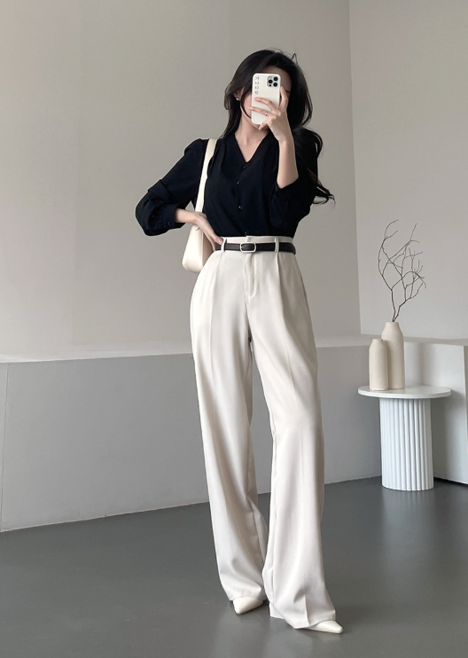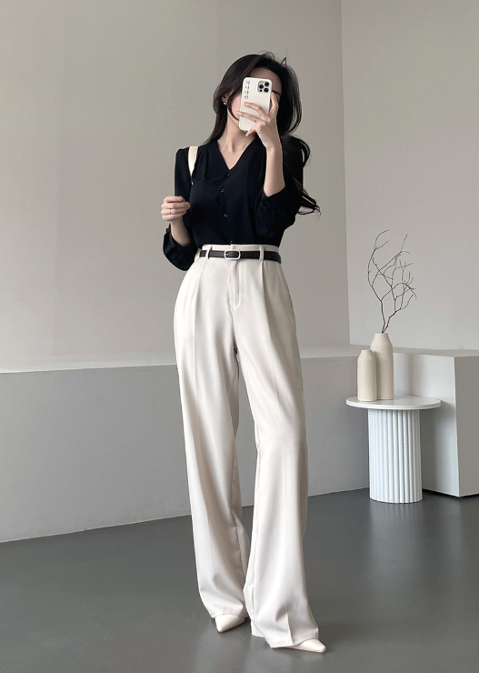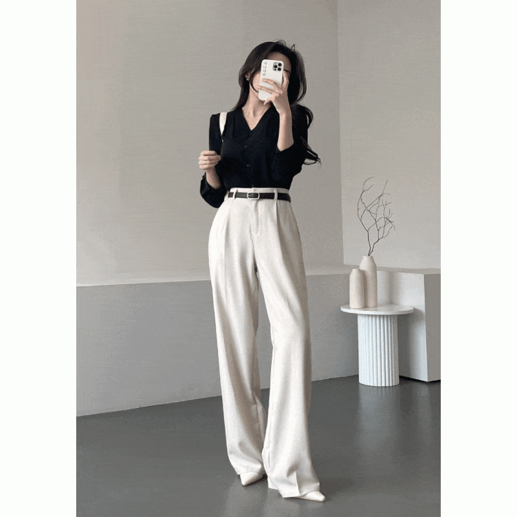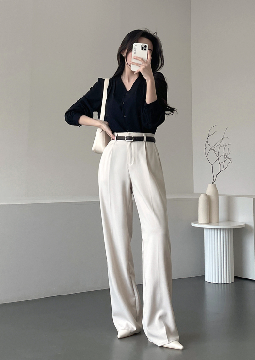 高腰隱藏釦寬鬆西褲【S-2XL】【5色入】