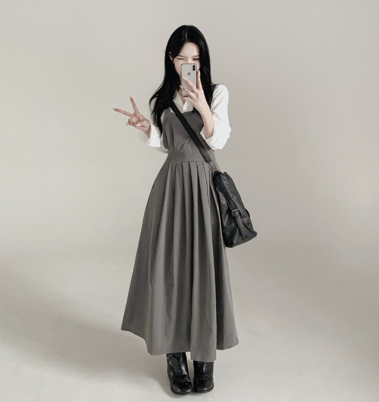 裙:肩寬:27cm 腰圍:68cm(後橡筋腰) 全長:119cm