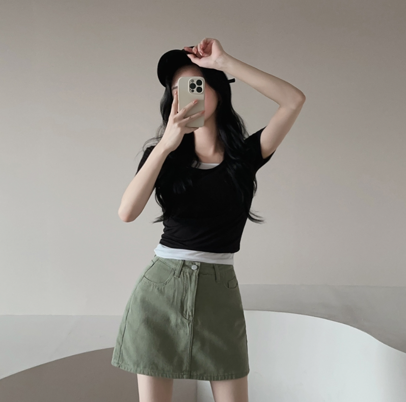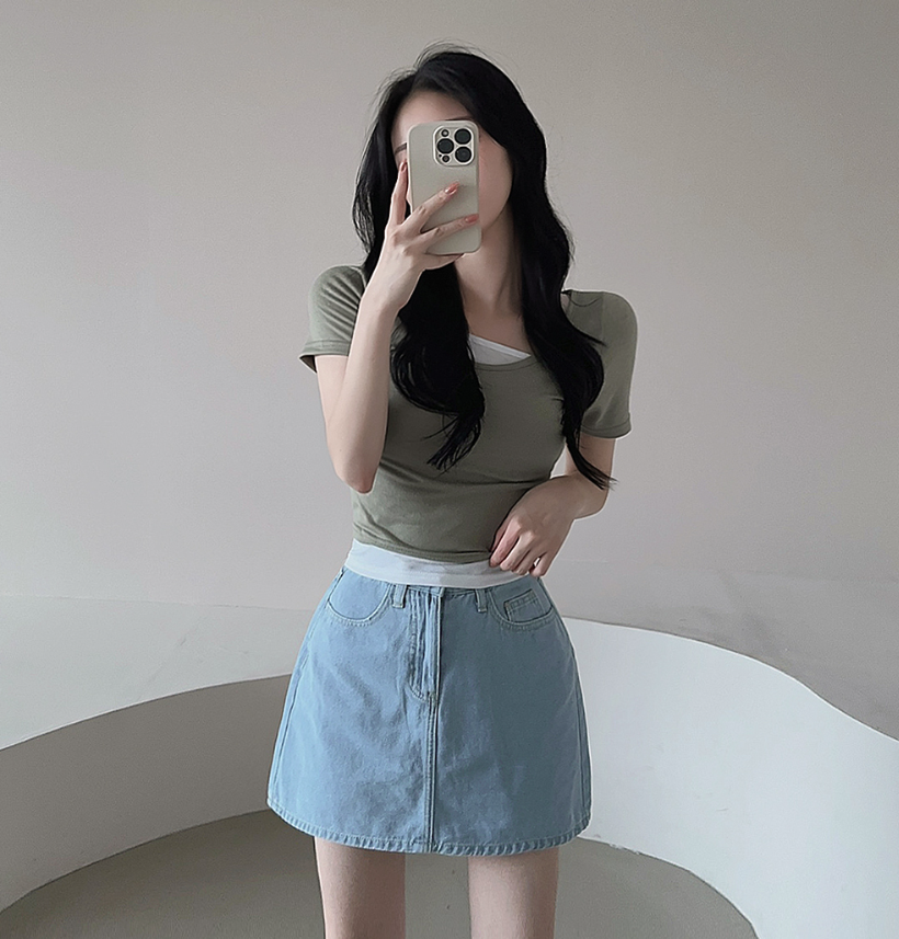 ヽ(●´ε`●)ノ簡簡單單既牛仔短裙✨最啱平時出街著又容易襯衫🌹