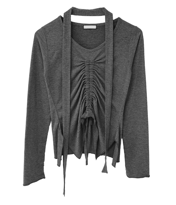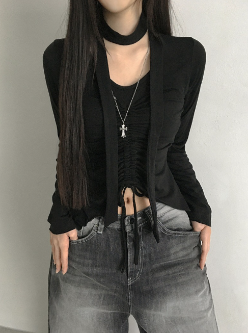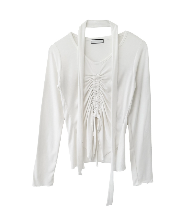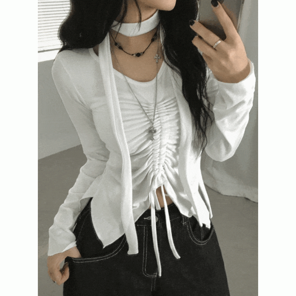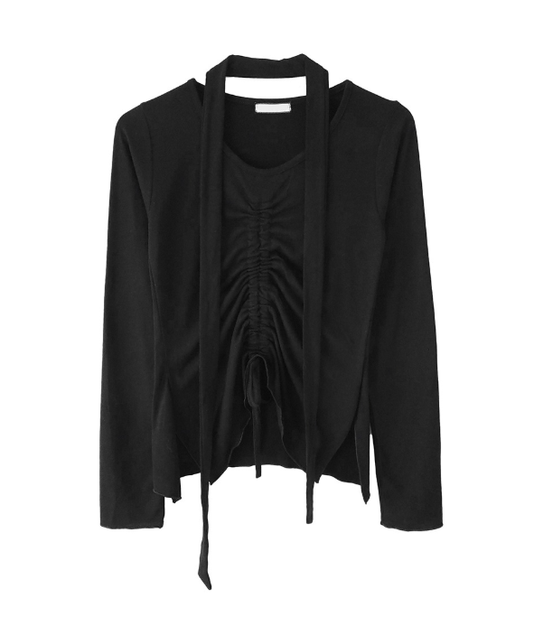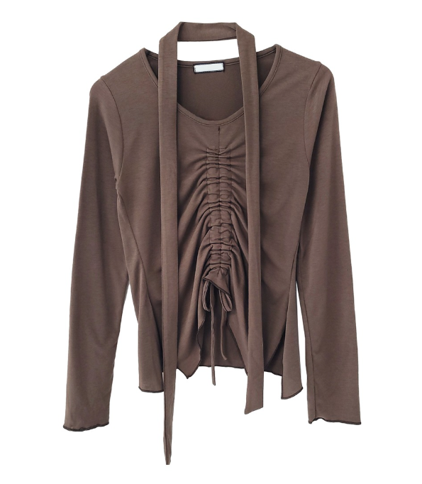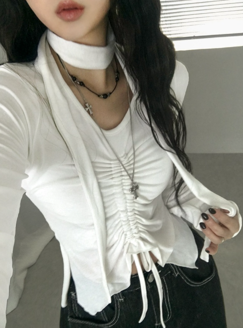 (•‾⌣‾•)小圍巾配上魚骨束繩長袖衫❤️簡約中帶點設計心思💕