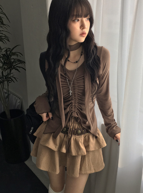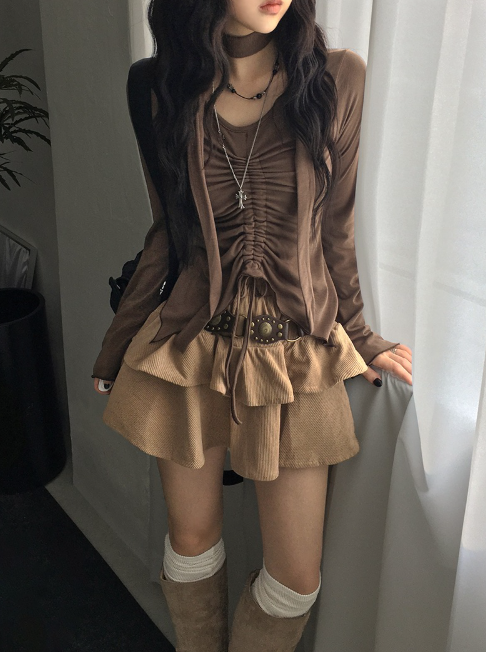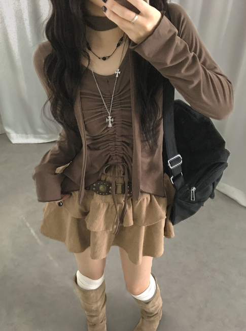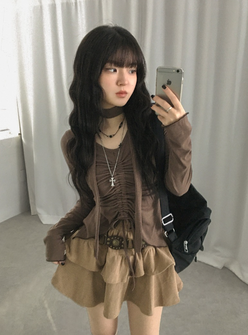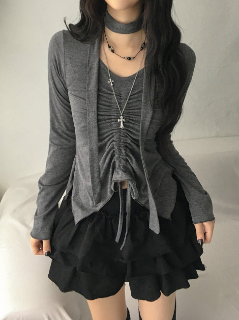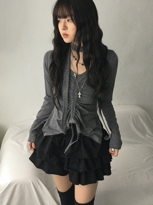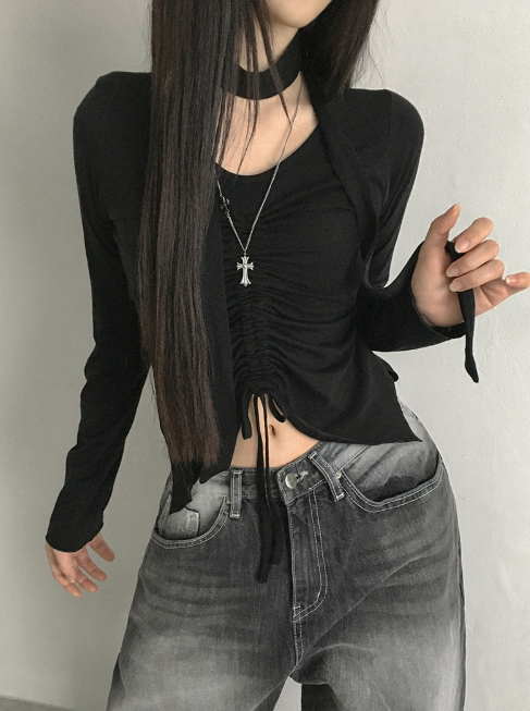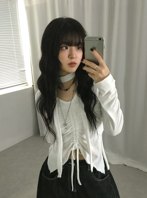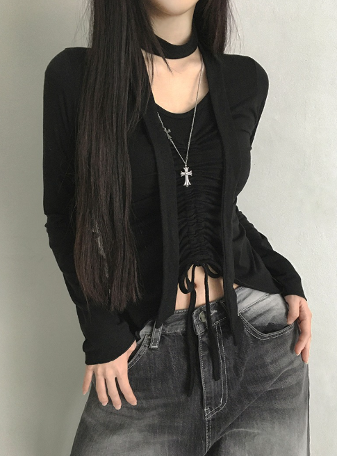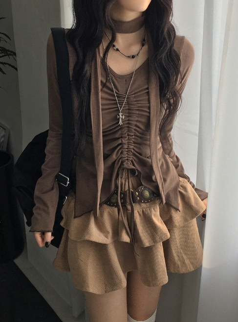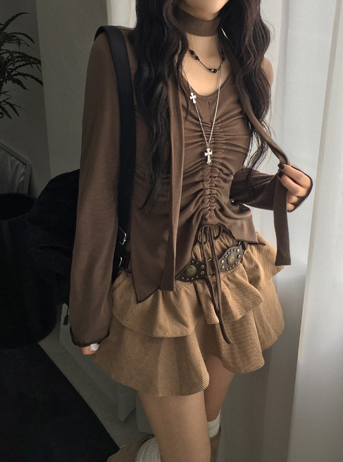 (•‾⌣‾•)小圍巾配上魚骨束繩長袖衫❤️簡約中帶點設計心思💕