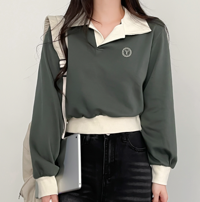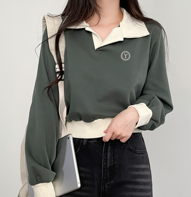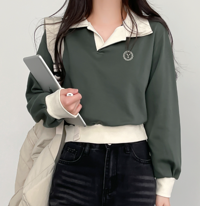 (•‾⌣‾•)Polo領短衛衣❤️日常穿搭必不可少💕