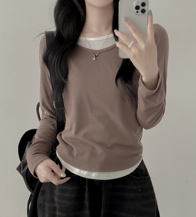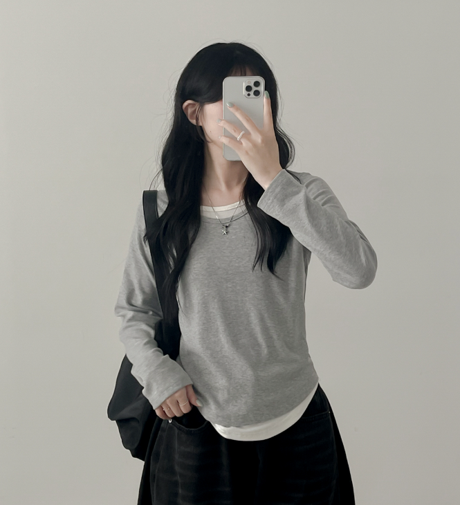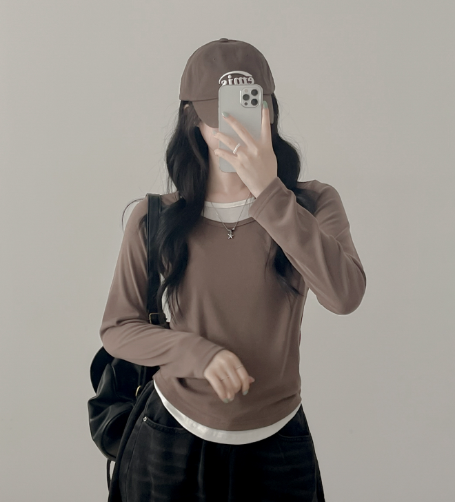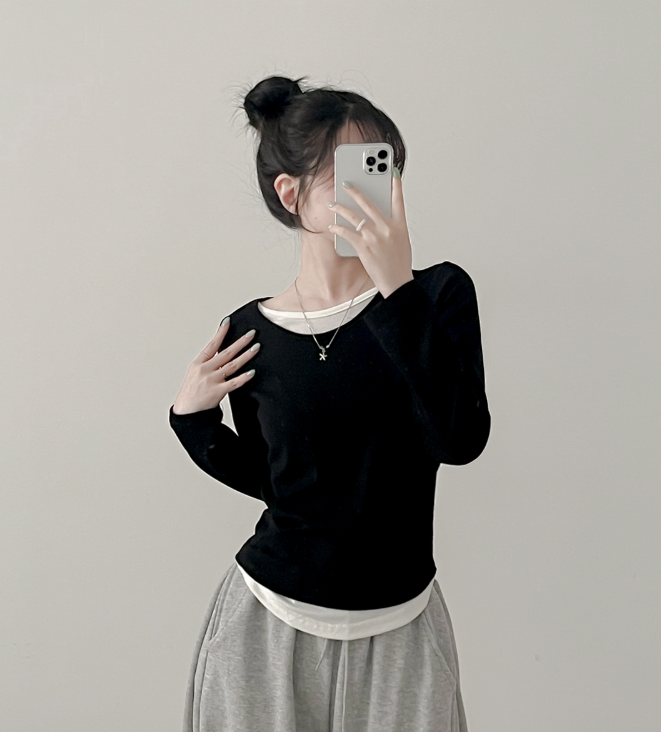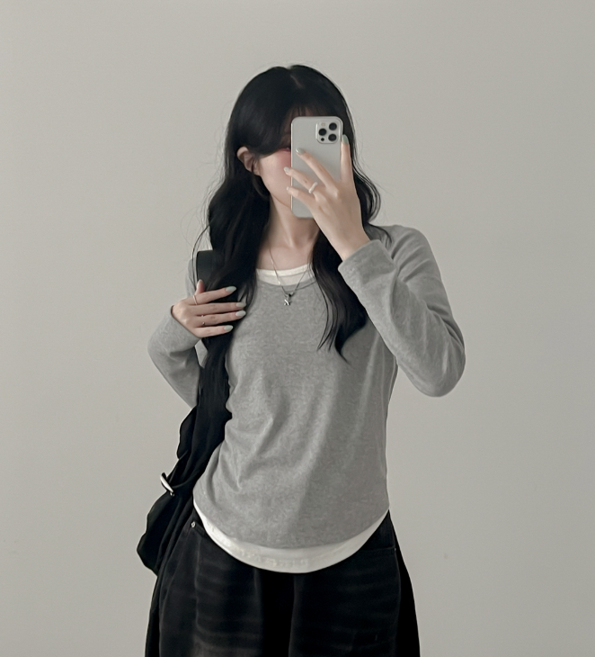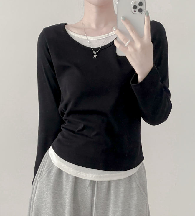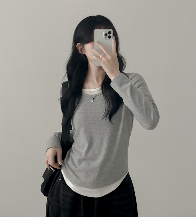 (•‾⌣‾•)假兩件簡約設計長袖❤️日常穿搭必不可少💕