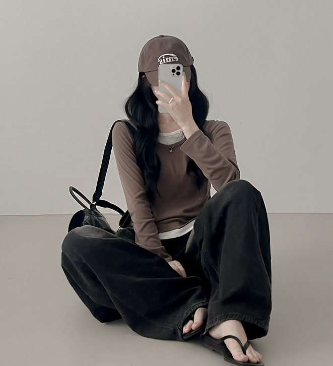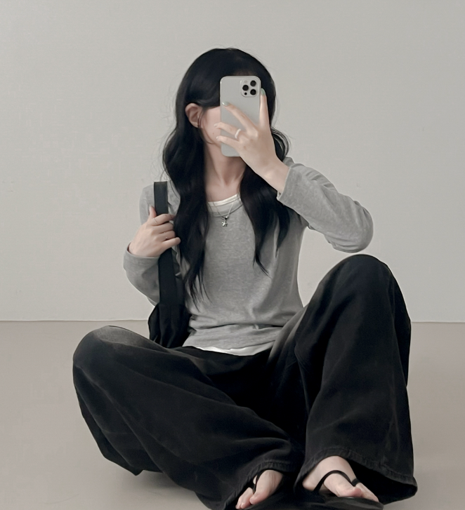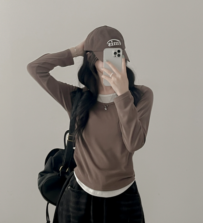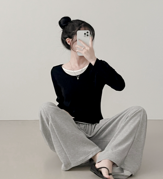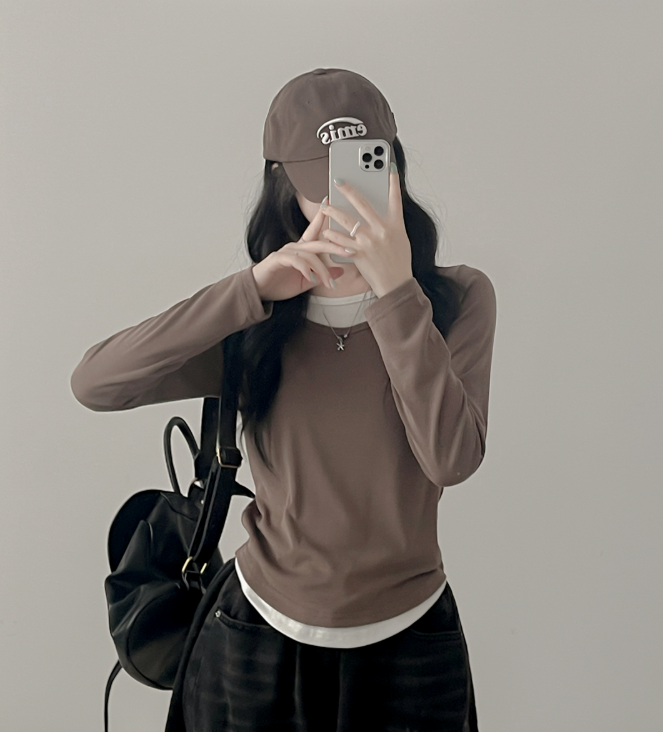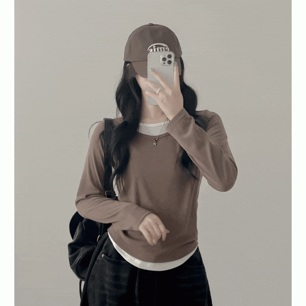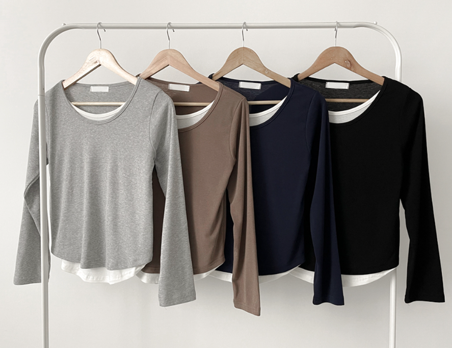 (•‾⌣‾•)假兩件簡約設計長袖❤️日常穿搭必不可少💕