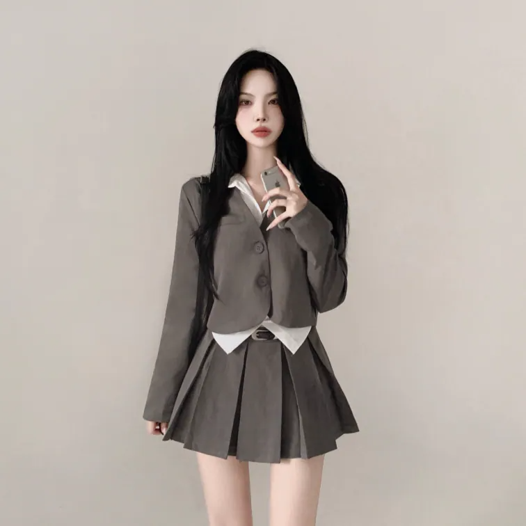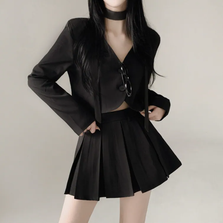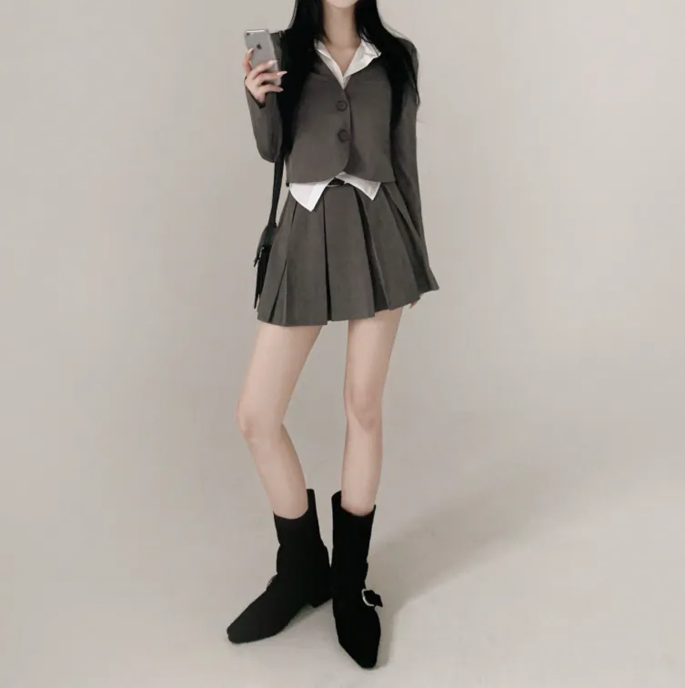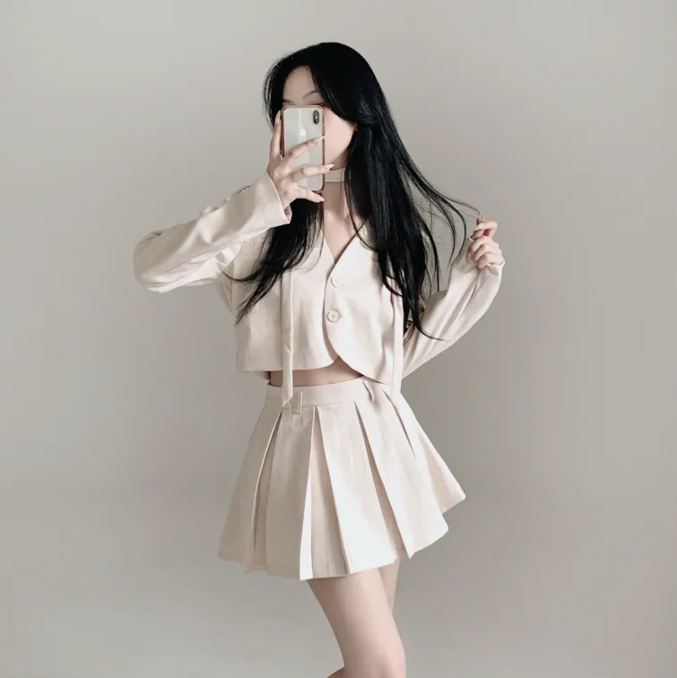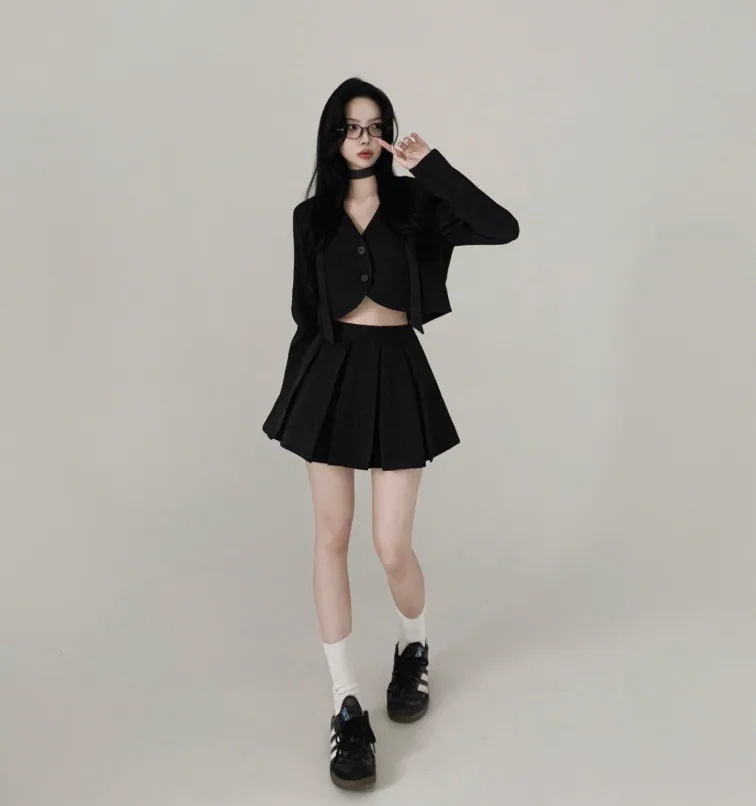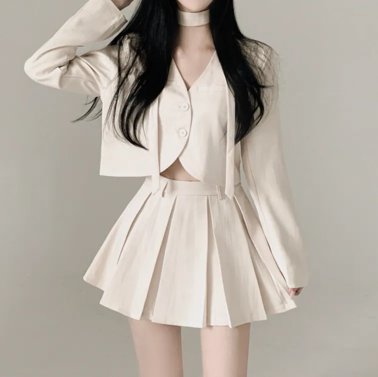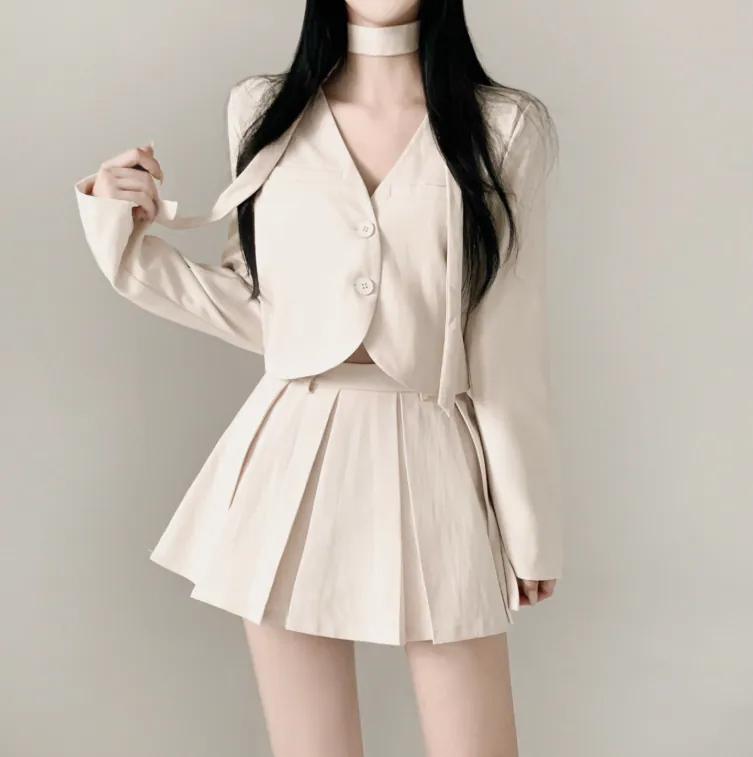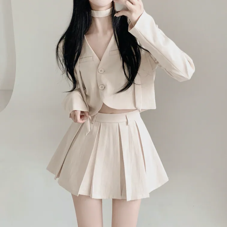 短西裝外套百褶裙套裝【3色入】