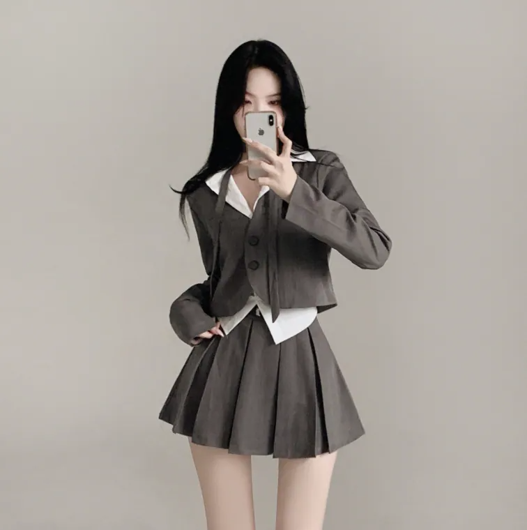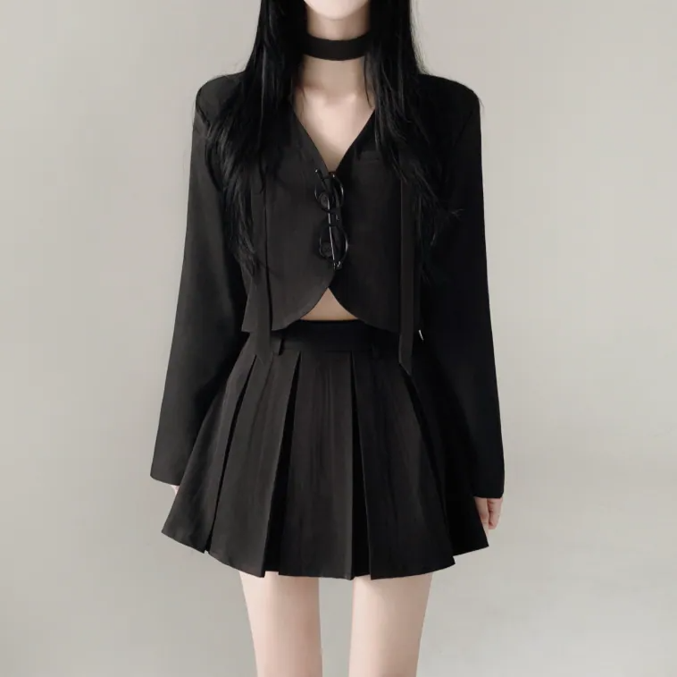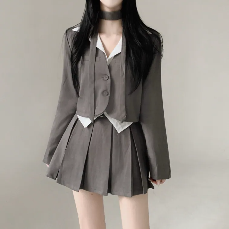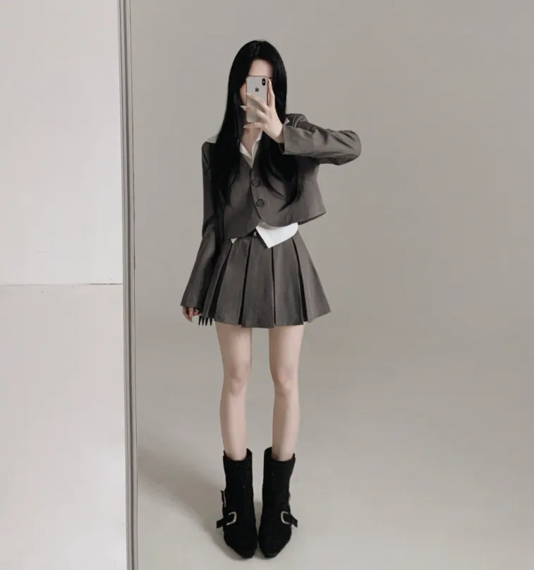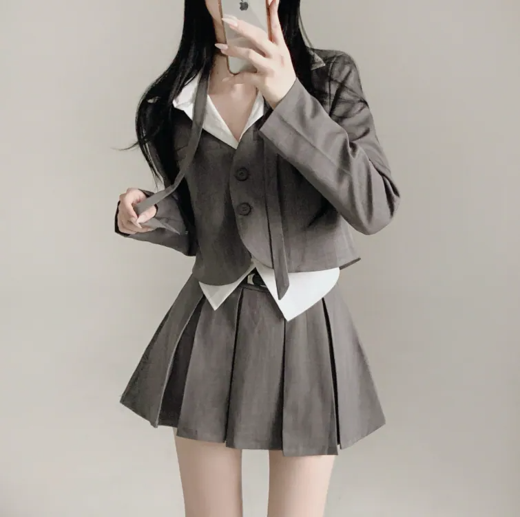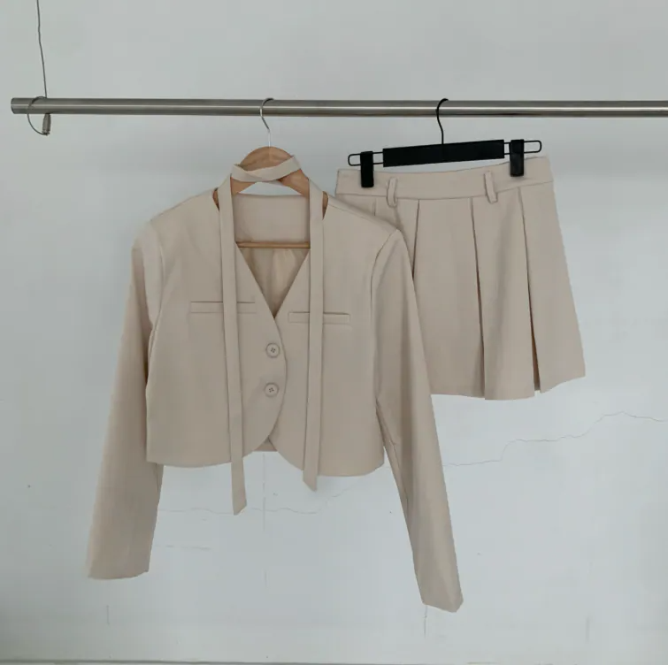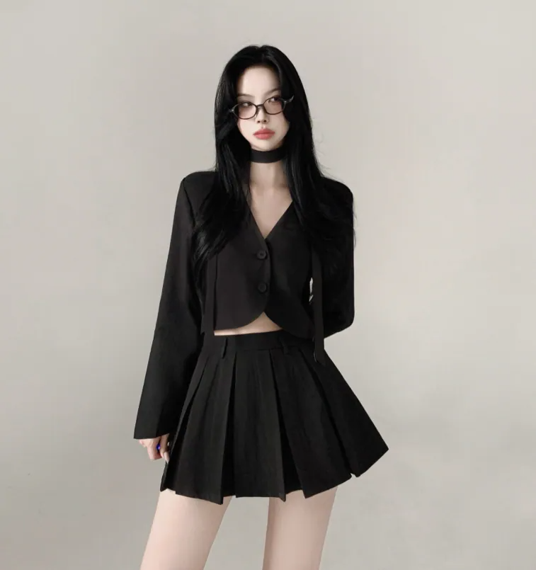 短西裝外套百褶裙套裝【3色入】
